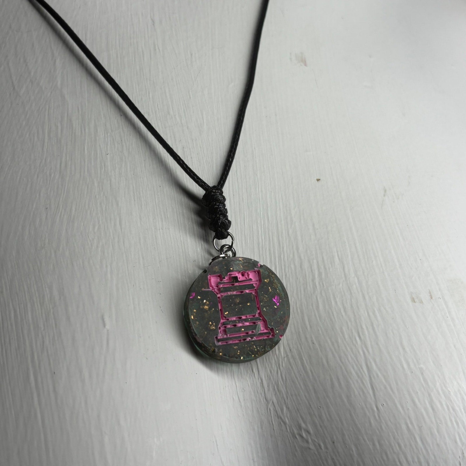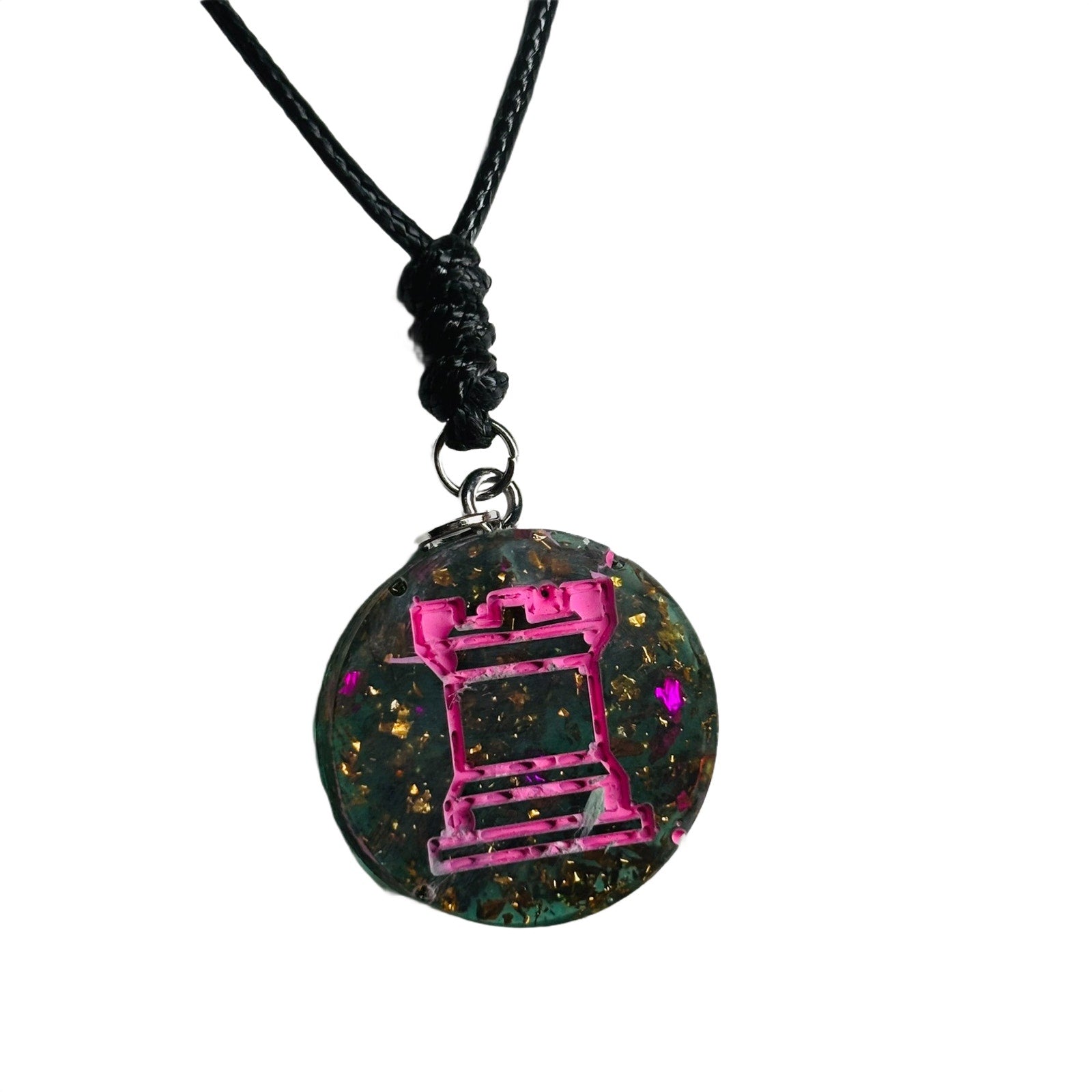 Forest Pink Rook - Handmade Resin Chess Necklace