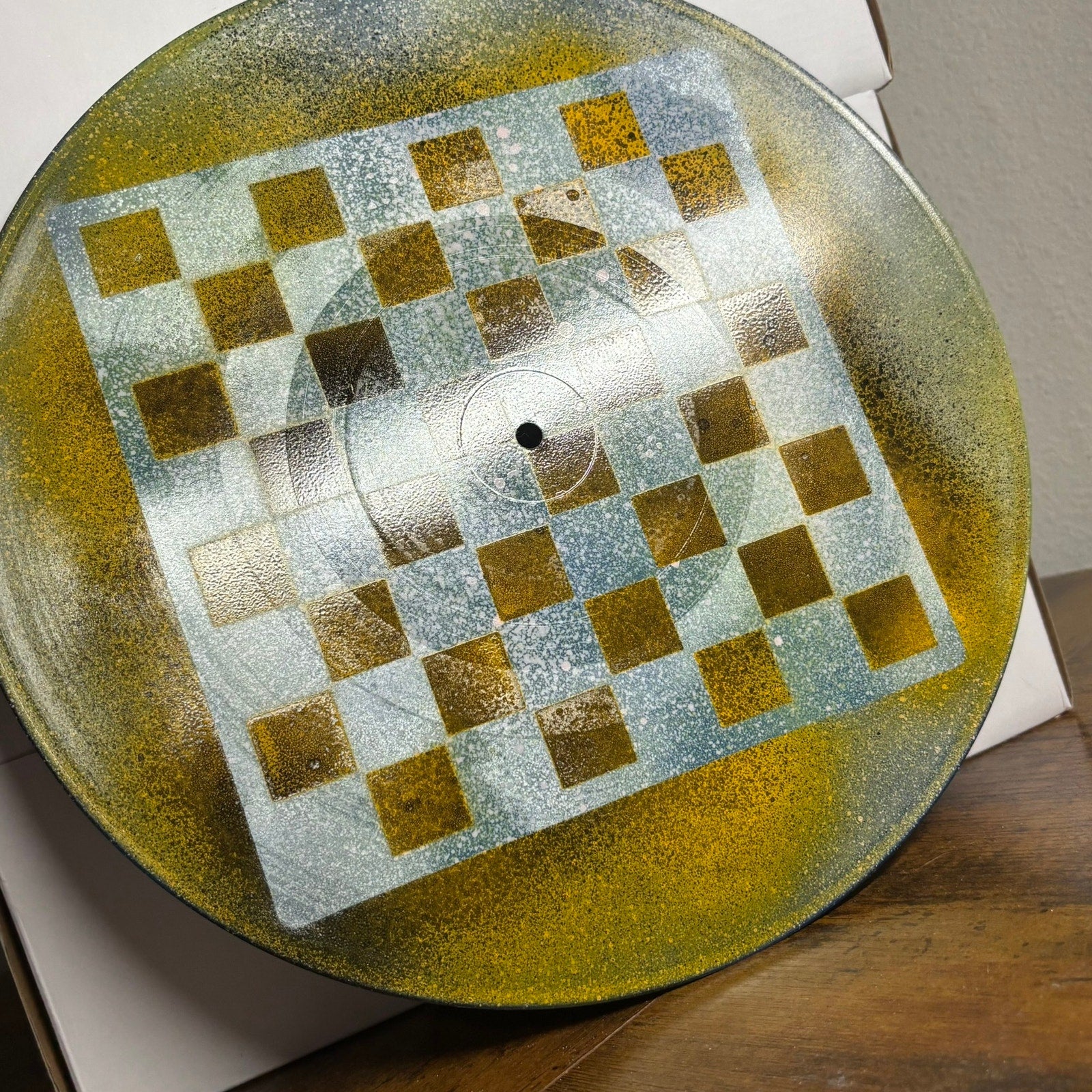 Add a unique and artistic touch to your game nights with these hand-painted vinyl record chess boards! Each board is a one-of-a-kind creation, featuring its own distinct color palette and design.