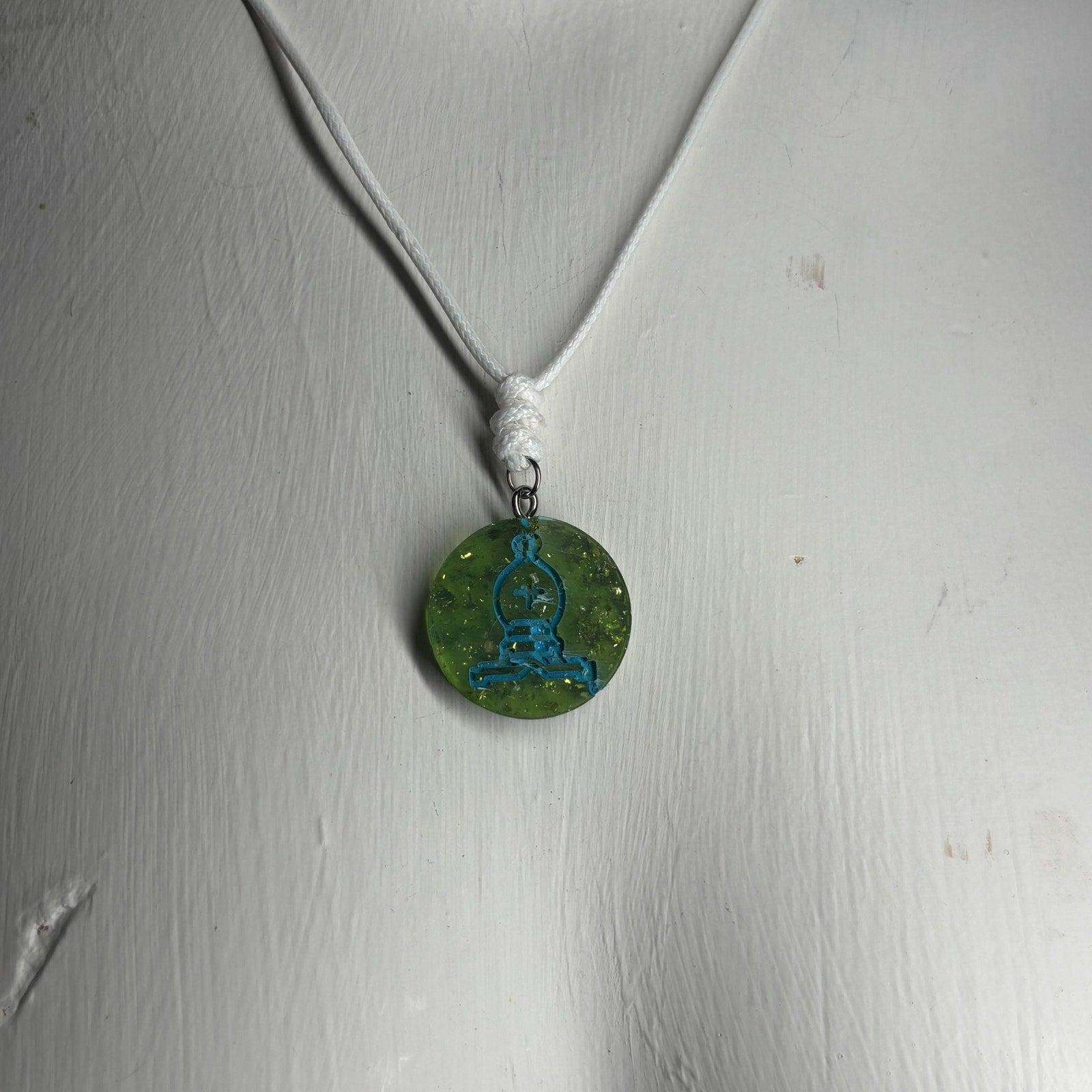 Glittered Green Bishop - Handmade Resin Chess Necklace