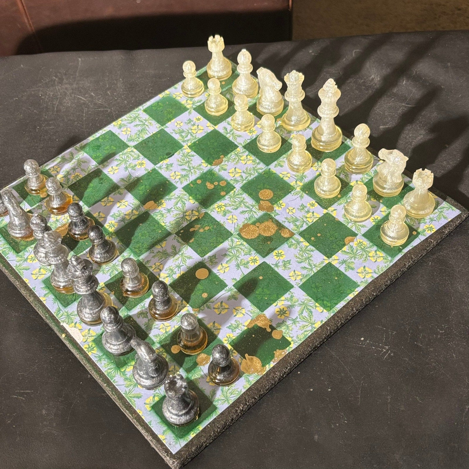 Gold Splattered Green Pattern - Scrapbook Chess Set