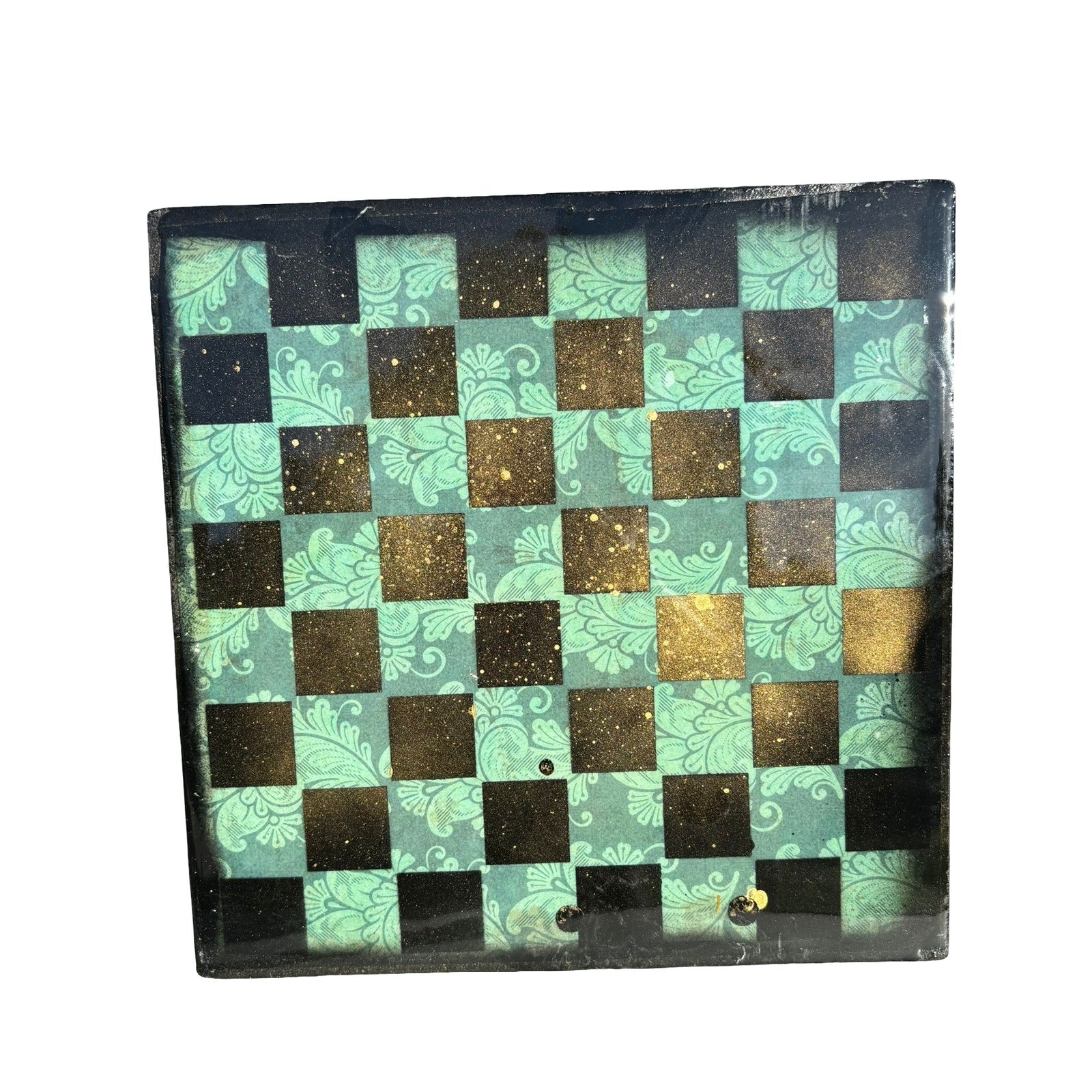 Gold Spotted Vintage Green - Resin Coated Chess Board