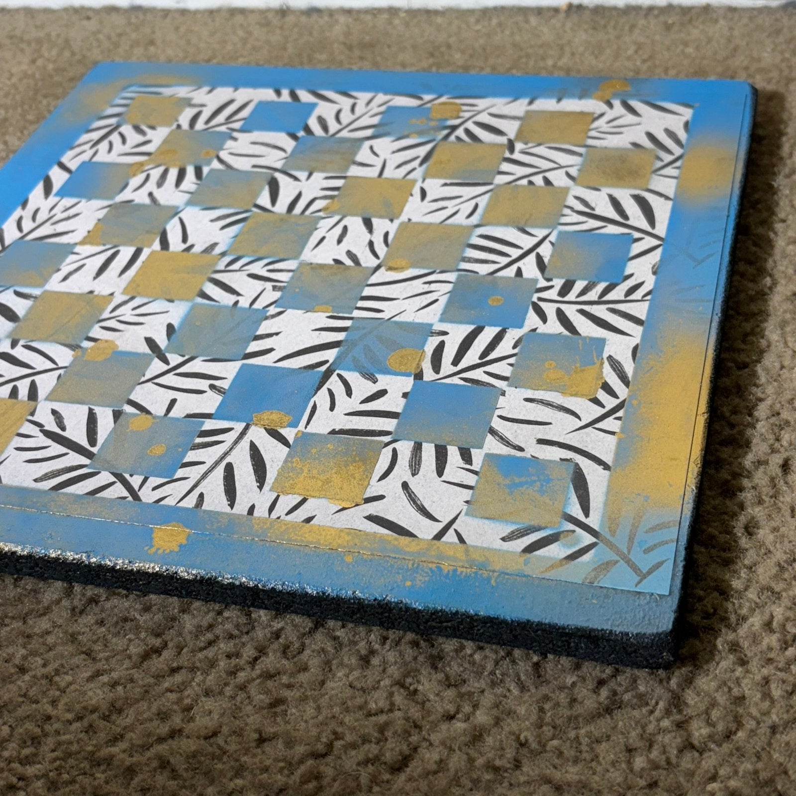 Each board features a layer of beautifully Scrapbook Paper Fused/Glued with particle board to give it a unique pretty pattern. We then paint squares onto the board to make them into fabulous chess boards. Made with a sturdy particle board base and smooth, beveled edges, this board is stunning.