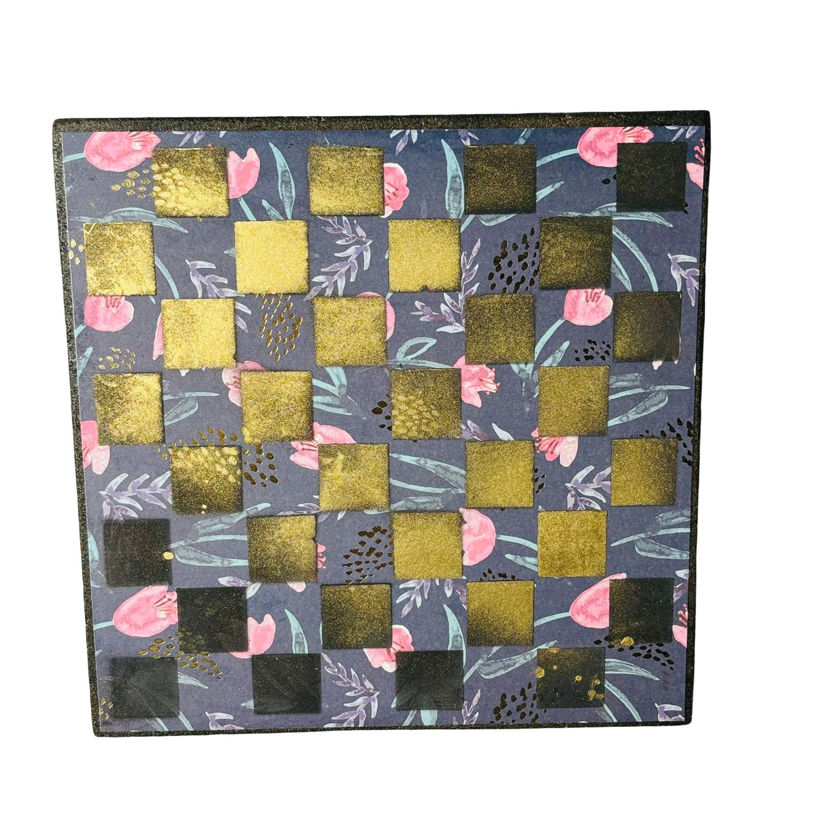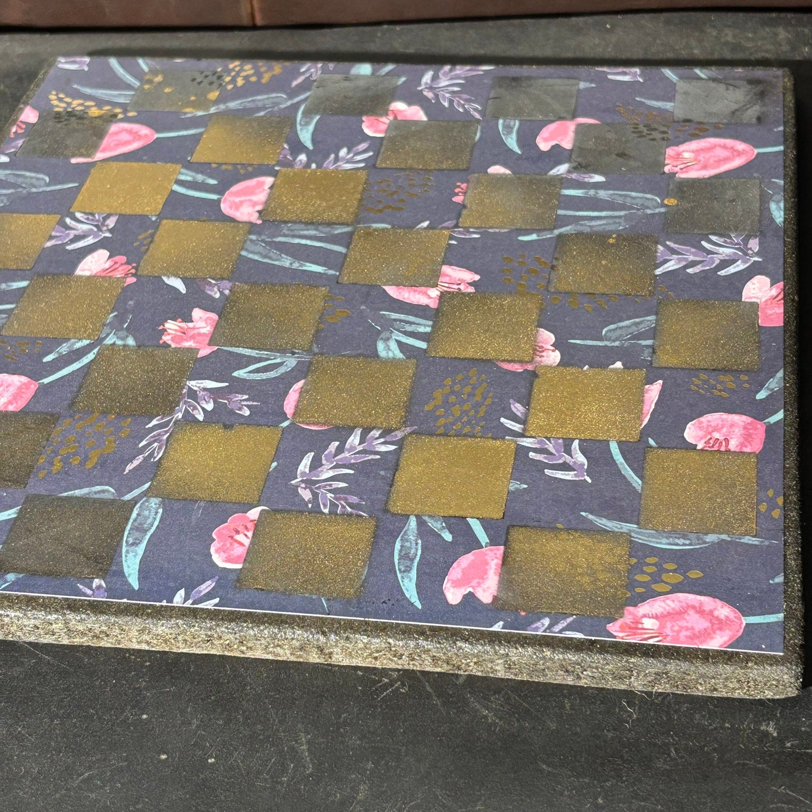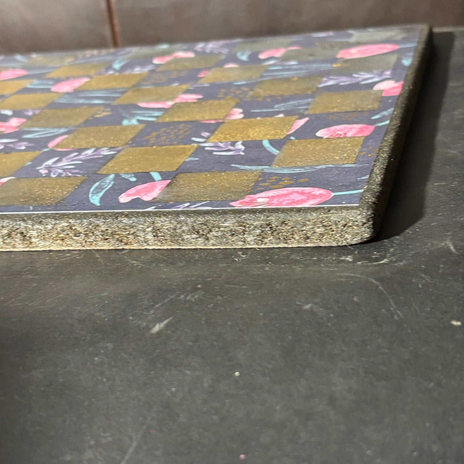 Each board features a layer of beautifully Scrapbook Paper Fused/Glued with particle board to give it a unique pretty pattern. We then paint squares onto the board to make them into fabulous chess boards. Made with a sturdy particle board base and smooth, beveled edges, this board is stunning.