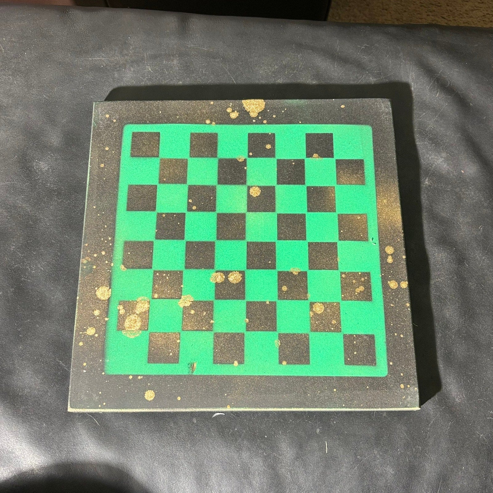 Introducing our exclusive Handcrafted Wooden Chess Set, meticulously designed with precision and care. Measuring 12 inches by 12 inches, this chess set features a beautifully painted Particle Board board that doubles as a work of art. Each set is a unique, one-of-a-kind creation, crafted by hand to ensure that no two sets are alike. Elevate your gaming experience with this exceptional chess set that combines vibrant design with the touch of artisan craftsmanship. This chess board comes with Resin chess pieces.