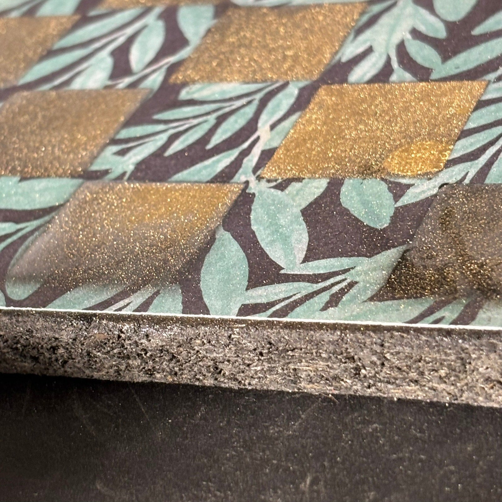 Each board features a layer of beautifully designed hand painted particle board...
