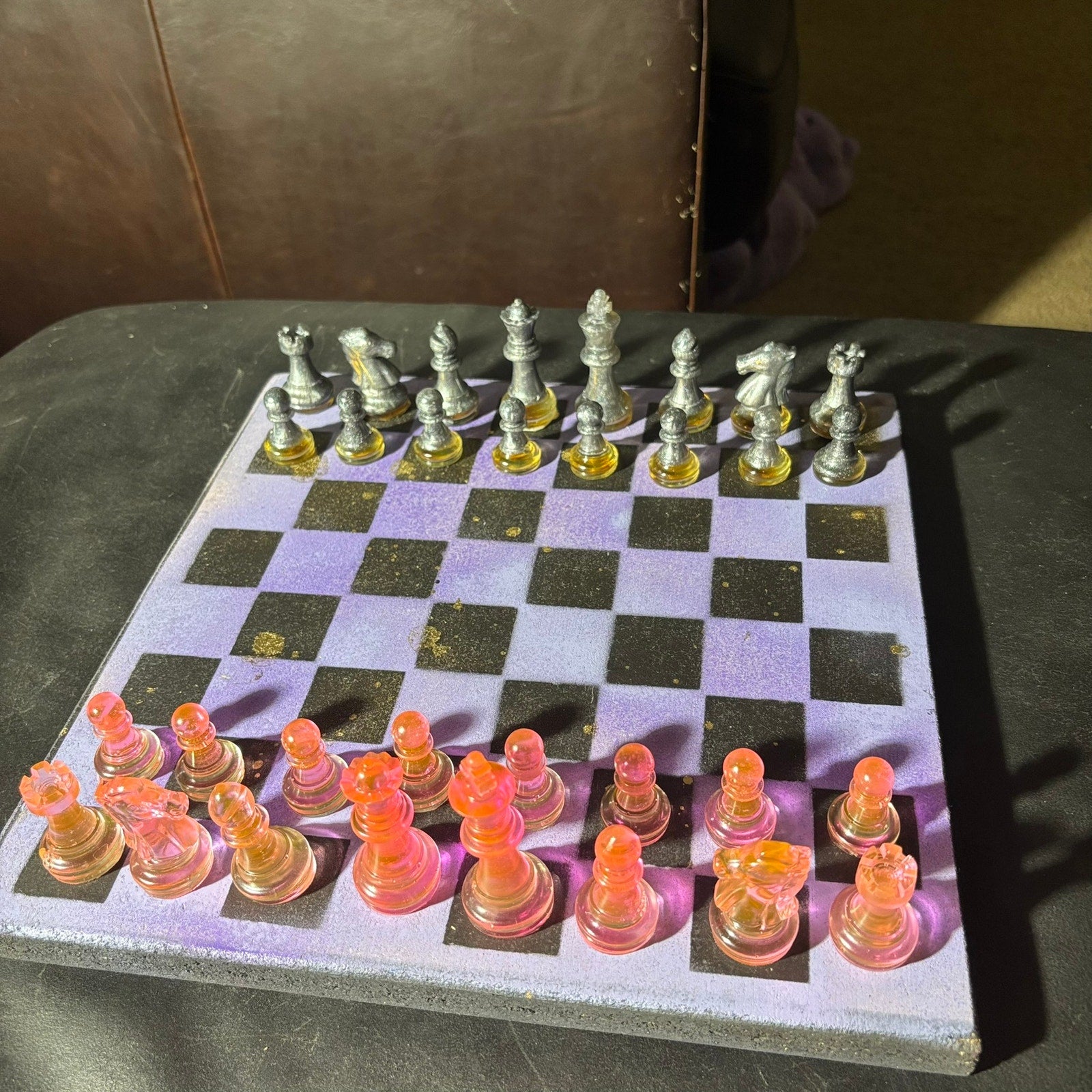 *** PLEASE READ: The resin pieces that have clear transparent parts will slowly turn royal amber as time goes on (Clear see through resin turn amber with time). Most of the sets are solid or colored so there is no need to expect a change at all, but some have clear transparent bottoms that will turn amber. I write this because some of our chess sets may not sell for a year or two and the photos are taken when the item is listed online. Meaning the photos will have slight difference. Rest assured, the amber is beautiful and vintage!