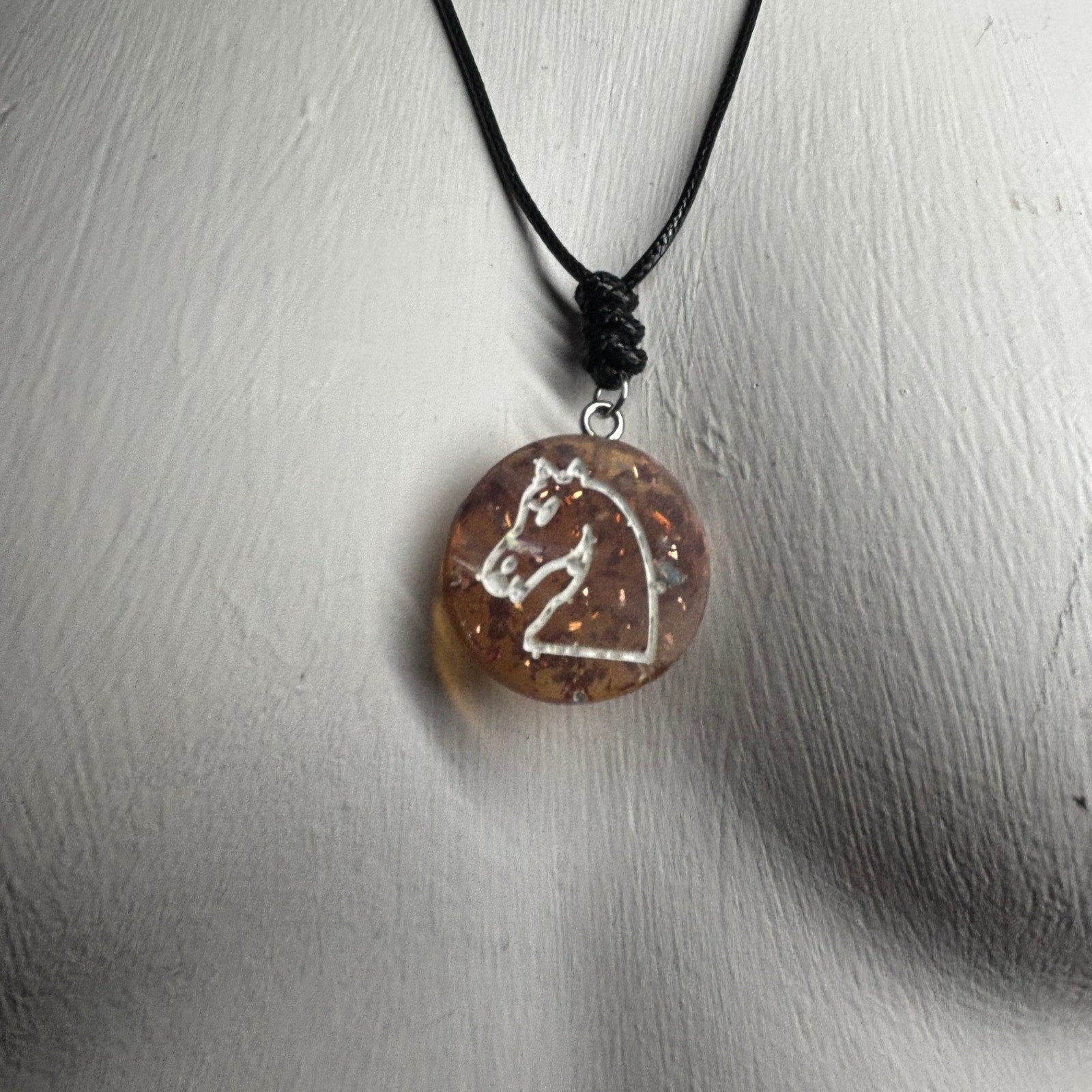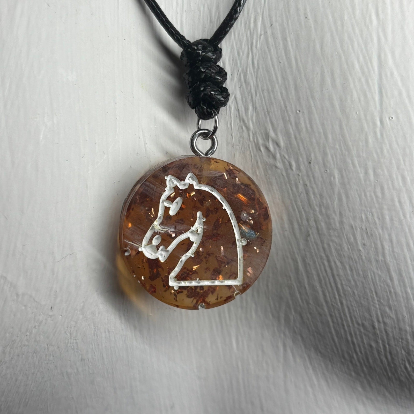 Golden Sparkle Knight - Handmade Resin Chess Necklace