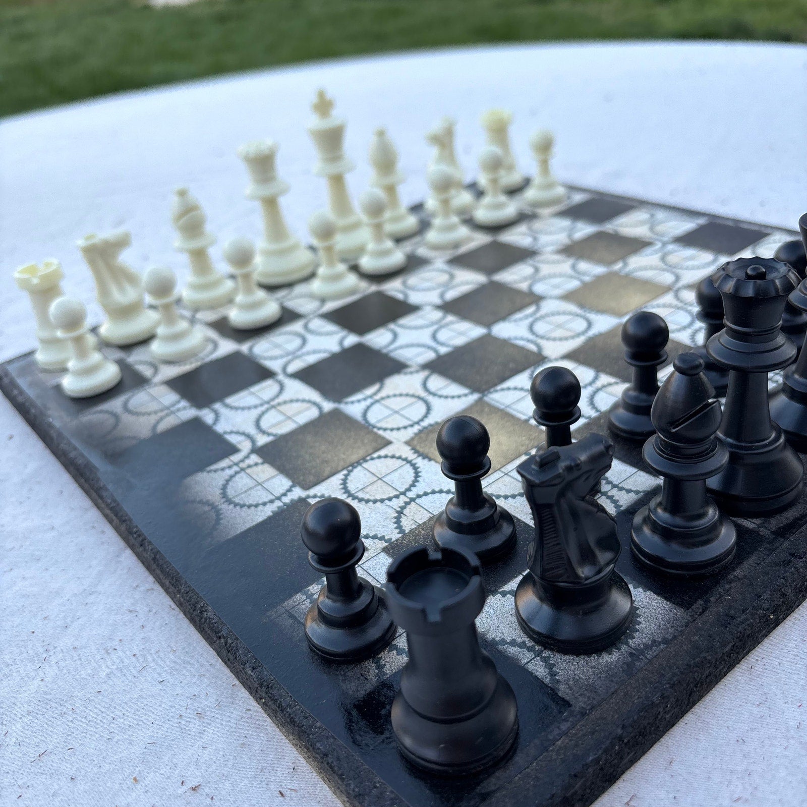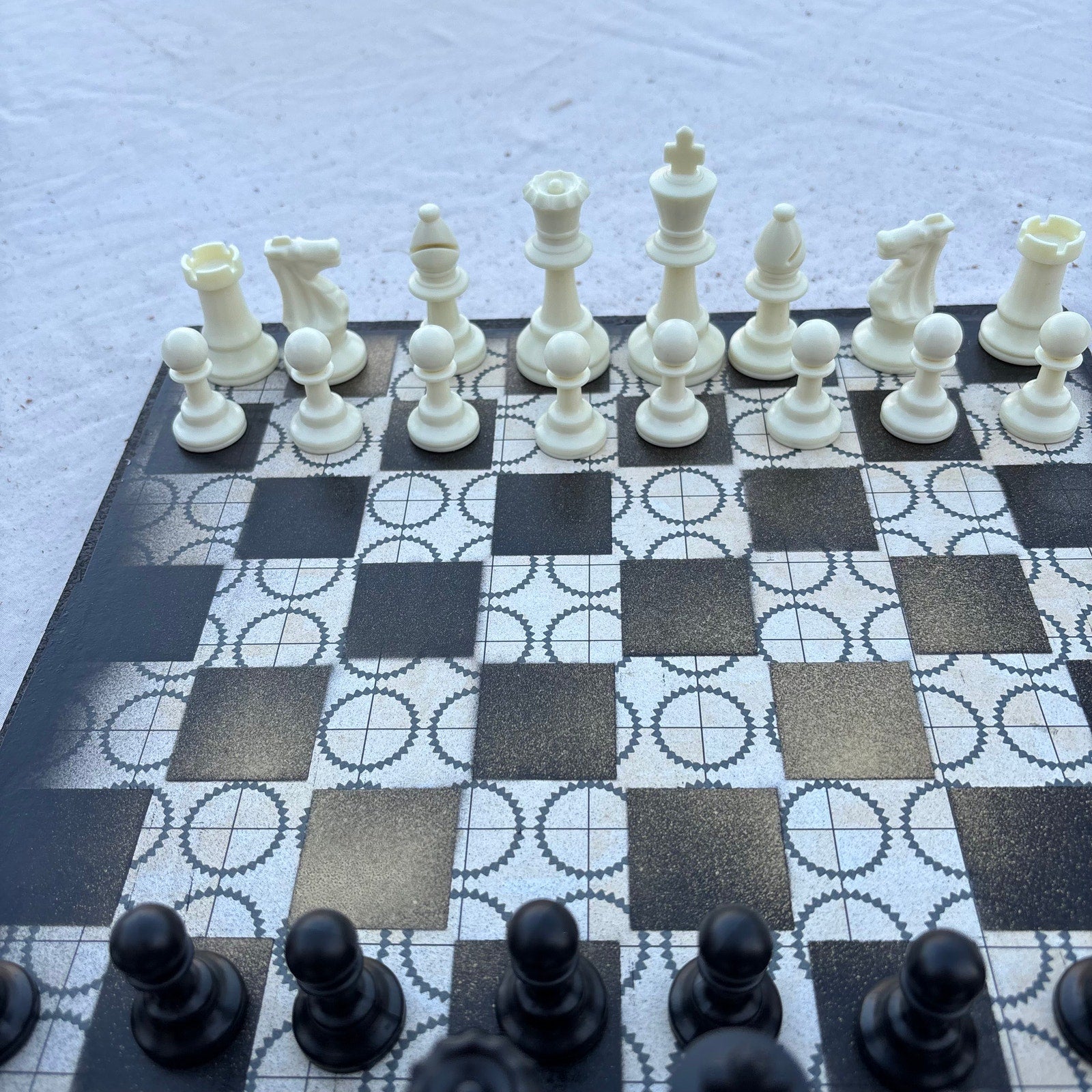 Introducing our exclusive Handcrafted Wooden Chess Set, meticulously designed with precision and care. Measuring 12 inches by 12 inches, this chess set features a beautifully painted particle board layered with a sheet of scrapbook paper board that doubles as a work of art. Each set is a unique, one-of-a-kind creation, crafted by hand to ensure that no two sets are alike. Elevate your gaming experience with this exceptional chess set that combines vibrant design with the touch of artisan craftsmanship. This chess board comes with chess pieces and is handcrafted as a one of one