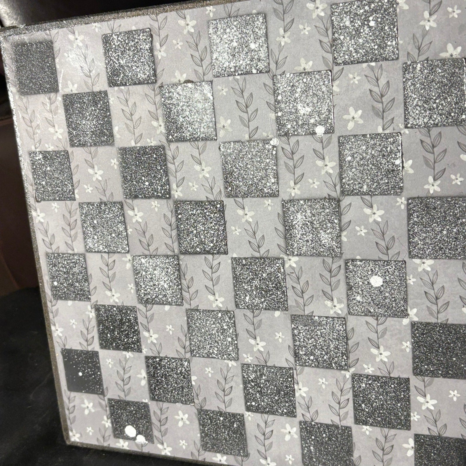 Each board features a layer of beautifully Scrapbook Paper Fused/Glued with particle board to give it a unique pretty pattern. We then paint squares onto the board to make them into fabulous chess boards. Made with a sturdy particle board base and smooth, beveled edges, this board is stunning.
