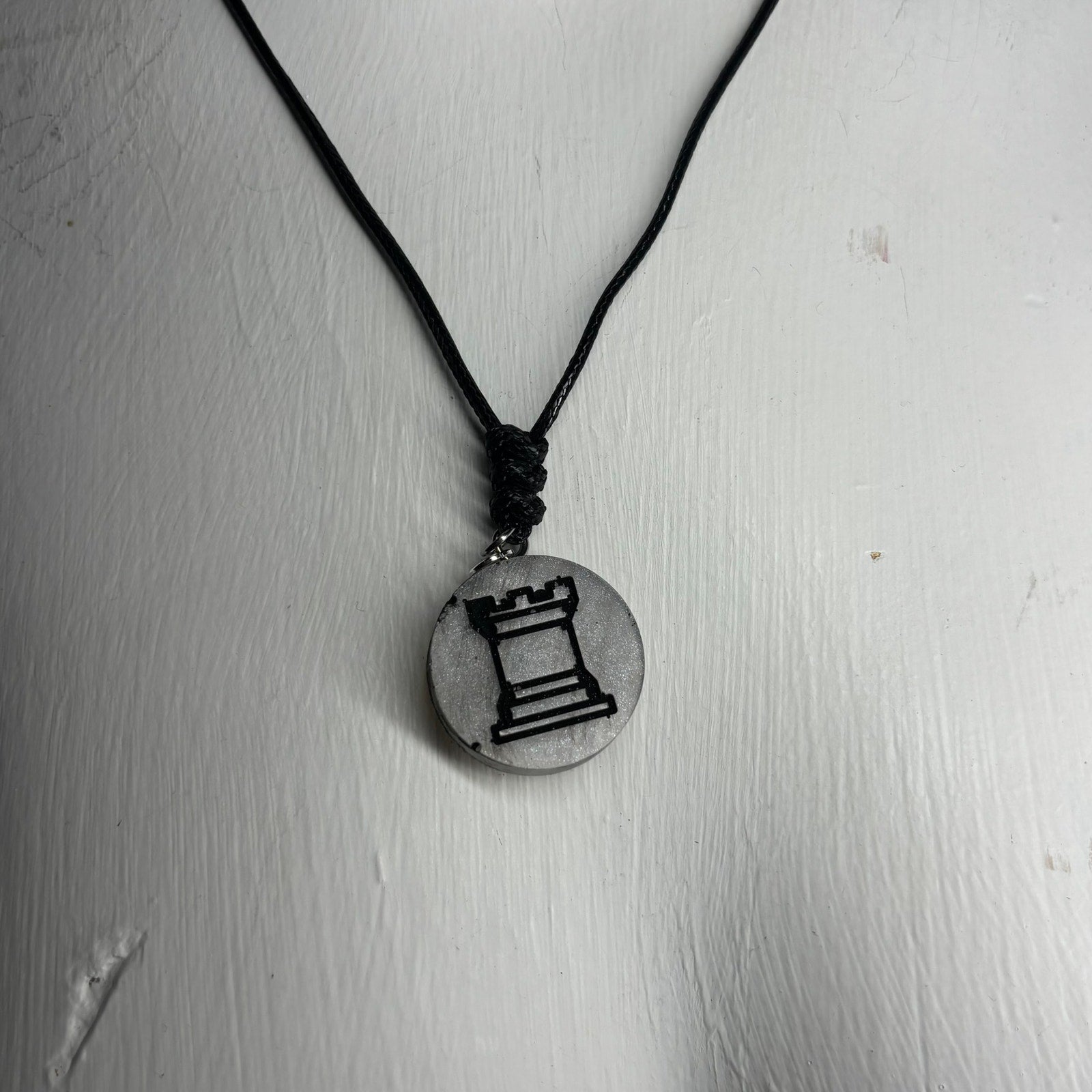 Gray Silver Rook - Handmade Resin Chess Necklace