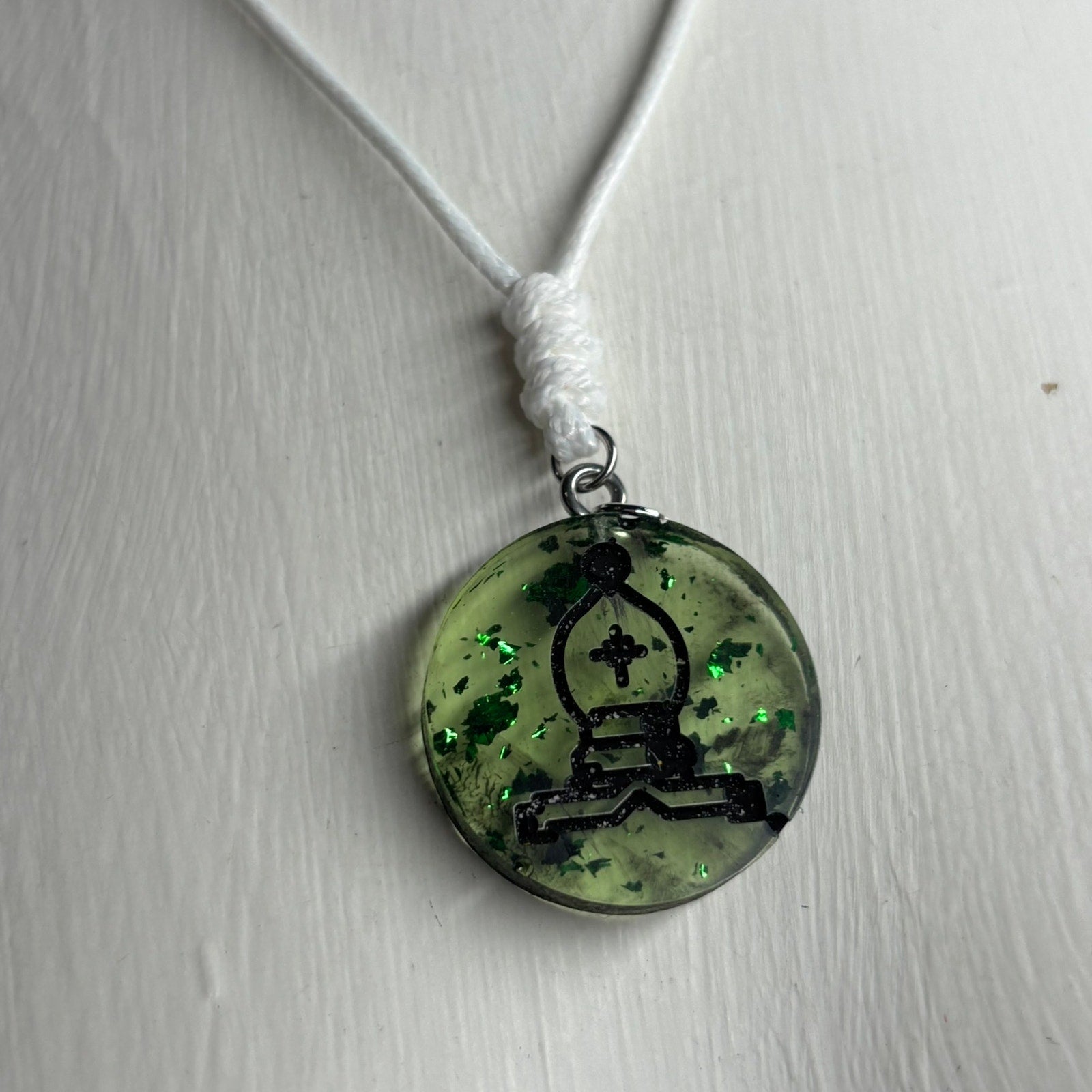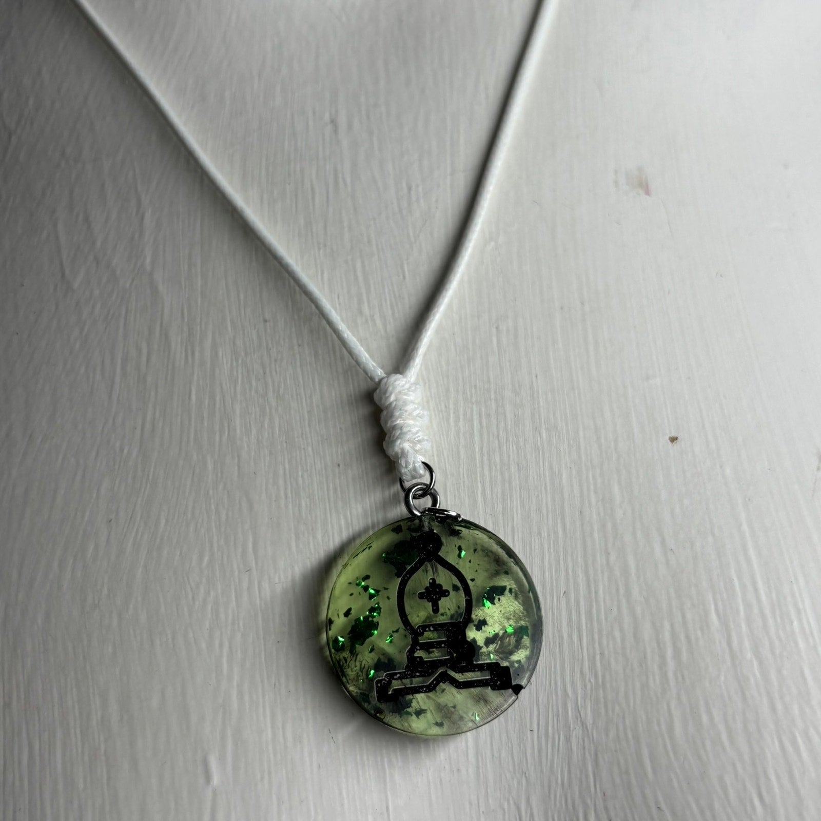 Green Crystal Bishop - Handmade Resin Chess Necklace