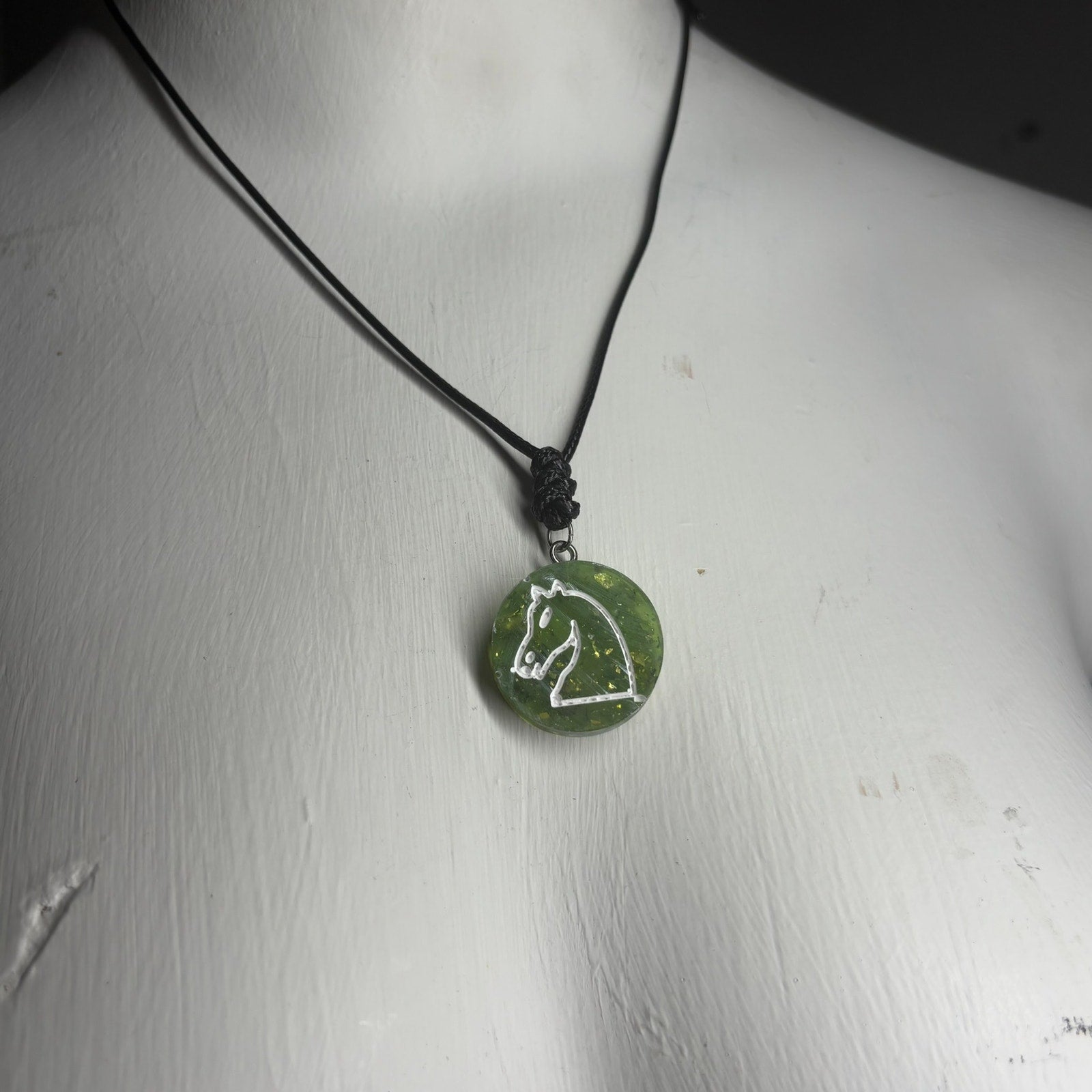 Green Crystal Knight - Handmade Resin Chess Necklace