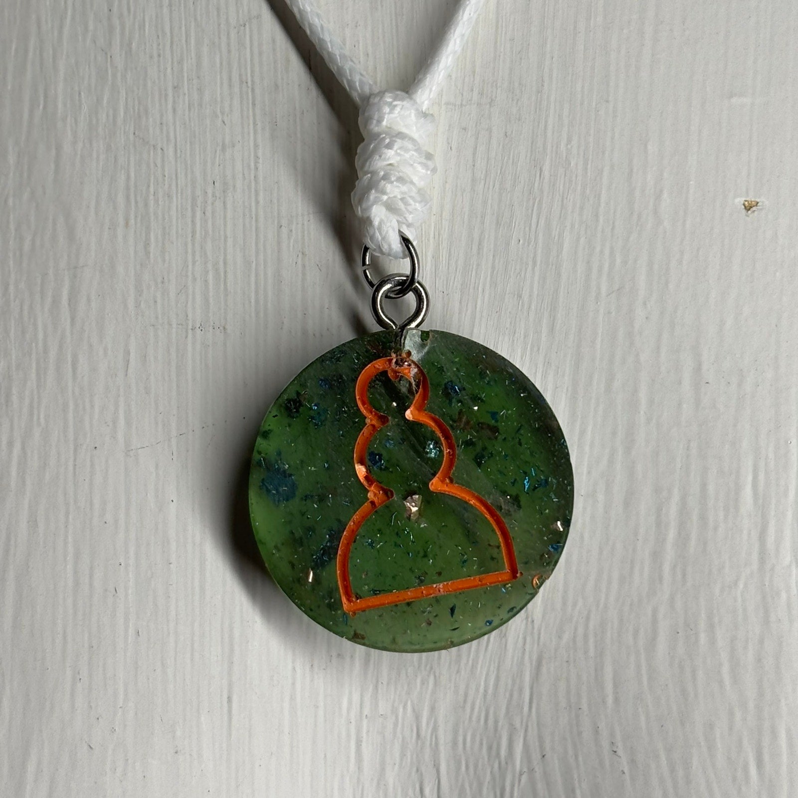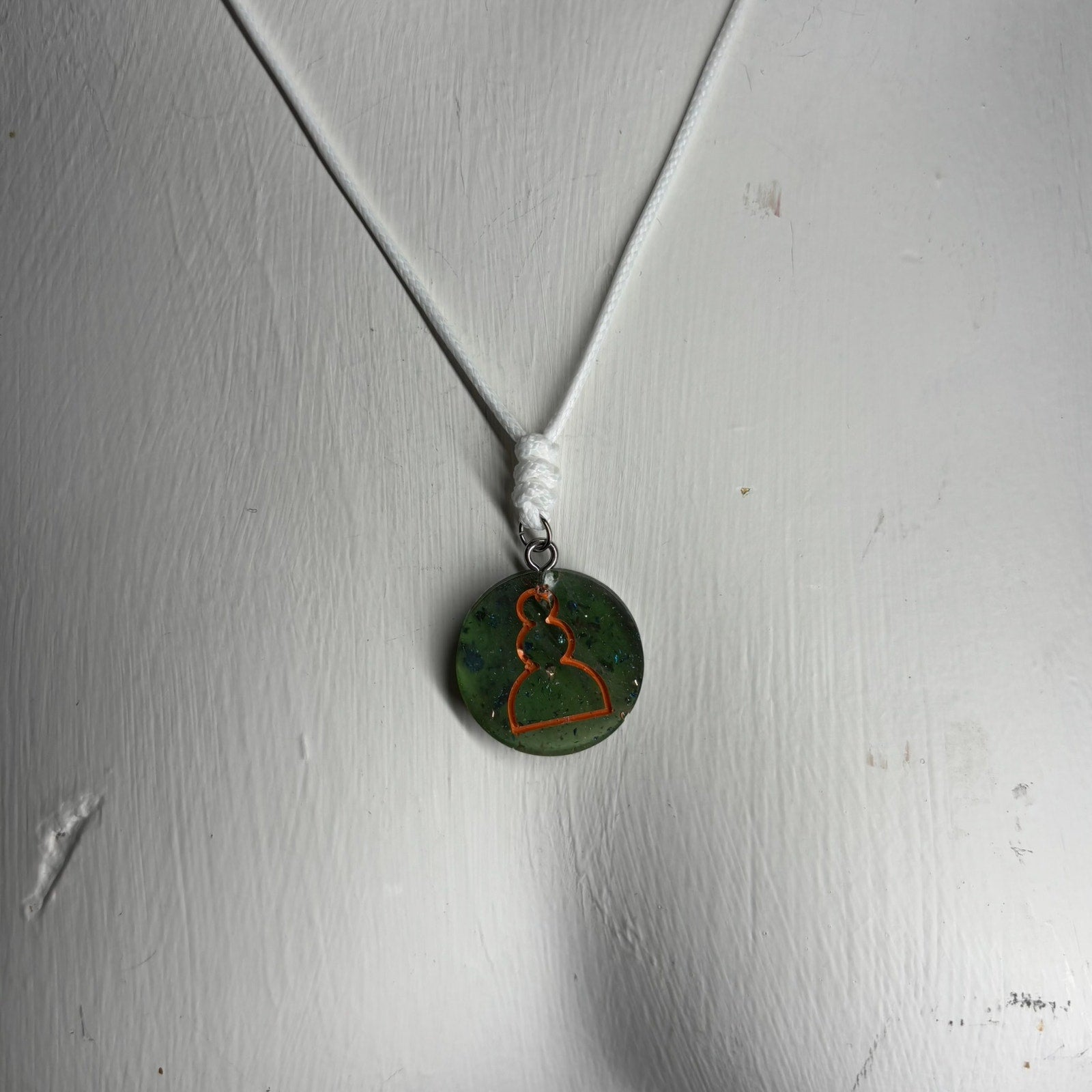 Green Crystal Orange Pawn - Handmade Resin Chess Necklace