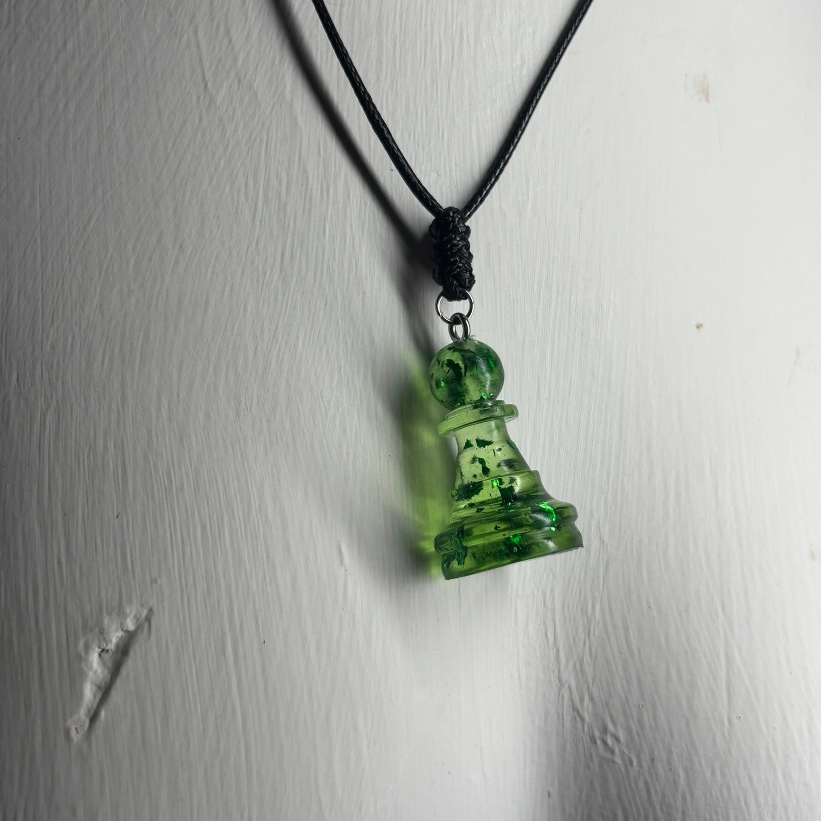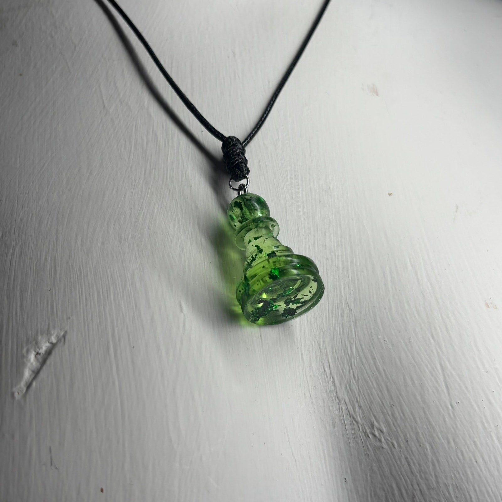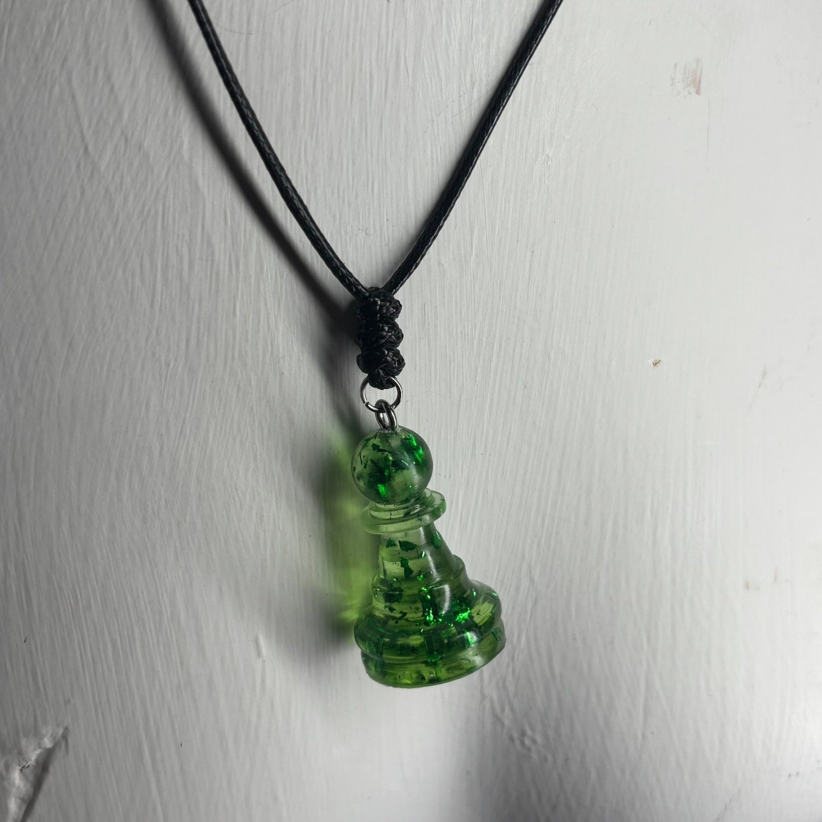 Green Crystal Pawn - Handmade Resin Chess Necklace
