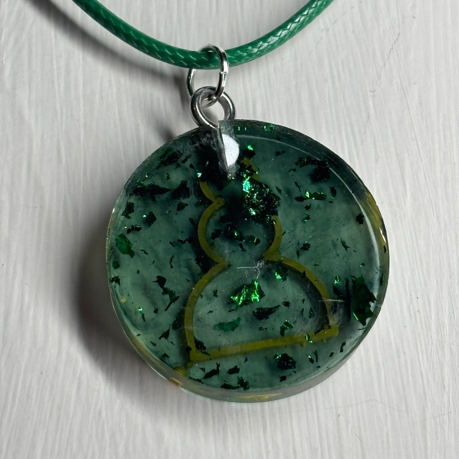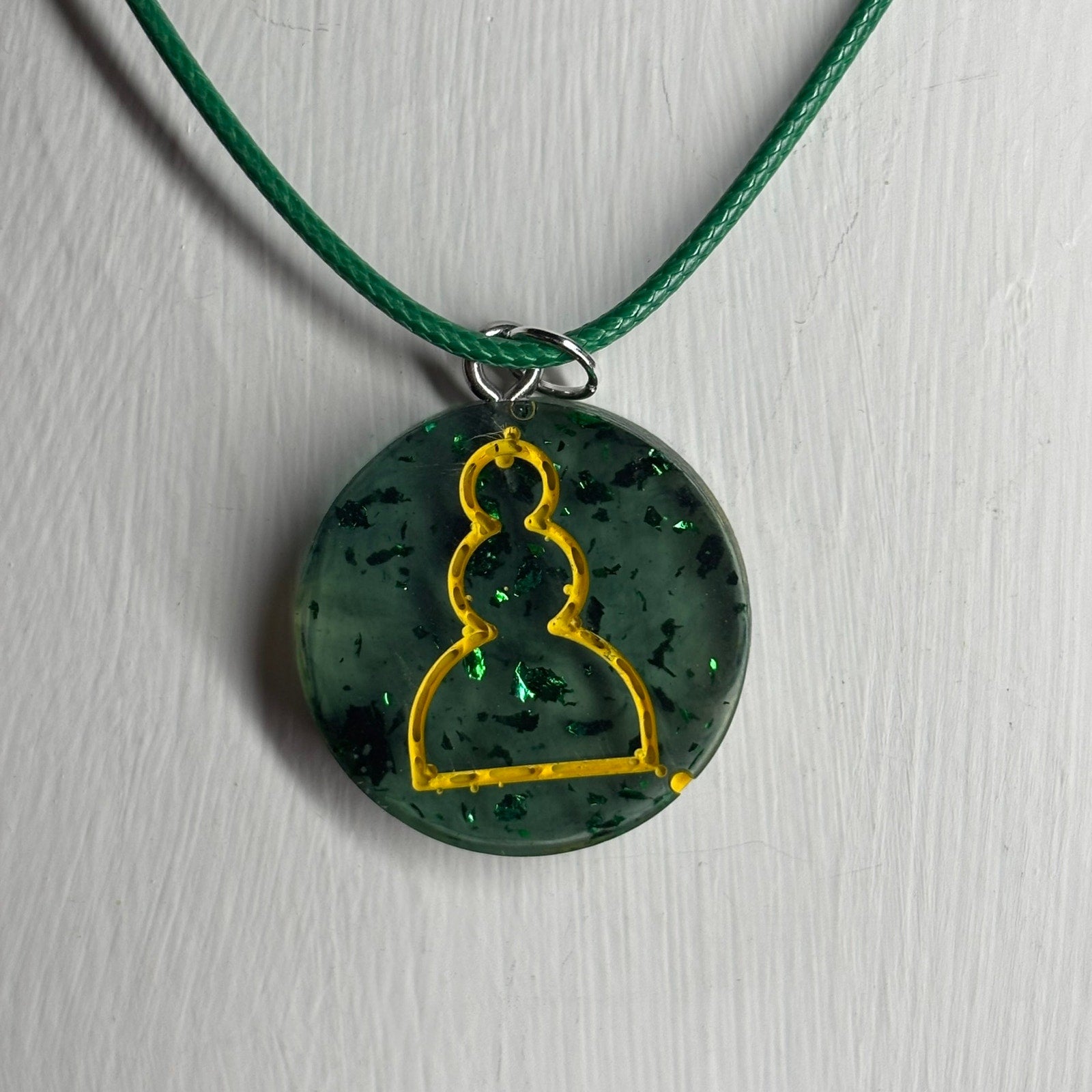 Green Crystal Pawn - Handmade Resin Chess Necklace