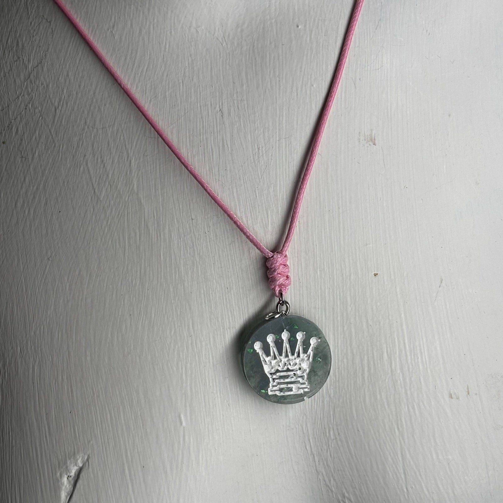 Green Crystal Queen - Handmade Resin Chess Necklace