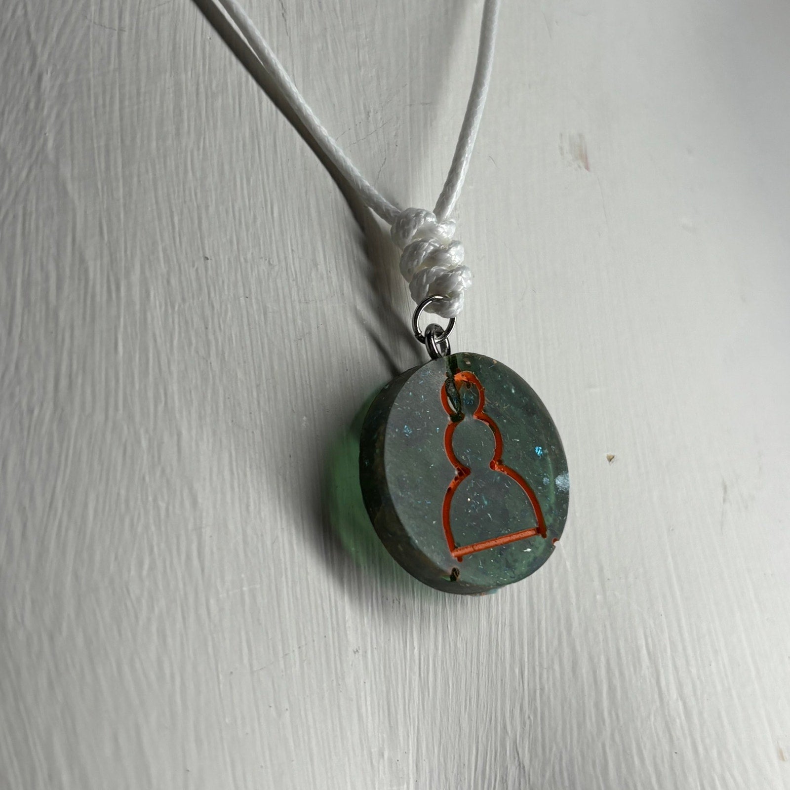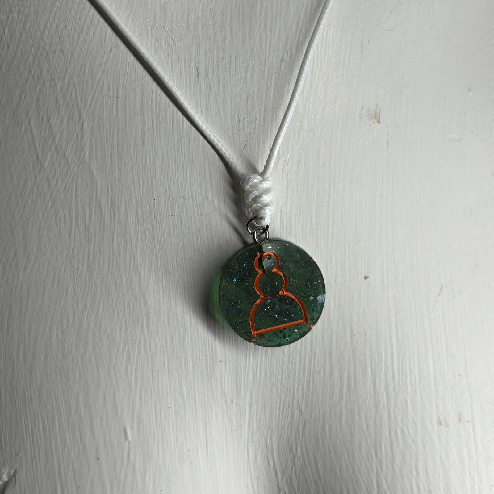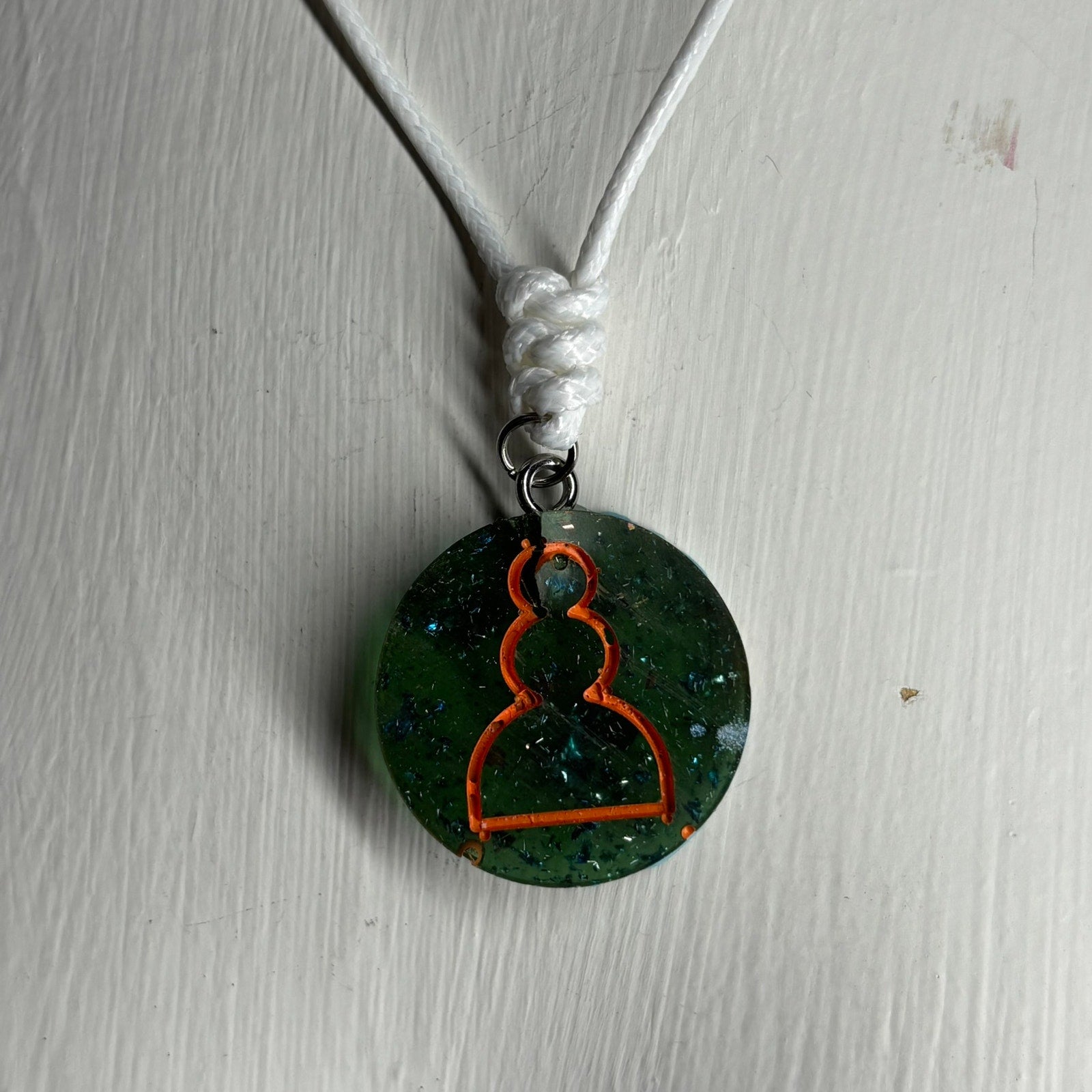Green Orange Pawn - Handmade Resin Chess Necklace