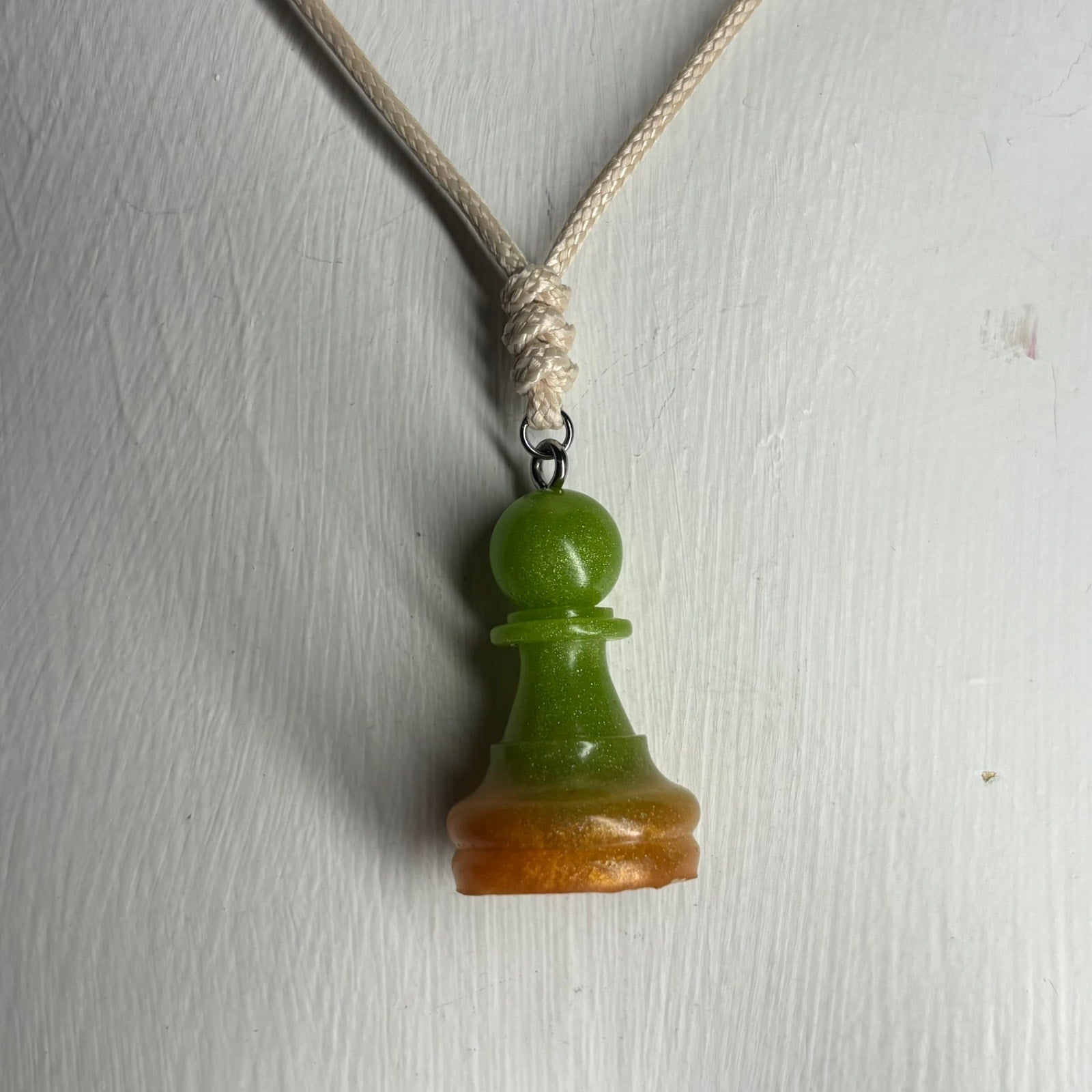Green & Orange Pawn - Handmade Resin Chess Necklace