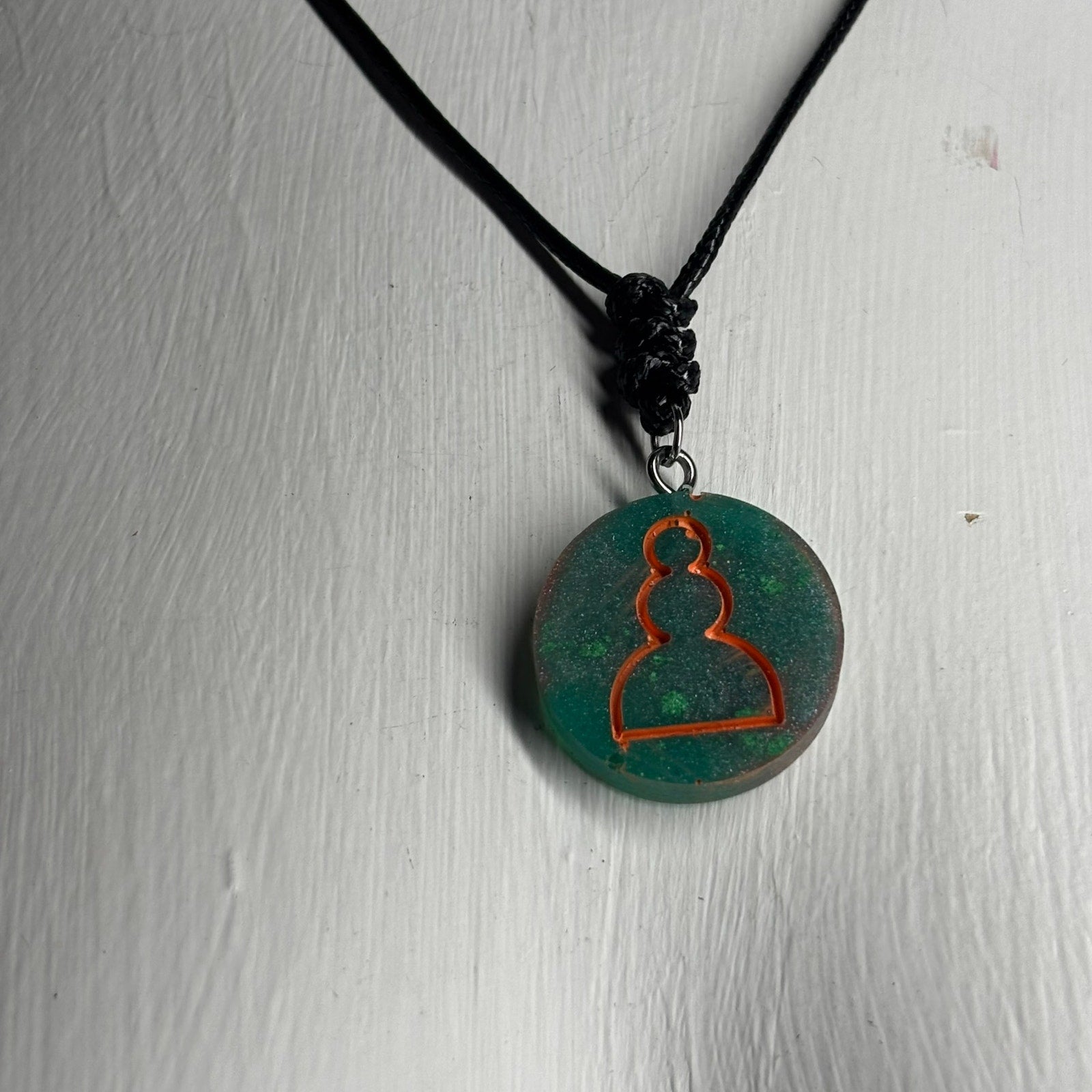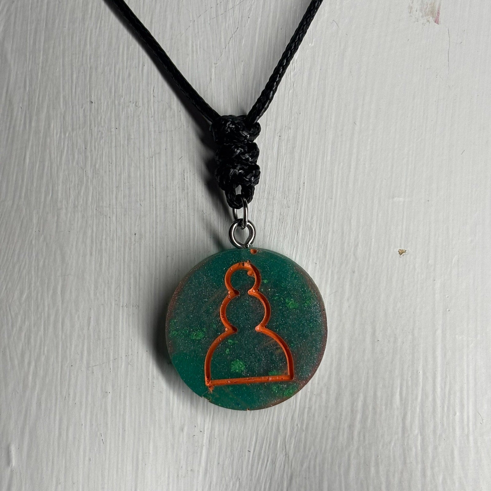 Green & Orange Pawn - Handmade Resin Chess Necklace