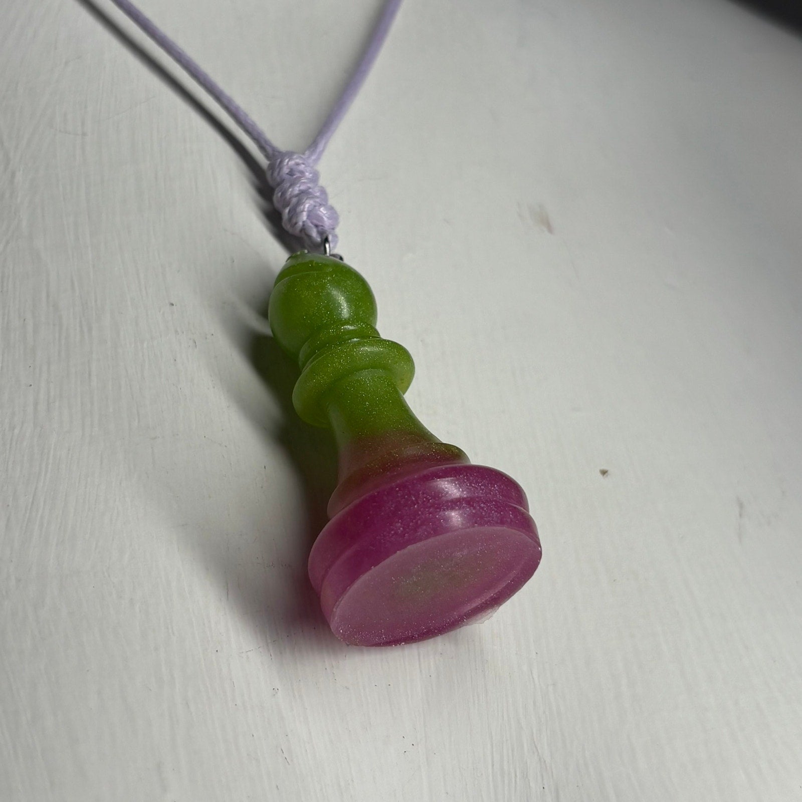 Green & Pink Bishop - Handmade Resin Chess Necklace