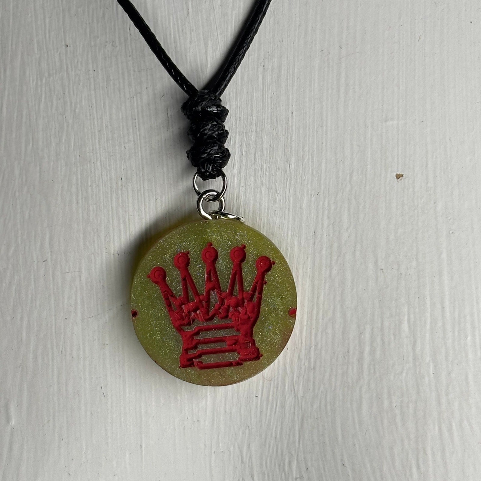 Green Queen Red Print - Handmade Resin Chess Necklace