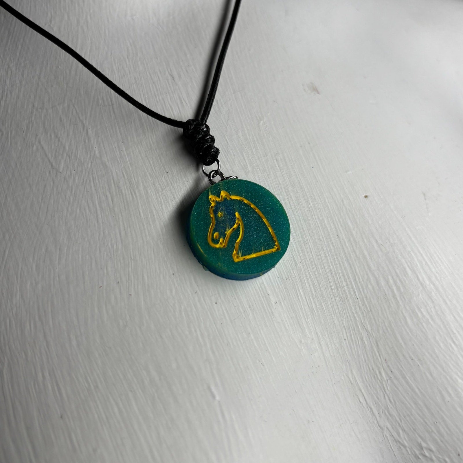 Green/Yellow Knight - Handmade Resin Chess Necklace