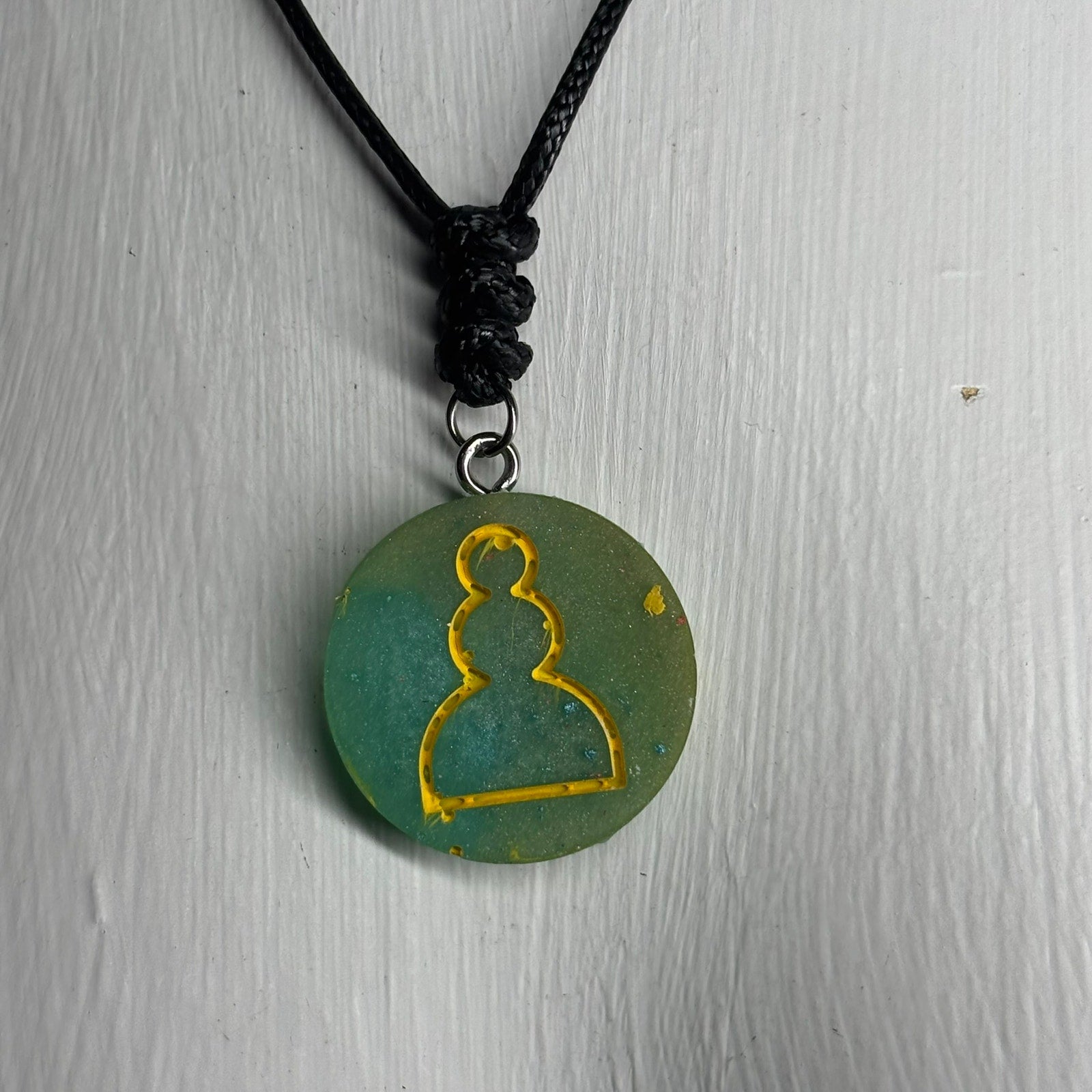 Green & Yellow Pawn - Handmade Resin Chess Necklace
