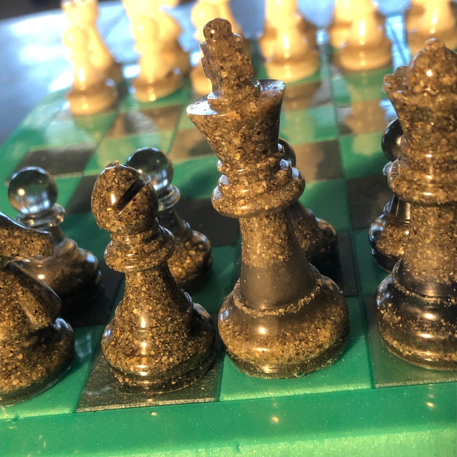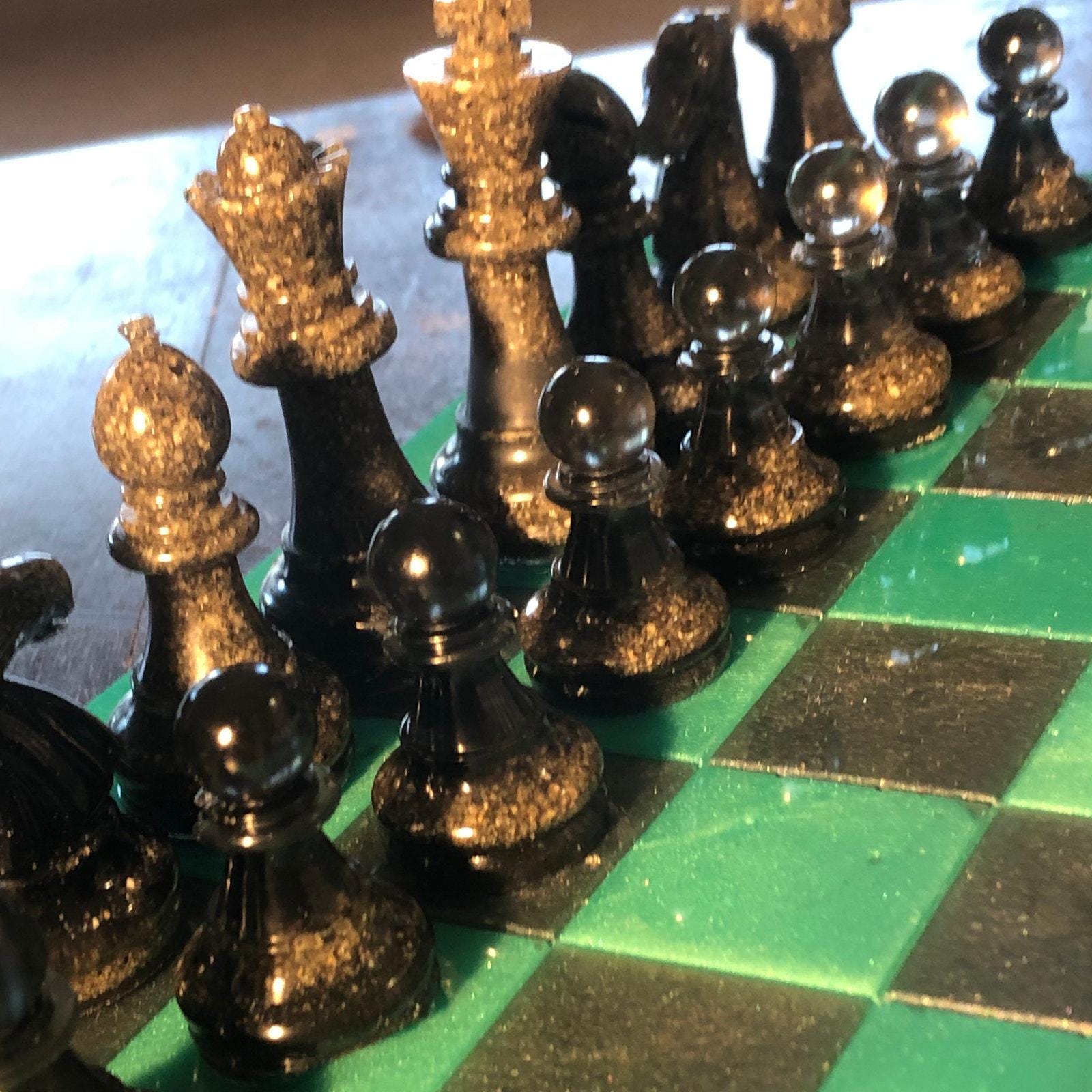 Introducing our exclusive Handcrafted Epoxy Resin Chess Set, meticulously designed with precision and care. Measuring 10 inches by 10 inches, this chess set features a beautifully Epoxy Resin poured board that doubles as a work of art. Each set is a unique, one-of-a-kind creation, crafted by hand to ensure that no two sets are alike. Elevate your gaming experience with this exceptional chess set that combines vibrant design with the touch of artisan craftsmanship. This chess board comes with chess pieces.