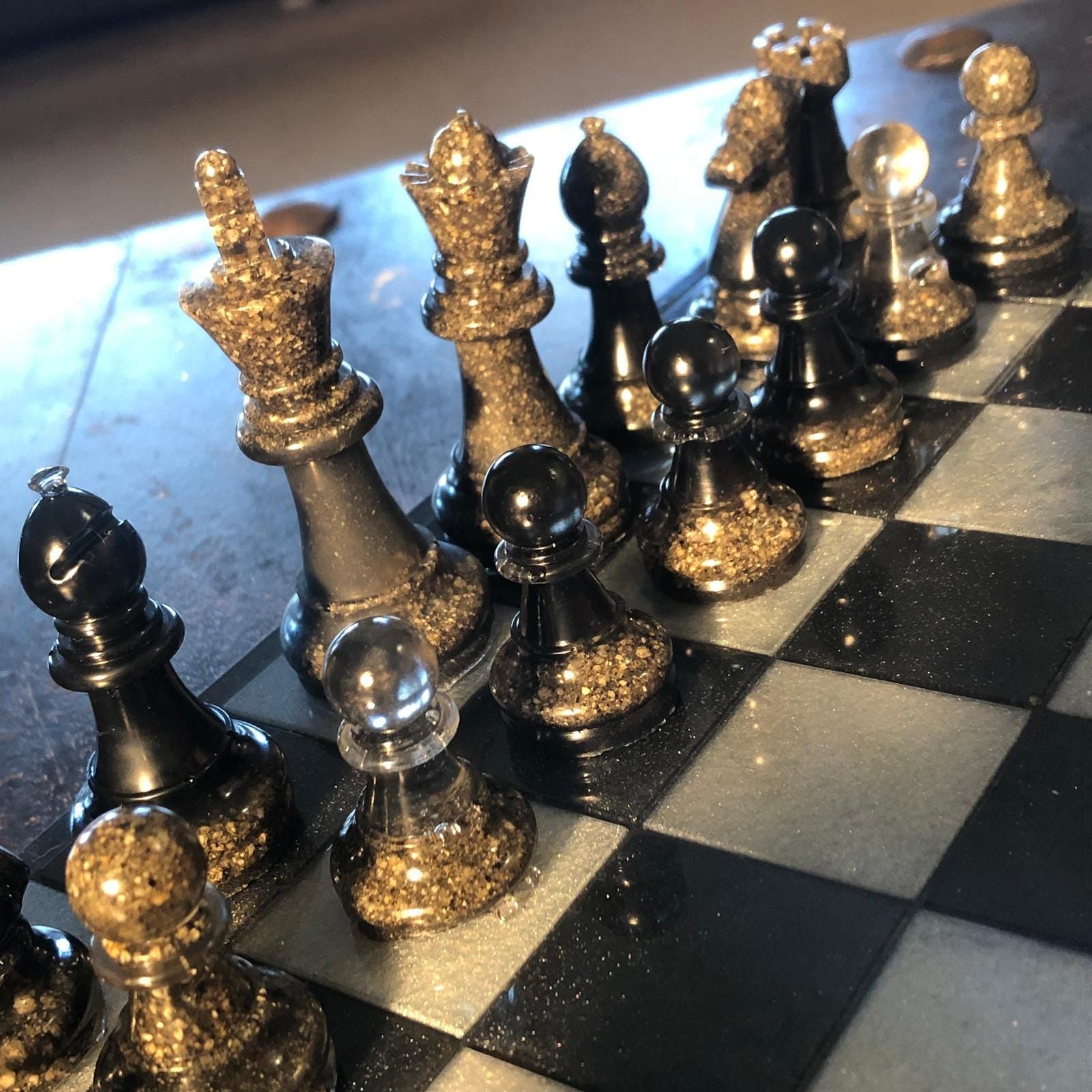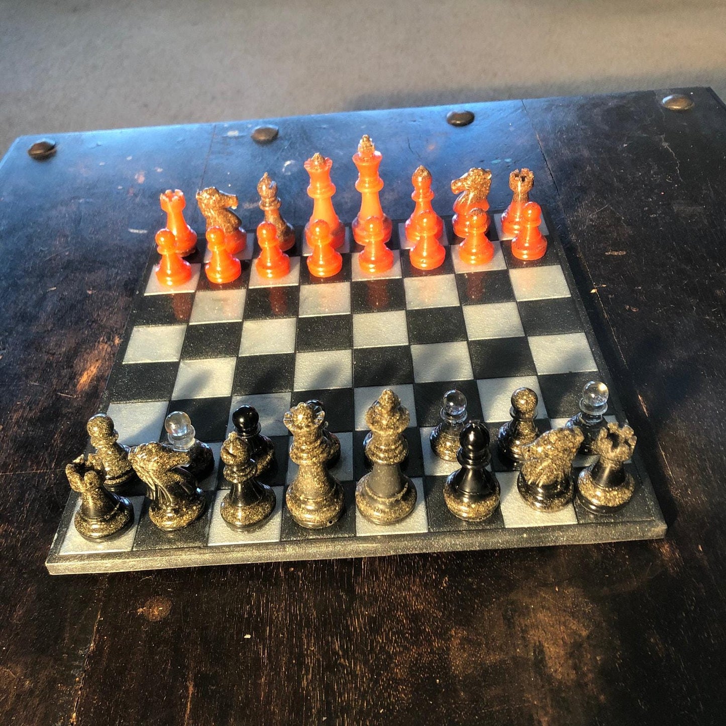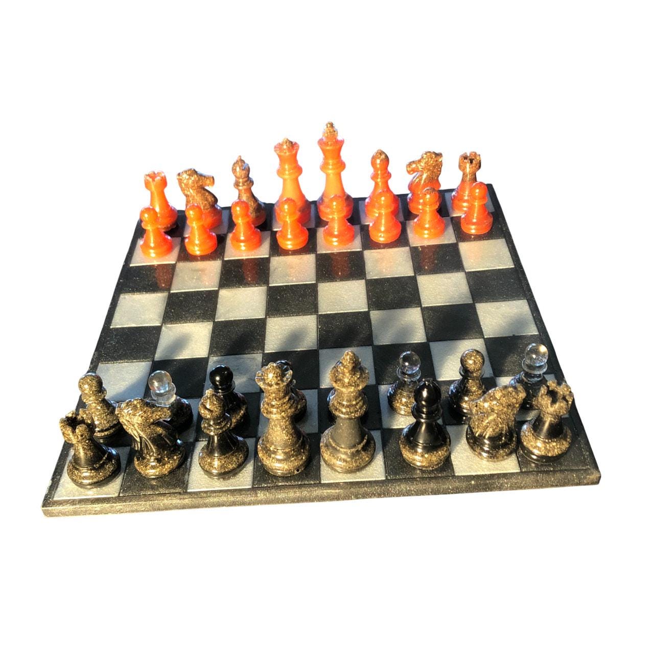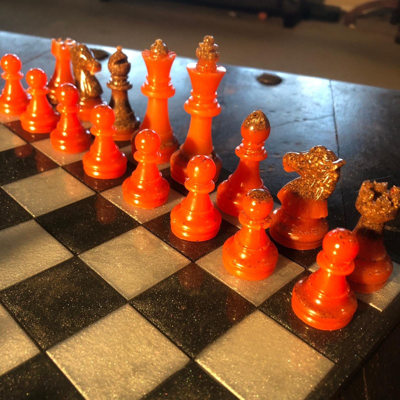 Introducing our exclusive Handcrafted Epoxy Resin Chess Set, meticulously designed with precision and care. Measuring 10 inches by 10 inches, this chess set features a beautifully Epoxy Resin poured board that doubles as a work of art. Each set is a unique, one-of-a-kind creation, crafted by hand to ensure that no two sets are alike. Elevate your gaming experience with this exceptional chess set that combines vibrant design with the touch of artisan craftsmanship. This chess board comes with chess pieces.
