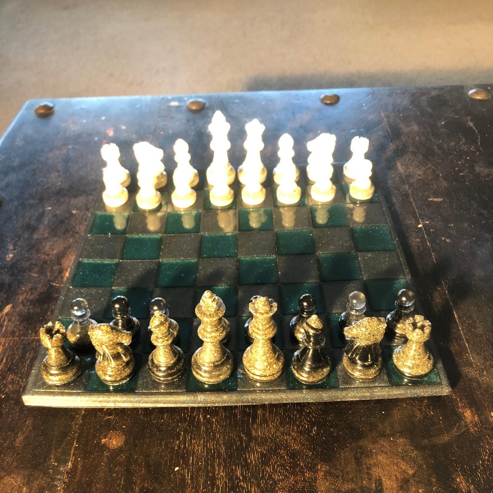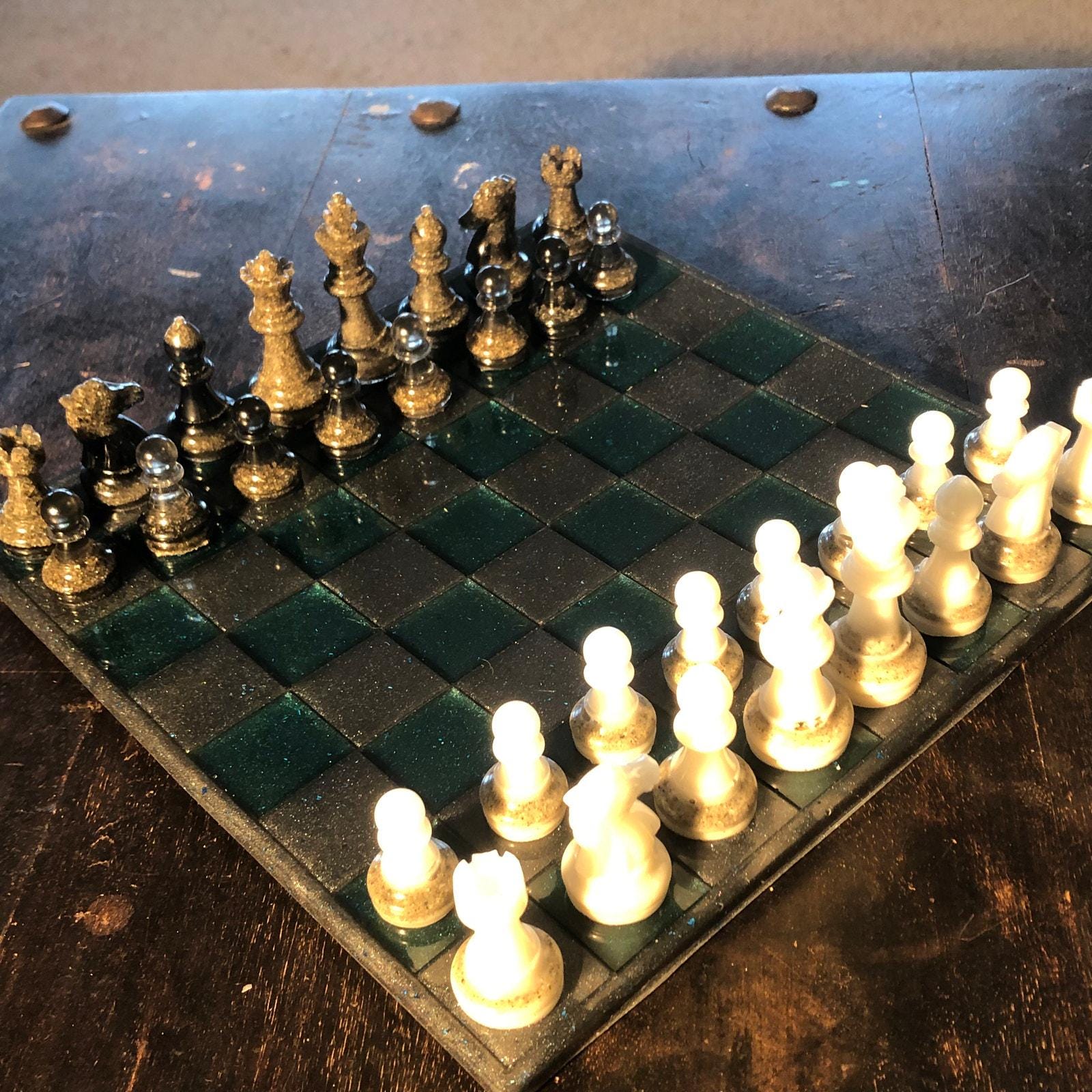 Introducing our exclusive Handcrafted Epoxy Resin Chess Set, meticulously designed with precision and care. Measuring 10 inches by 10 inches, this chess set features a beautifully Epoxy Resin poured board that doubles as a work of art. Each set is a unique, one-of-a-kind creation, crafted by hand to ensure that no two sets are alike. Elevate your gaming experience with this exceptional chess set that combines vibrant design with the touch of artisan craftsmanship. This chess board comes with chess pieces.