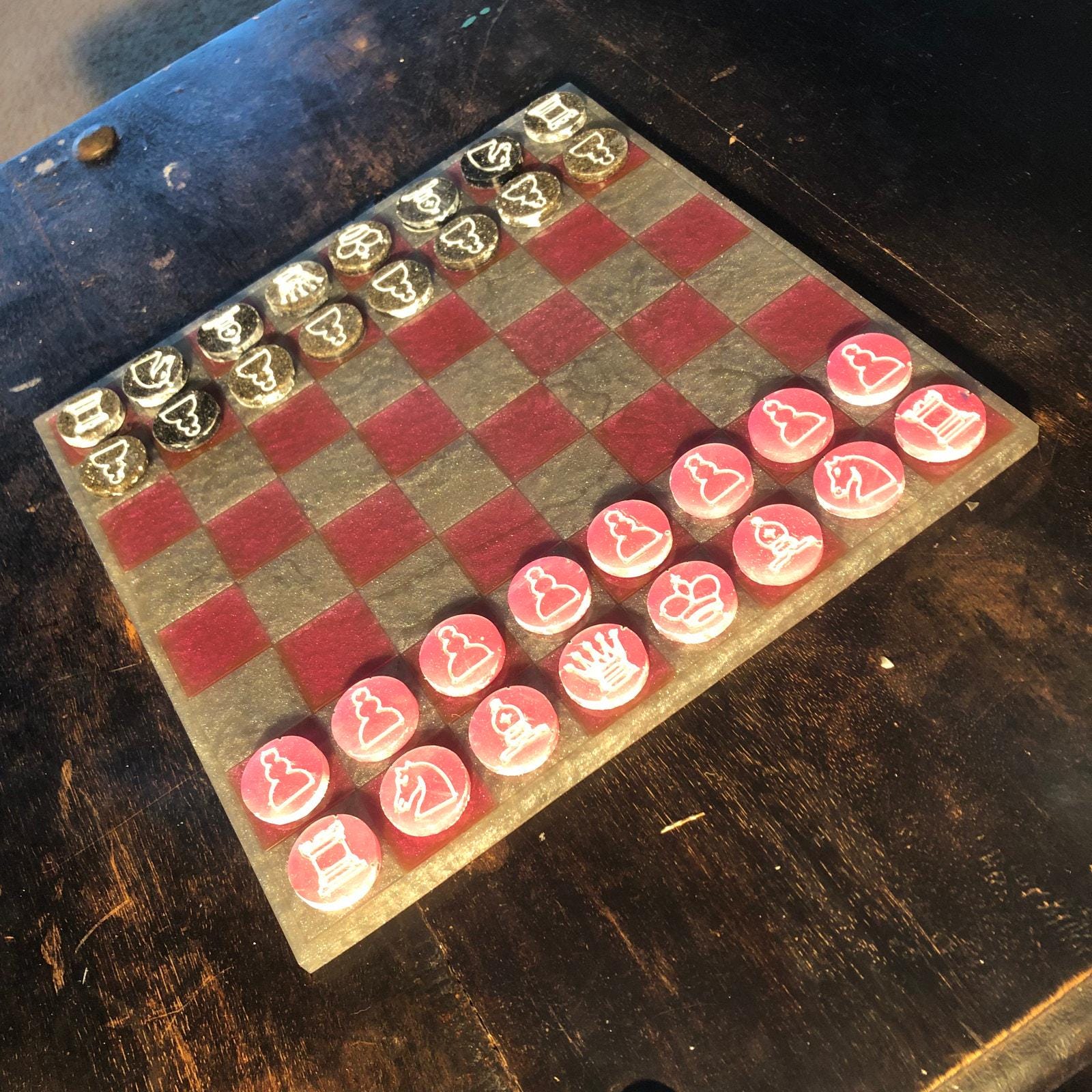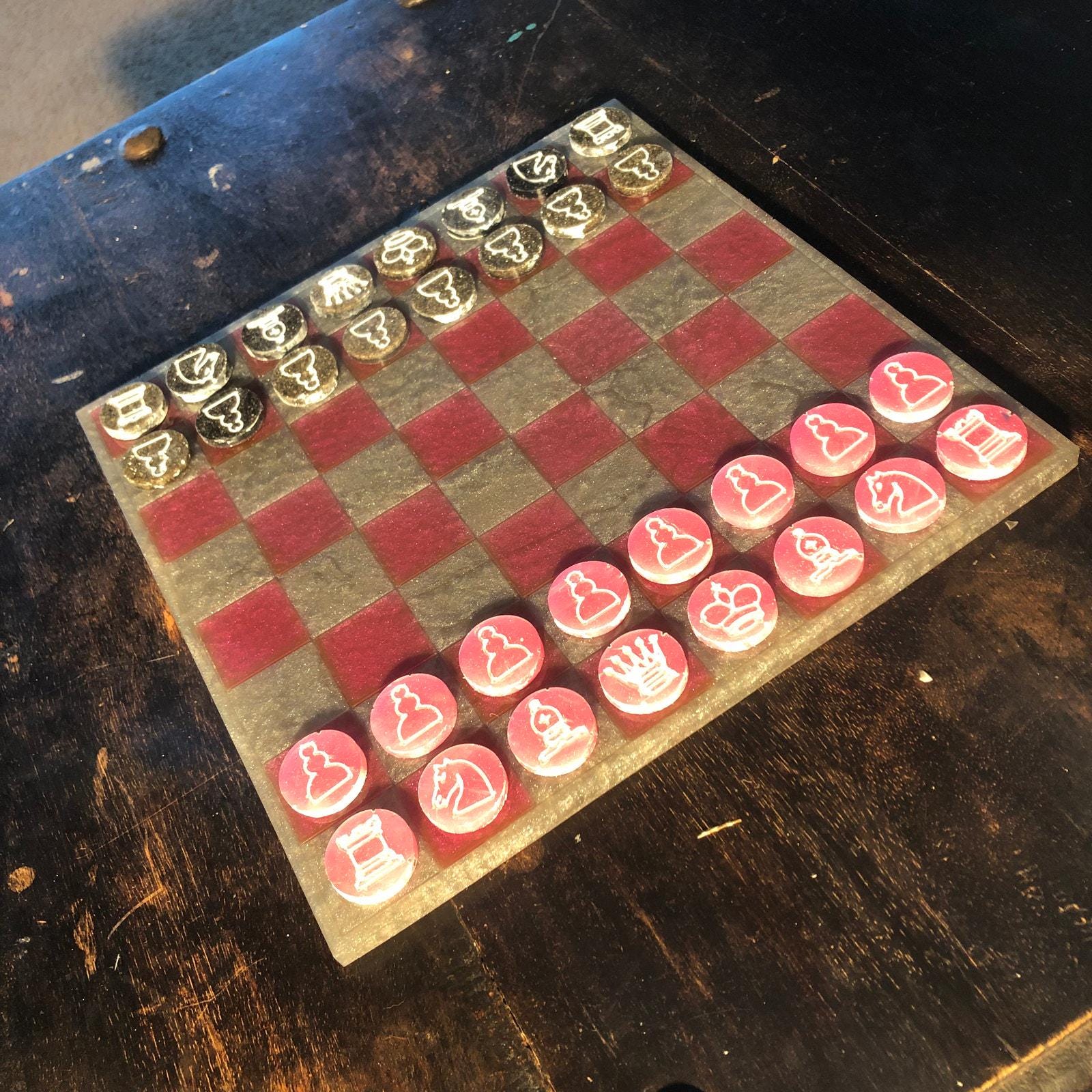 Introducing our exclusive Handcrafted Epoxy Resin Chess Set, meticulously designed with precision and care. Measuring 10 inches by 10 inches, this chess set features a beautifully Epoxy Resin poured board that doubles as a work of art. Each set is a unique, one-of-a-kind creation, crafted by hand to ensure that no two sets are alike. Elevate your gaming experience with this exceptional chess set that combines vibrant design with the touch of artisan craftsmanship. This chess board comes with chess pieces.