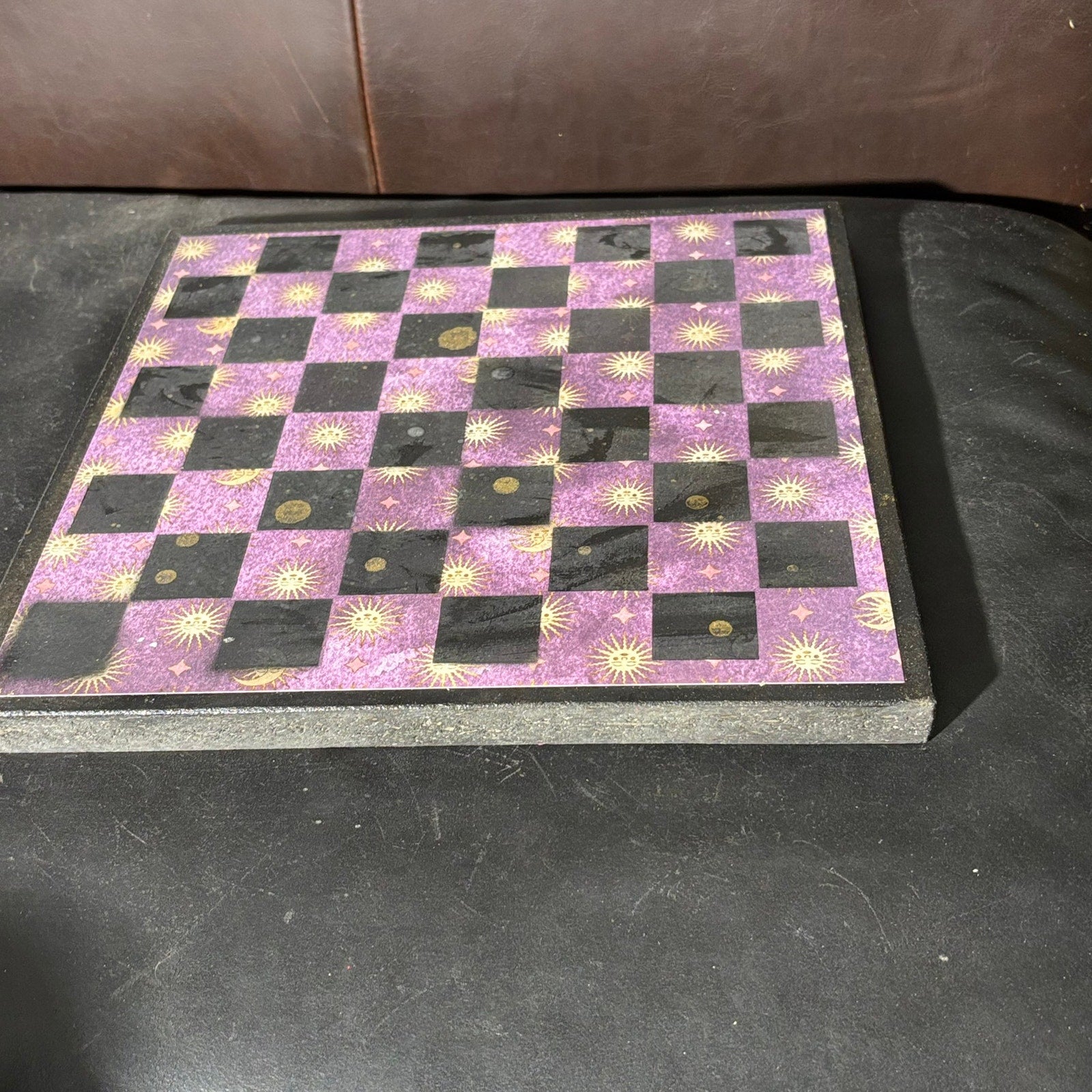 Each board features a layer of beautifully Scrapbook Paper Fused/Glued with particle board to give it a unique pretty pattern. We then paint squares onto the board to make them into fabulous chess boards. Made with a sturdy particle board base and smooth, beveled edges, this board is stunning.
