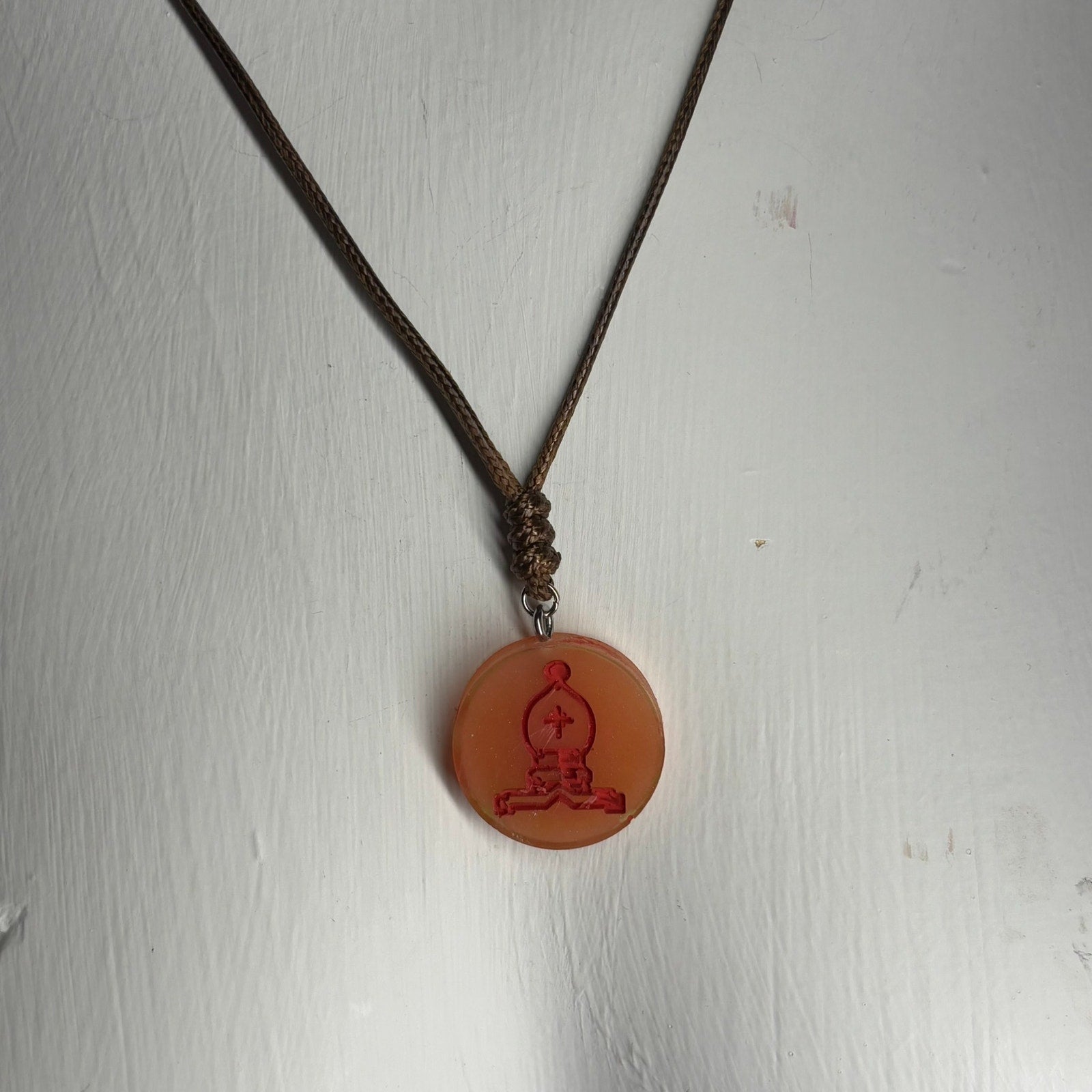 Hot Orange Bishop - Handmade Resin Chess Necklace