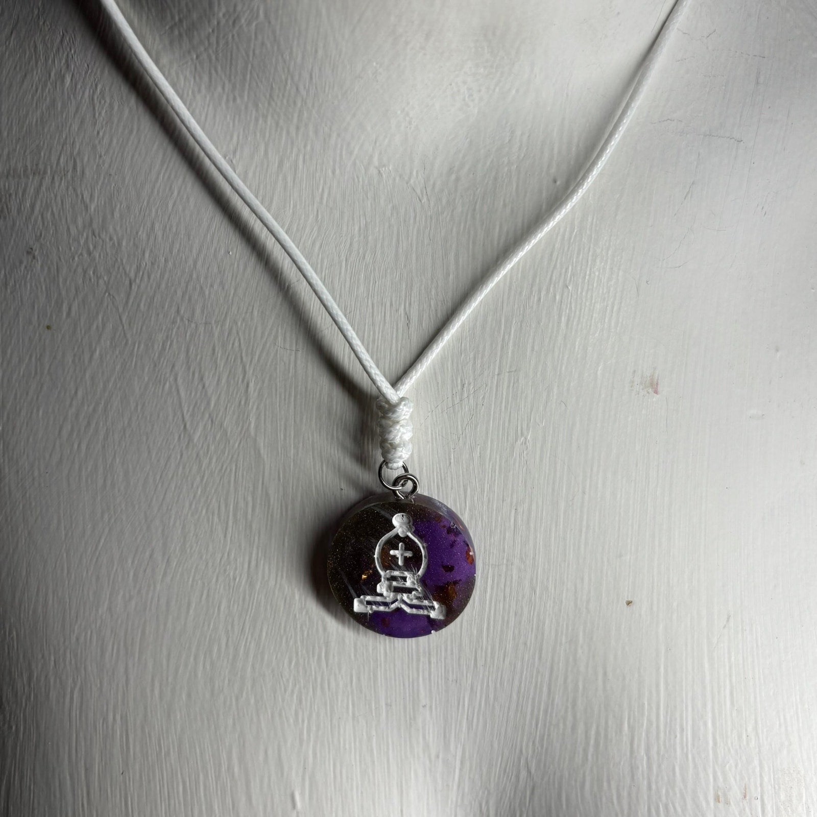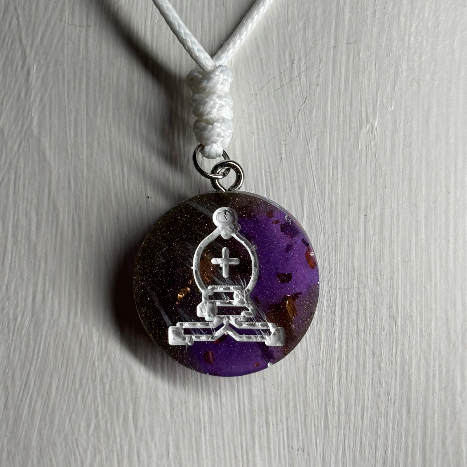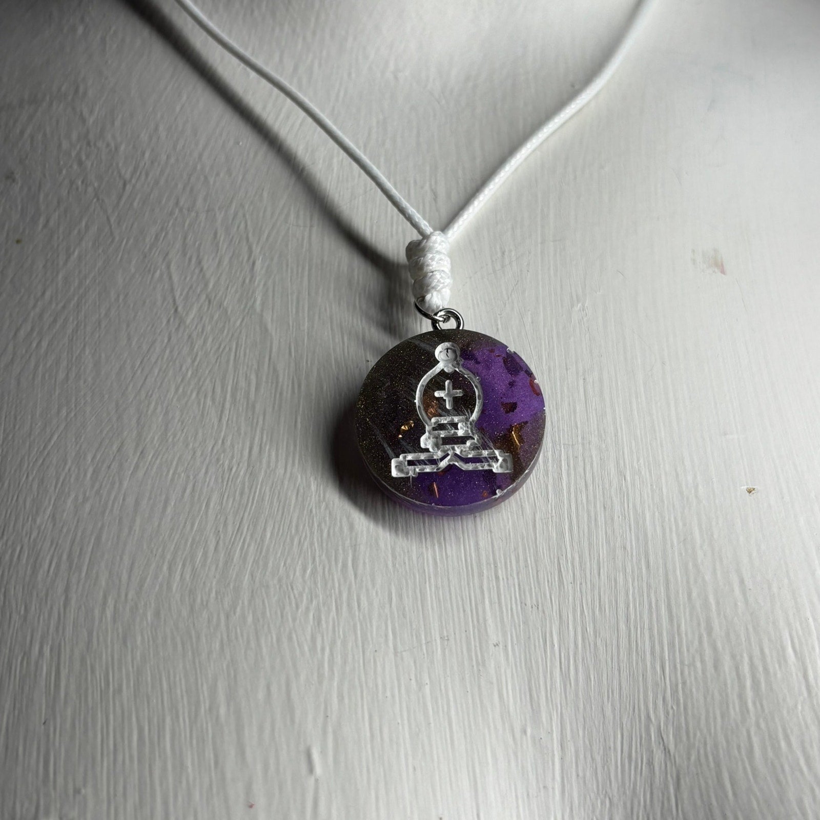 Iced Purple Bishop - Handmade Resin Chess Necklace
