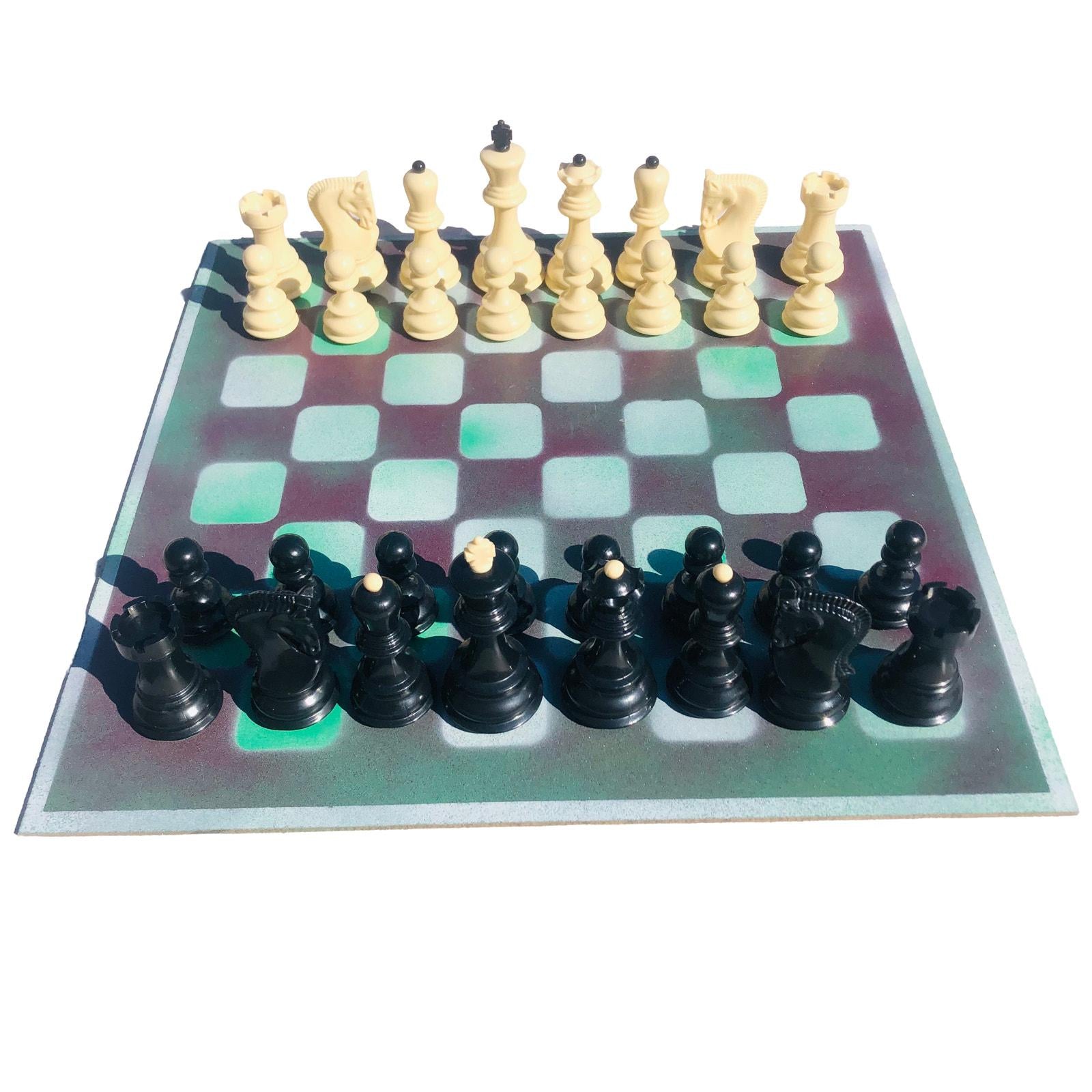 Introducing our exclusive Handcrafted Hardboard Chess Set, meticulously designed with precision and care. Measuring 16 inches by 16 inches, this chess set features a beautifully painted hardwood board that doubles as a work of art. Each set is a unique, one-of-a-kind creation, crafted by hand to ensure that no two sets are alike. Elevate your gaming experience with this exceptional chess set that combines vibrant design with the touch of artisan craftsmanship.