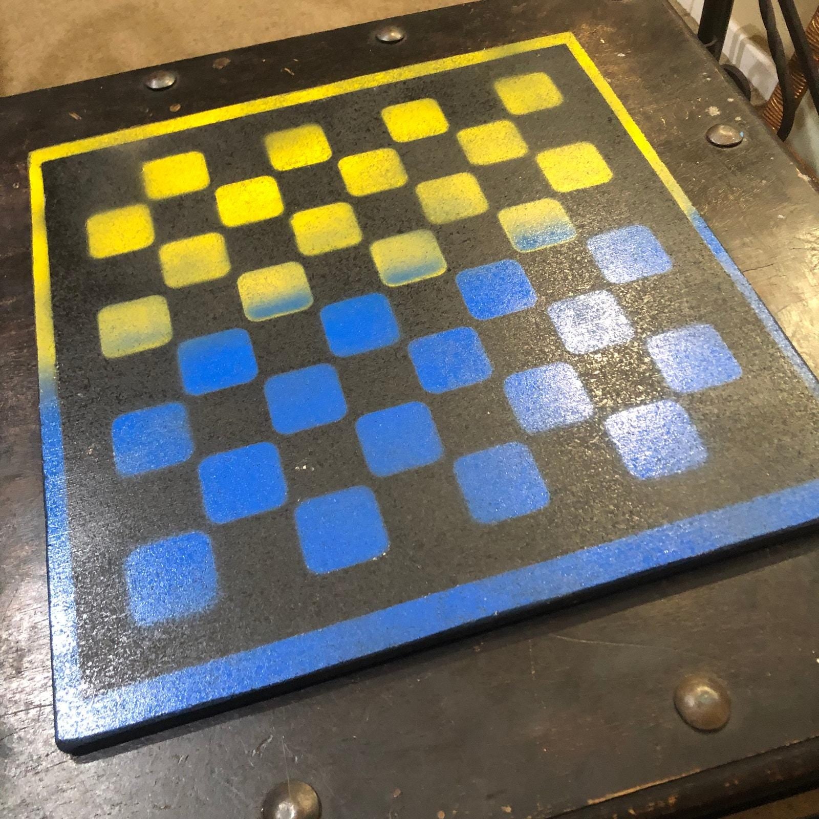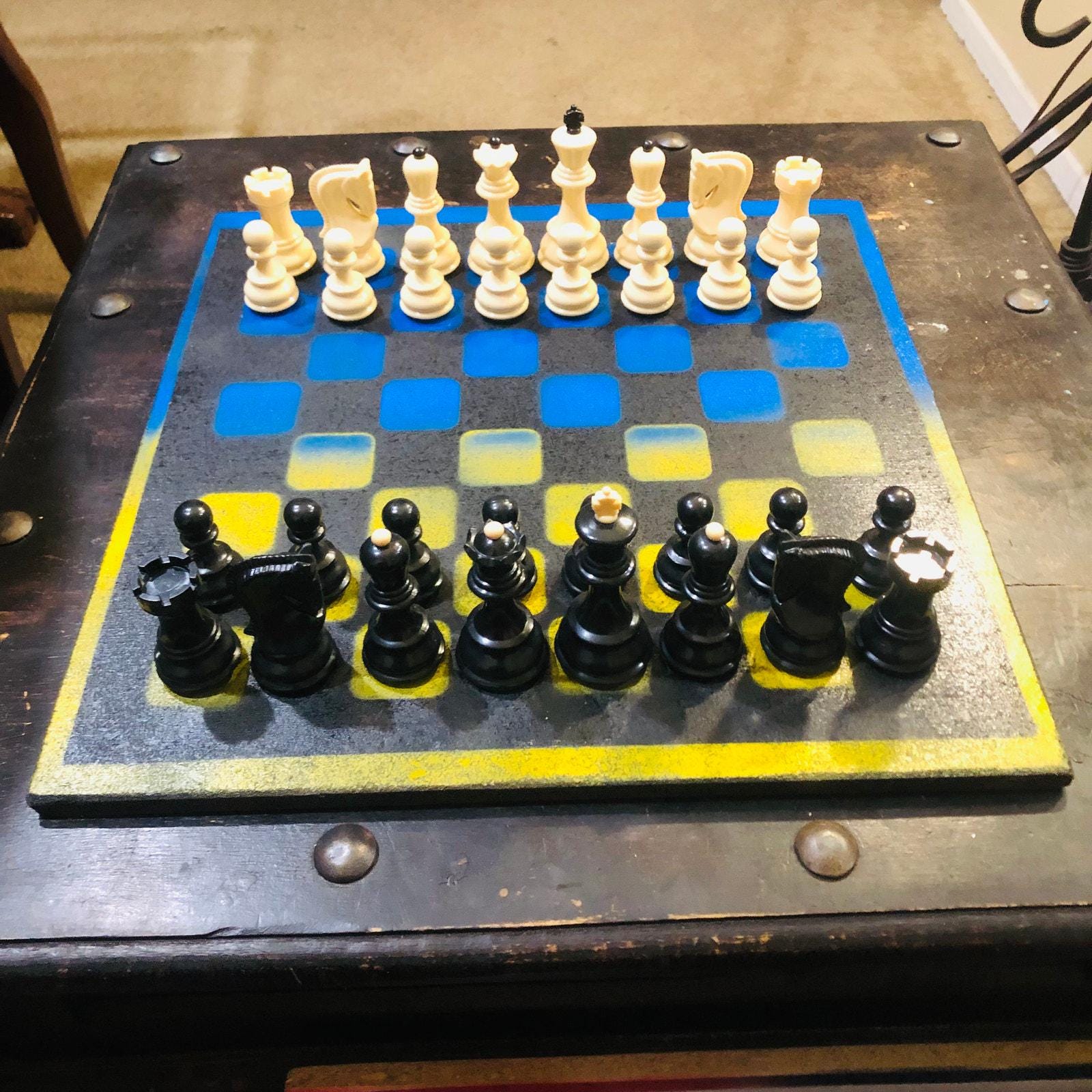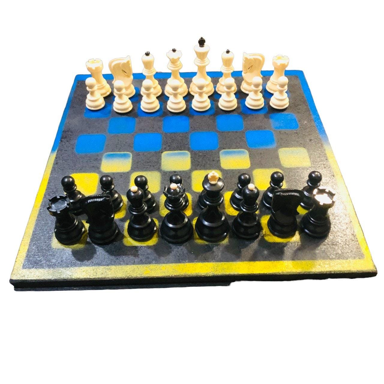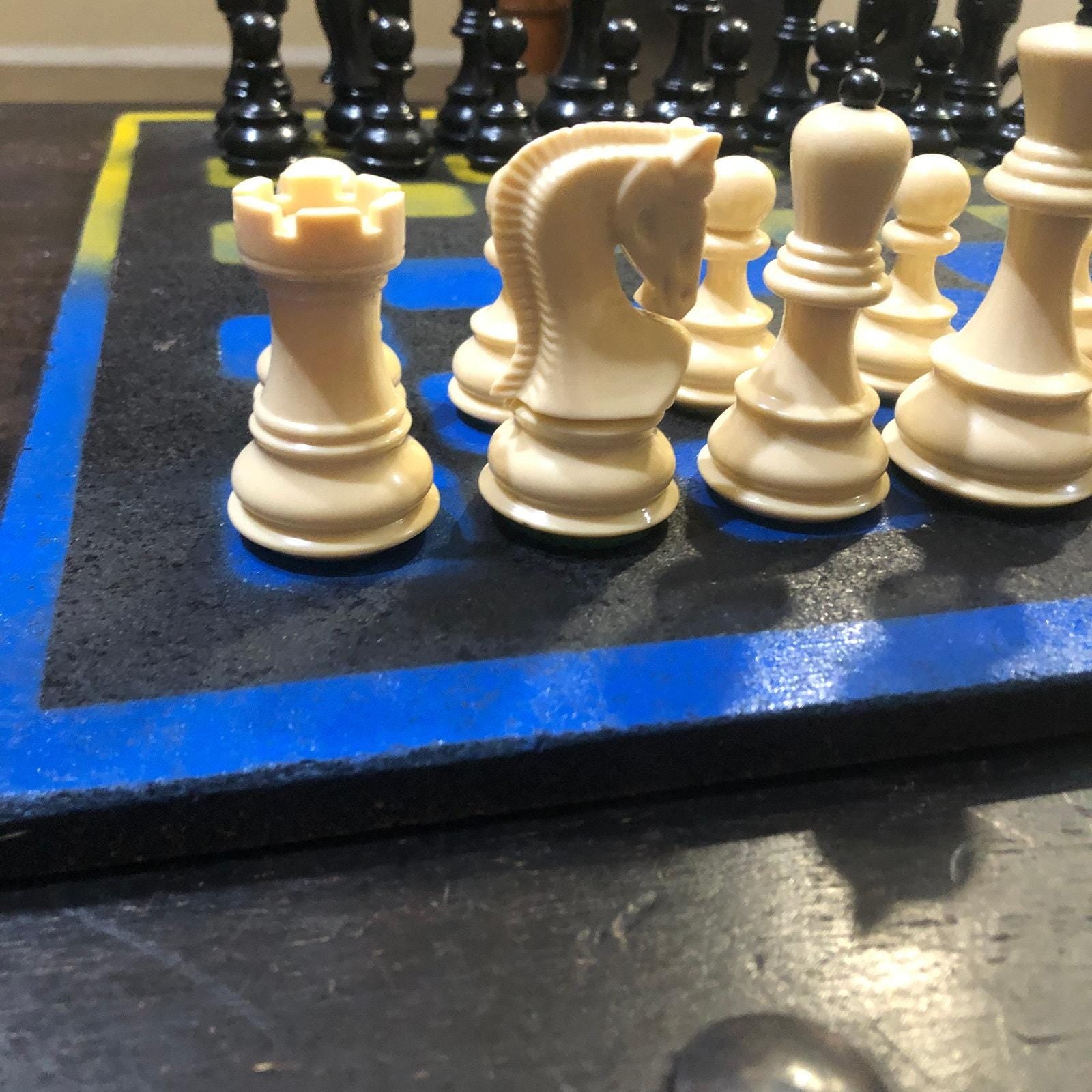 Introducing our exclusive Handcrafted Painted Particle Board Chess Set, meticulously designed with precision and care. Measuring 16 inches by 16 inches, this chess set features a beautifully painted piece of particle board that doubles as a work of art. Each set is a unique, one-of-a-kind creation, crafted by hand to ensure that no two sets are alike. Elevate your gaming experience with this exceptional chess set that combines vibrant design with the touch of artisan craftsmanship.