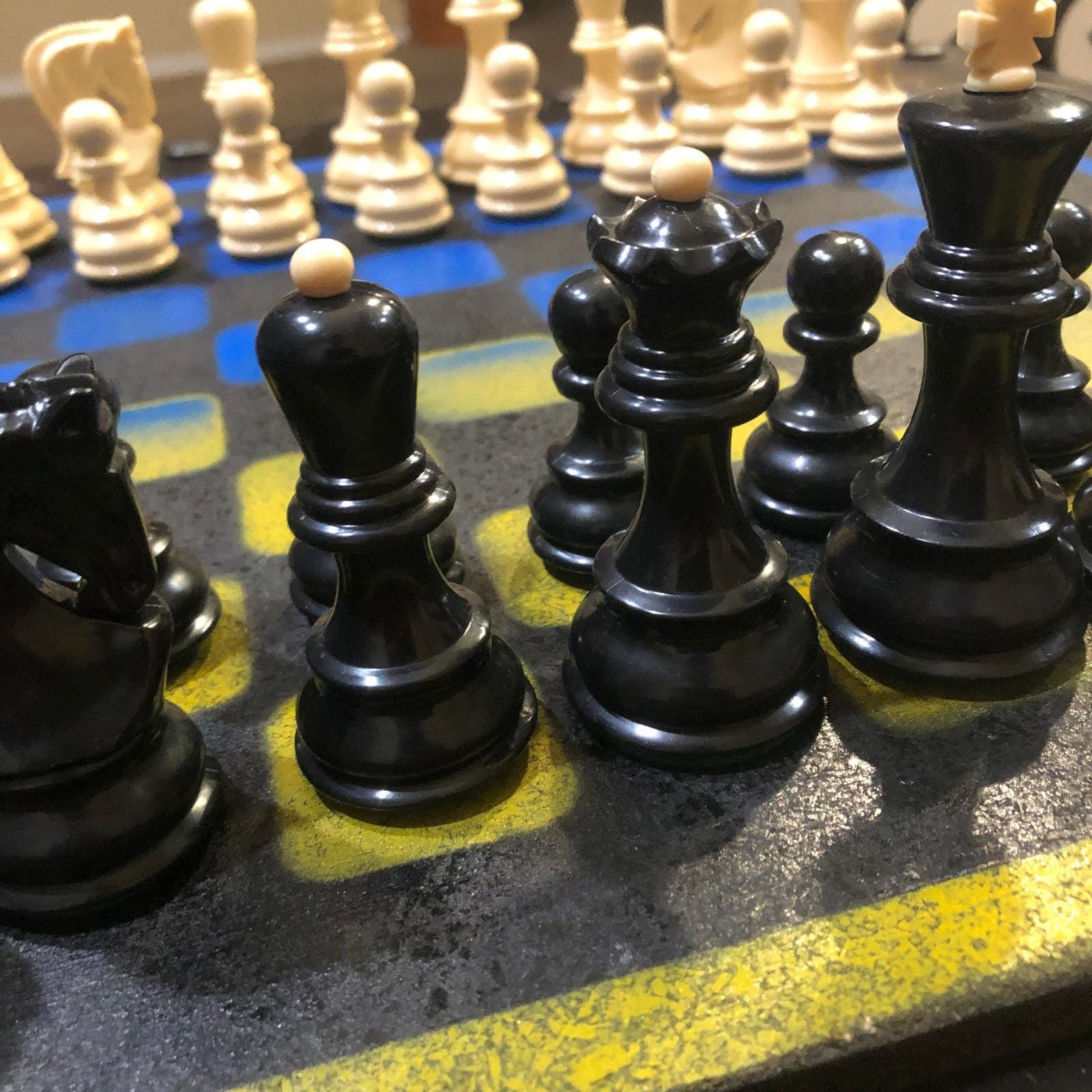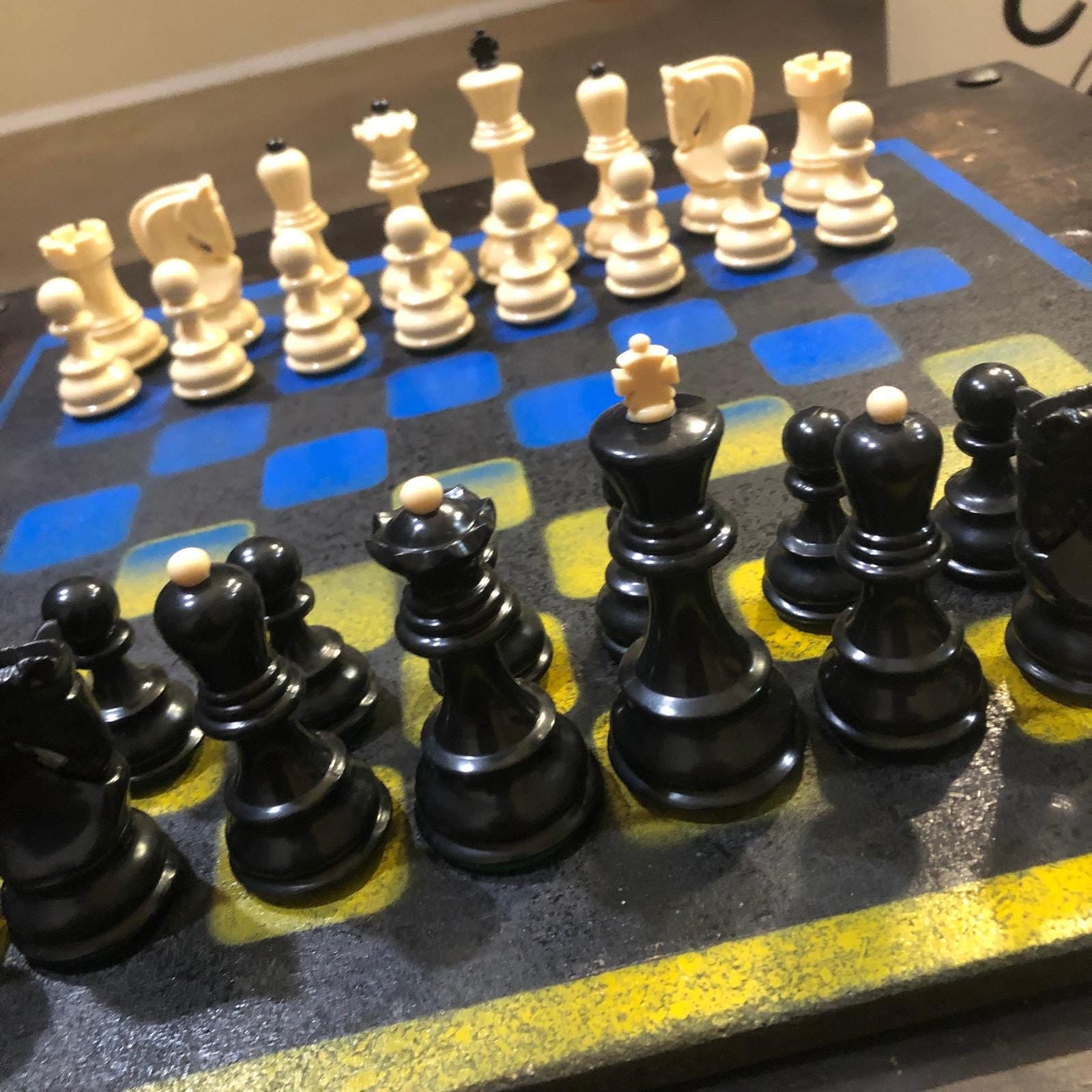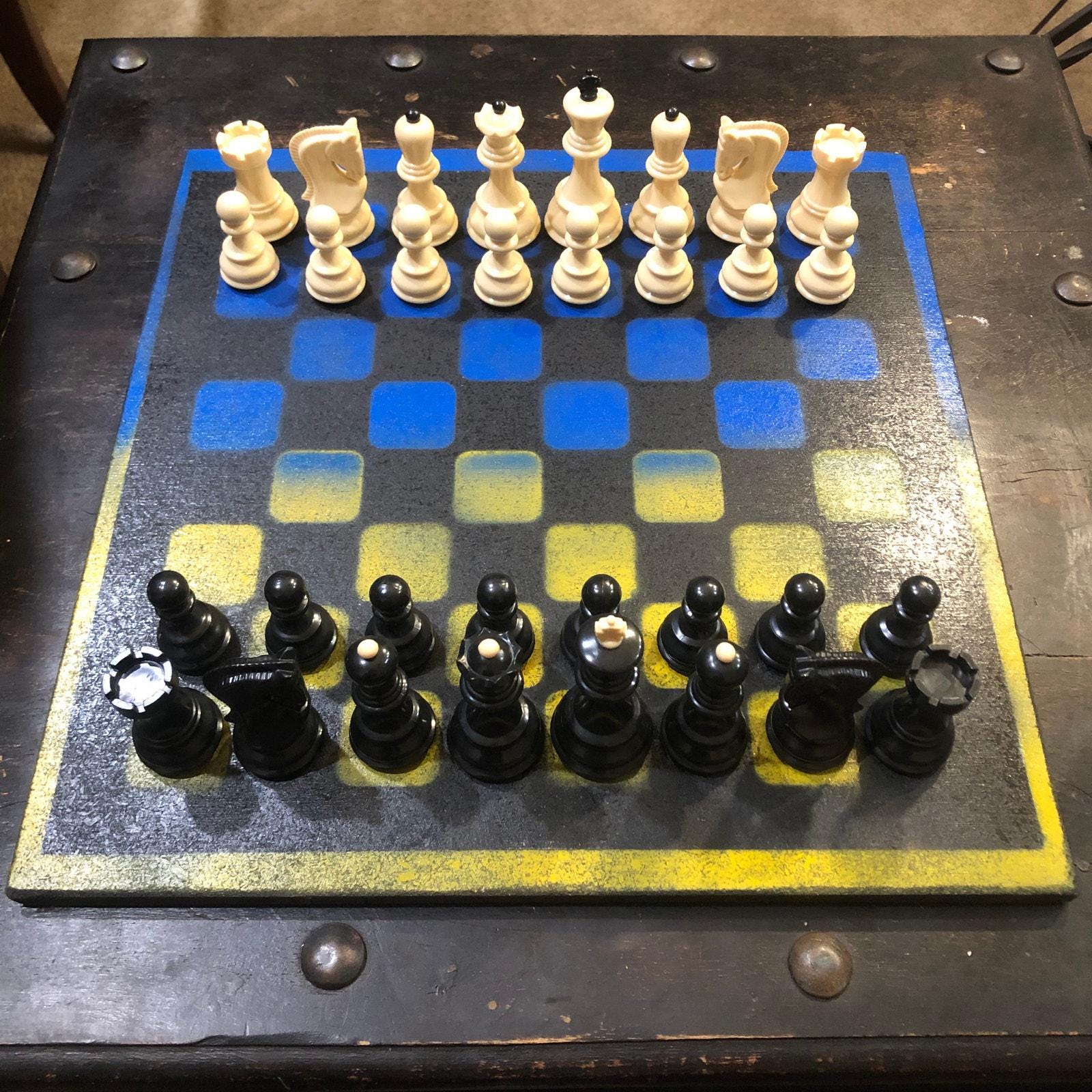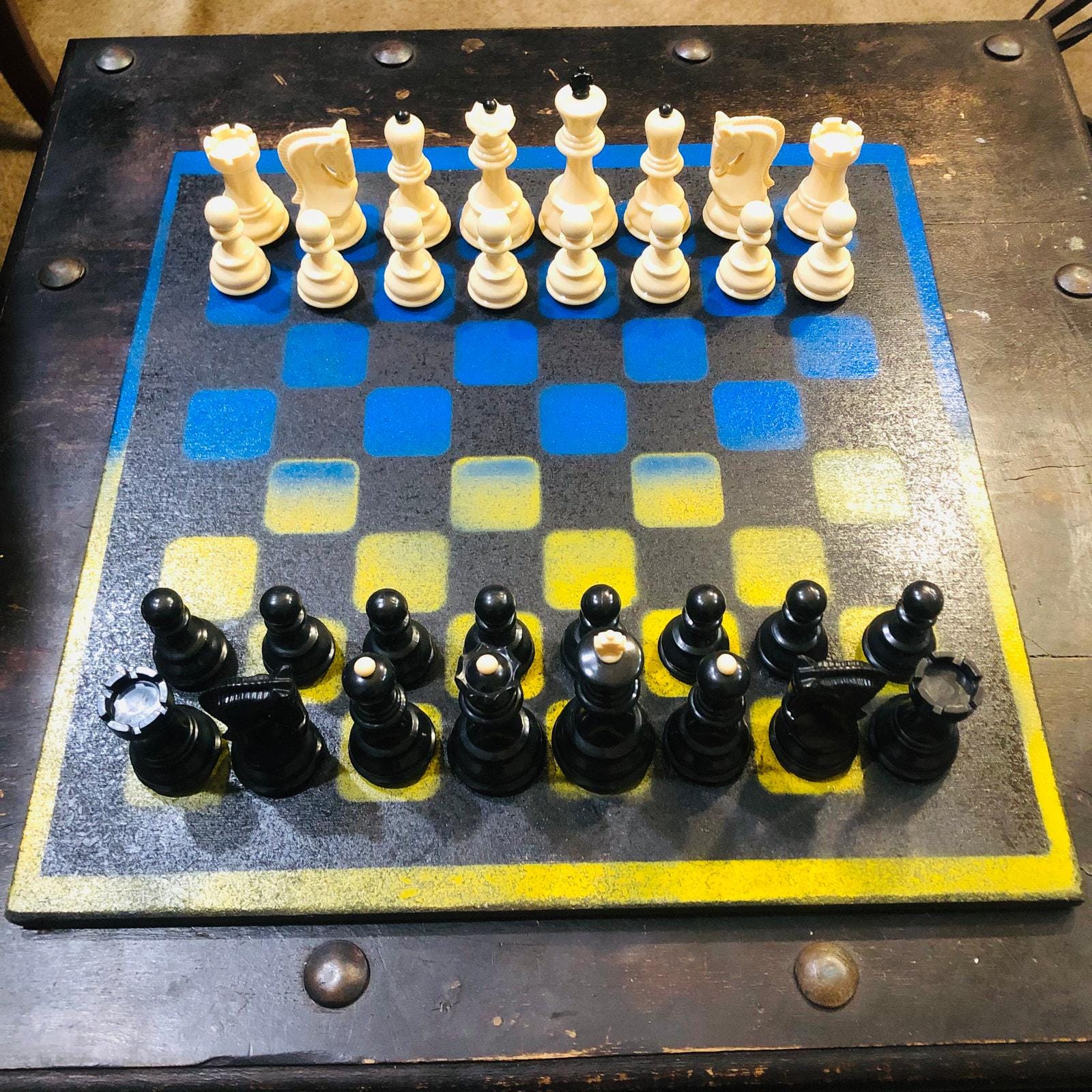 Introducing our exclusive Handcrafted Painted Particle Board Chess Set, meticulously designed with precision and care. Measuring 16 inches by 16 inches, this chess set features a beautifully painted piece of particle board that doubles as a work of art. Each set is a unique, one-of-a-kind creation, crafted by hand to ensure that no two sets are alike. Elevate your gaming experience with this exceptional chess set that combines vibrant design with the touch of artisan craftsmanship.