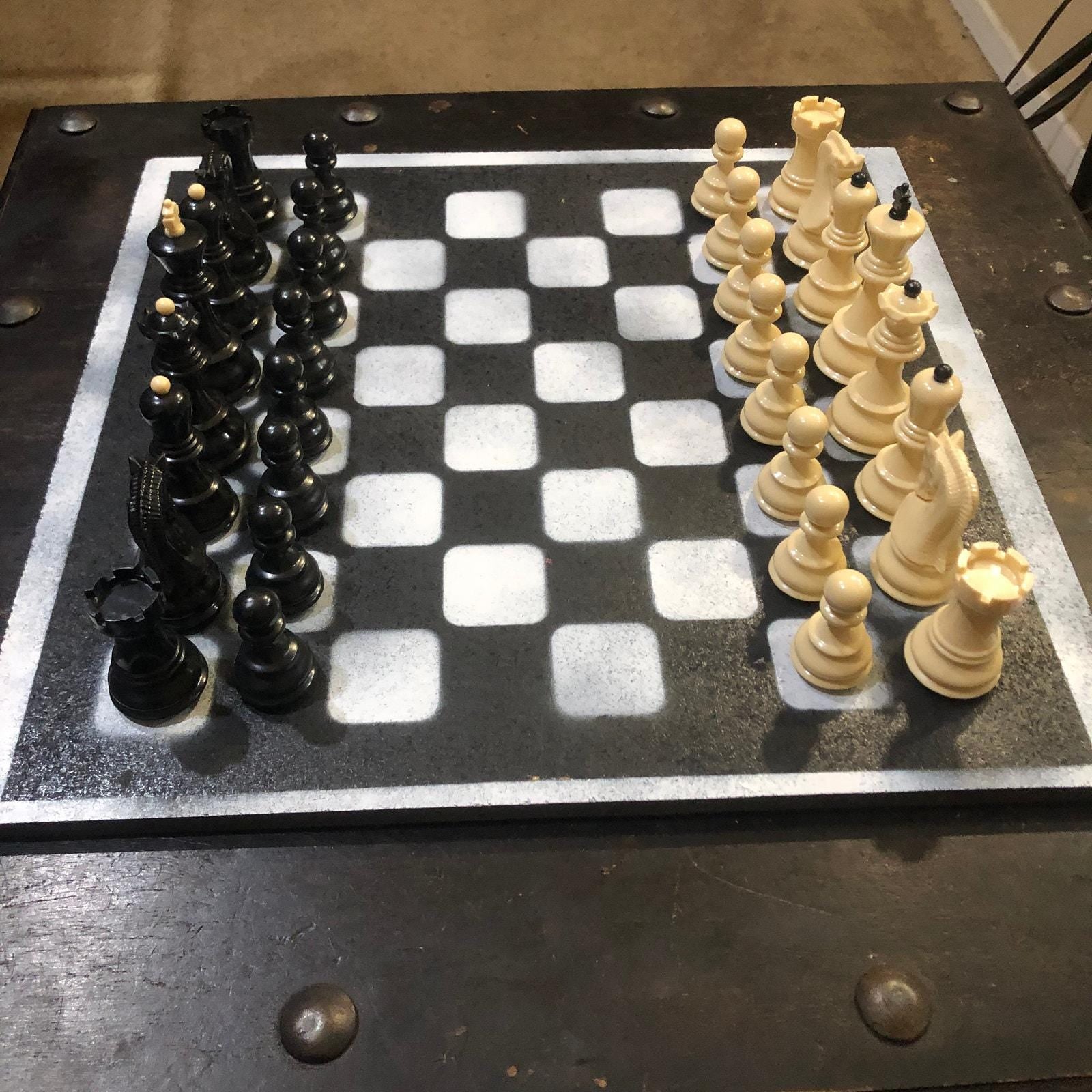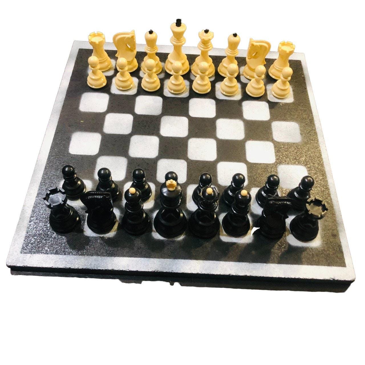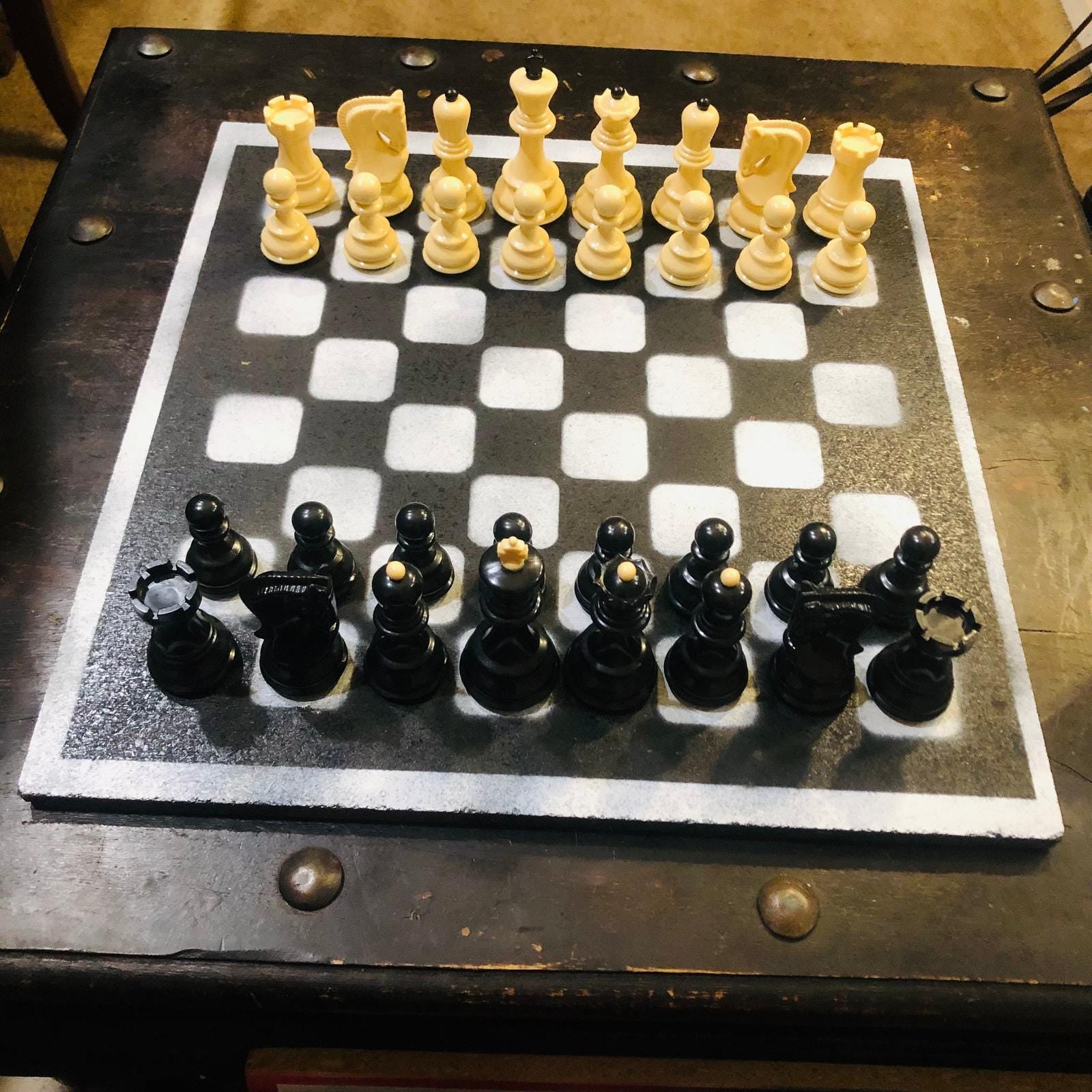 Introducing our exclusive Handcrafted Painted Particle Board Chess Set, meticulously designed with precision and care. Measuring 16 inches by 16 inches, this chess set features a beautifully painted piece of particle board that doubles as a work of art. Each set is a unique, one-of-a-kind creation, crafted by hand to ensure that no two sets are alike. Elevate your gaming experience with this exceptional chess set that combines vibrant design with the touch of artisan craftsmanship.