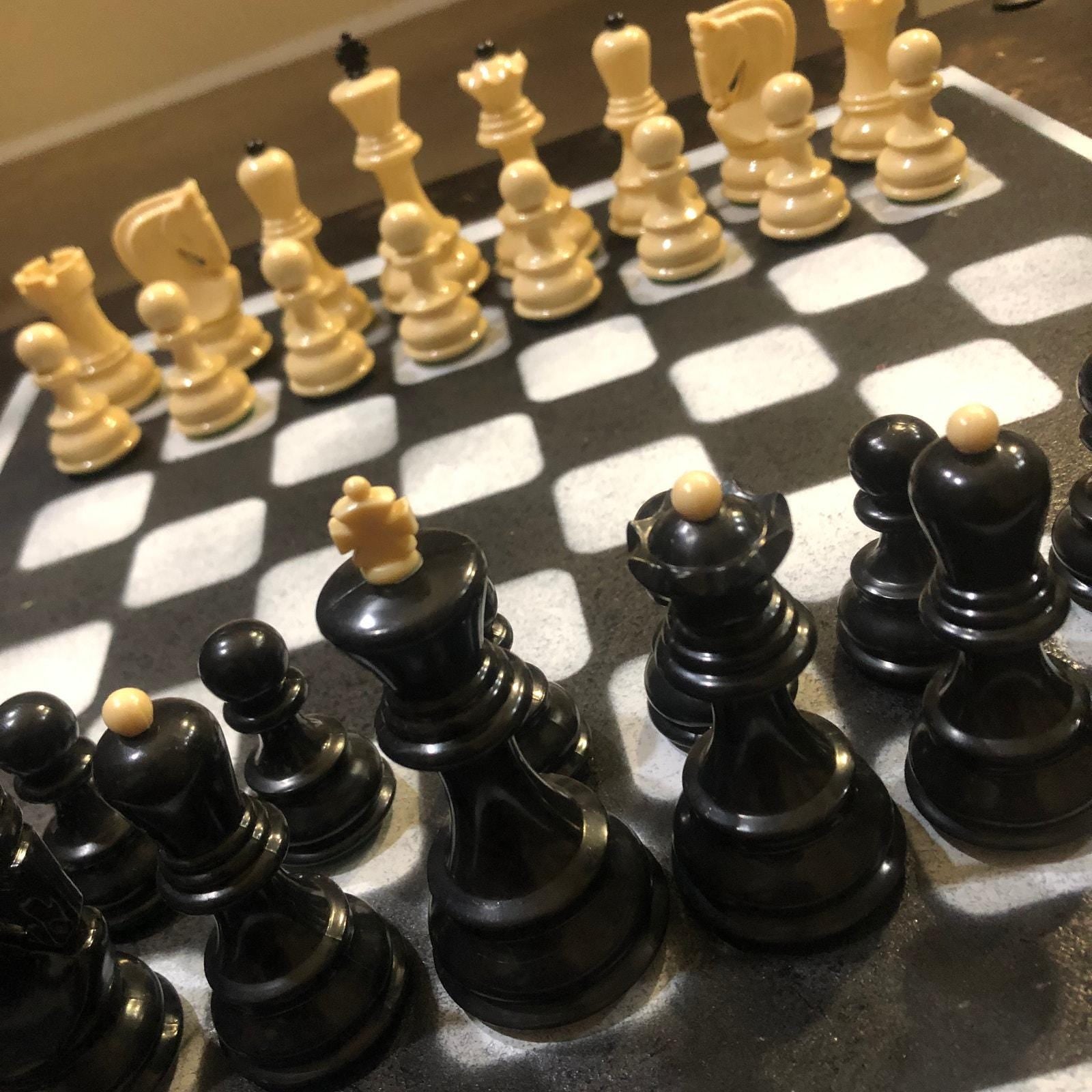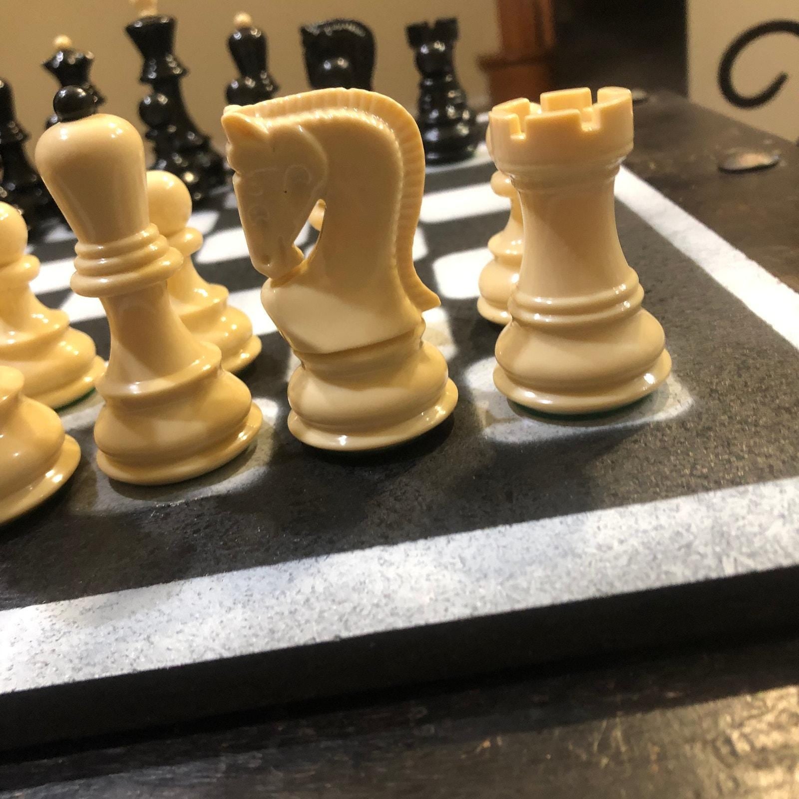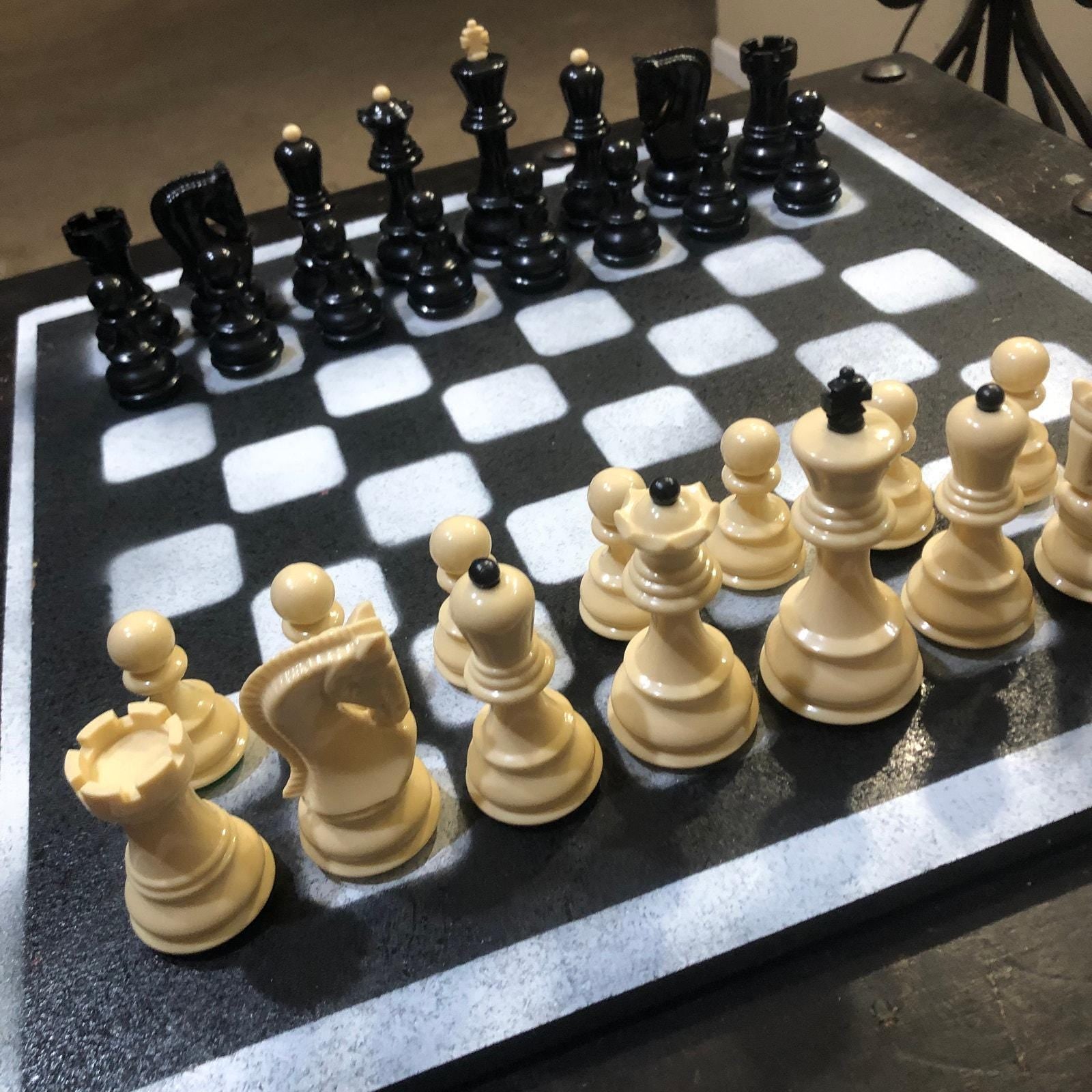 Introducing our exclusive Handcrafted Painted Particle Board Chess Set, meticulously designed with precision and care. Measuring 16 inches by 16 inches, this chess set features a beautifully painted piece of particle board that doubles as a work of art. Each set is a unique, one-of-a-kind creation, crafted by hand to ensure that no two sets are alike. Elevate your gaming experience with this exceptional chess set that combines vibrant design with the touch of artisan craftsmanship.