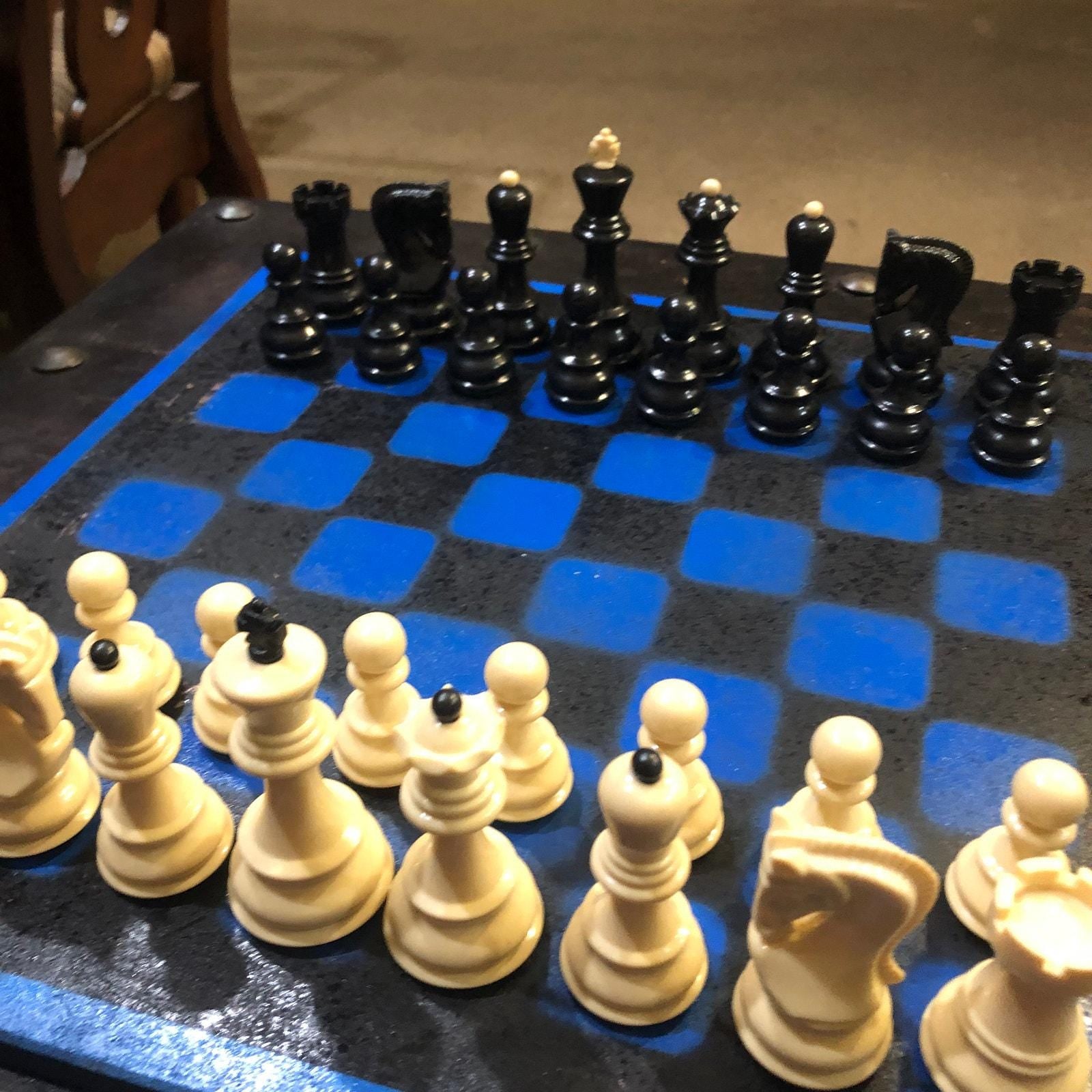 Large Chess Set - Blue & Black