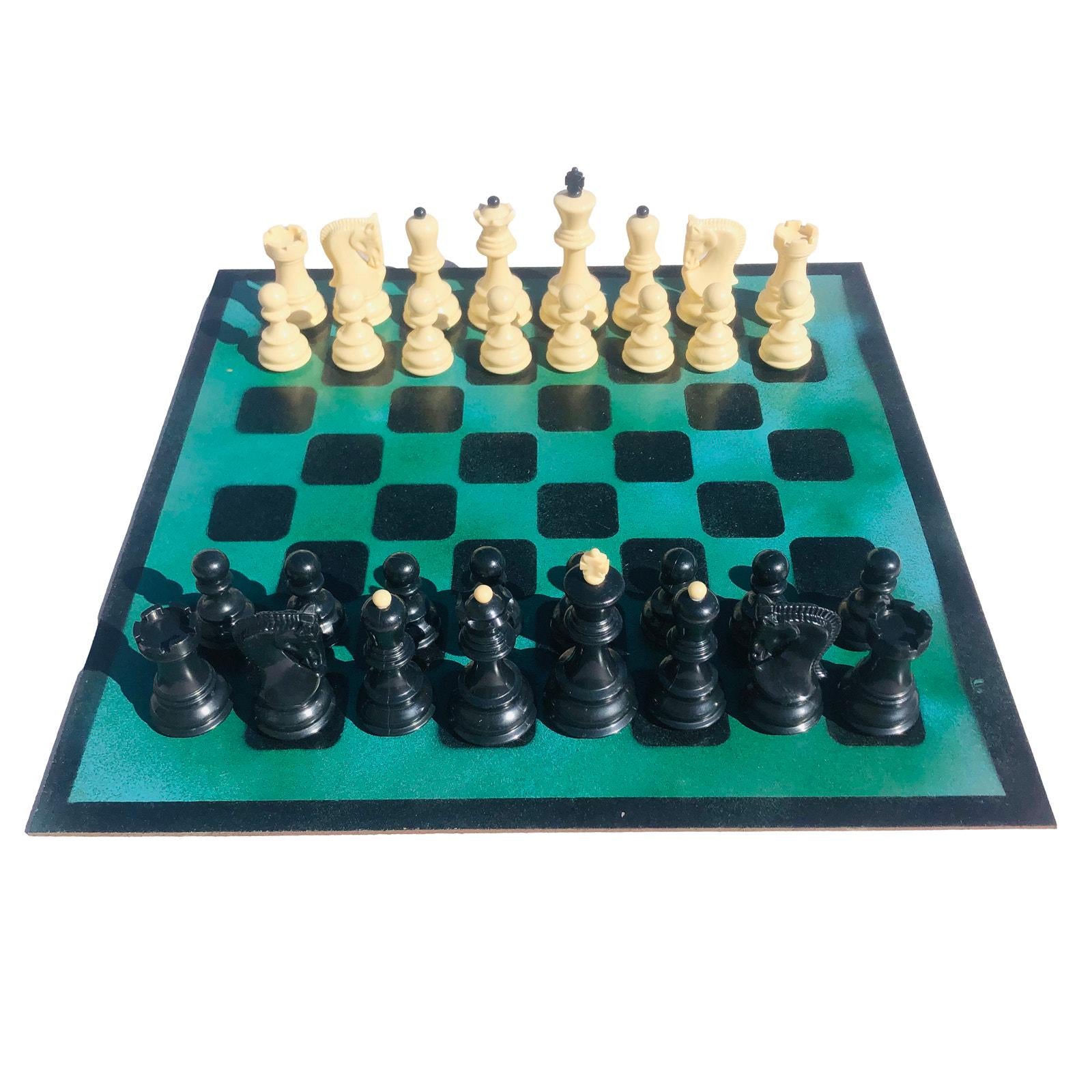 Introducing our exclusive Handcrafted Hardboard Chess Set, meticulously designed with precision and care. Measuring 16 inches by 16 inches, this chess set features a beautifully painted hardwood board that doubles as a work of art. Each set is a unique, one-of-a-kind creation, crafted by hand to ensure that no two sets are alike. Elevate your gaming experience with this exceptional chess set that combines vibrant design with the touch of artisan craftsmanship.