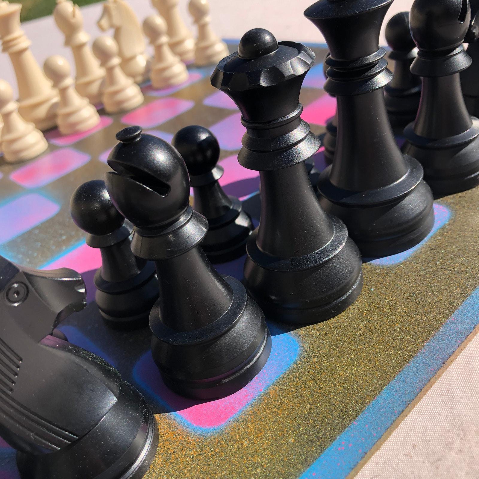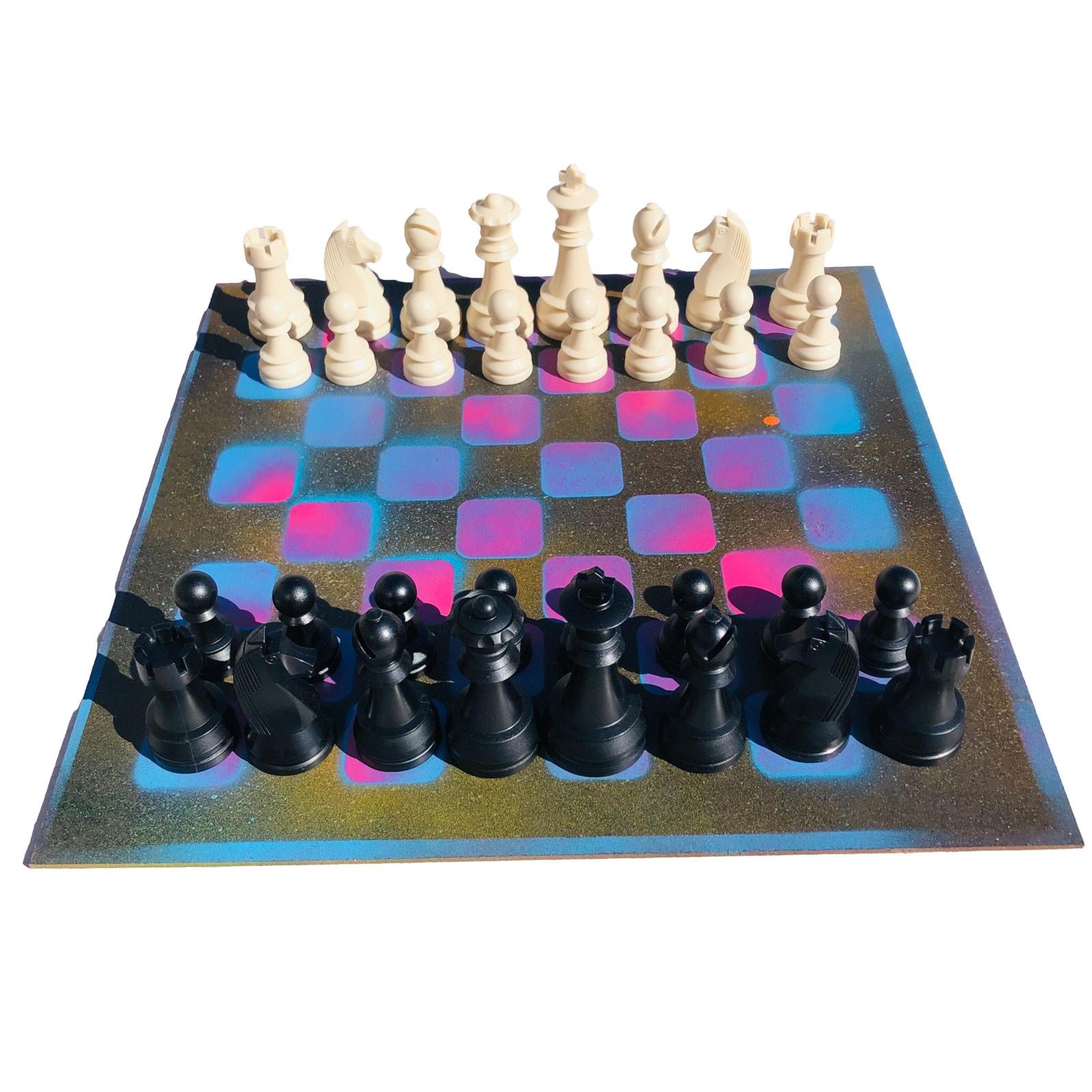 Introducing our exclusive Handcrafted Hardboard Chess Set, meticulously designed with precision and care. Measuring 16 inches by 16 inches, this chess set features a beautifully painted hardwood board that doubles as a work of art. Each set is a unique, one-of-a-kind creation, crafted by hand to ensure that no two sets are alike. Elevate your gaming experience with this exceptional chess set that combines vibrant design with the touch of artisan craftsmanship.