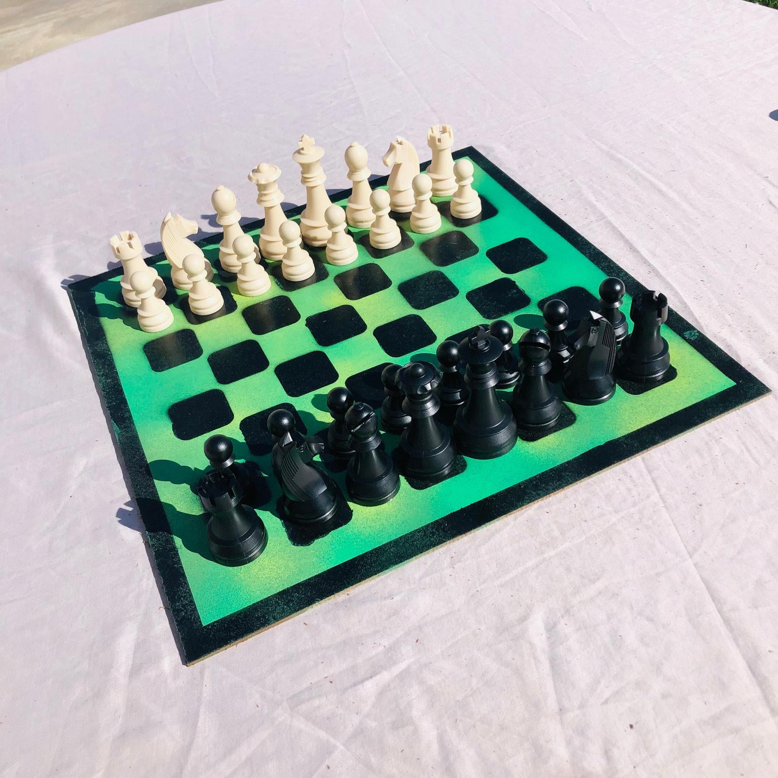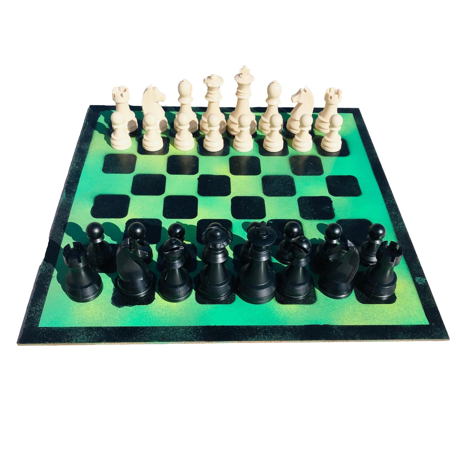 Introducing our exclusive Handcrafted Hardboard Chess Set, meticulously designed with precision and care. Measuring 16 inches by 16 inches, this chess set features a beautifully painted hardwood board that doubles as a work of art. Each set is a unique, one-of-a-kind creation, crafted by hand to ensure that no two sets are alike. Elevate your gaming experience with this exceptional chess set that combines vibrant design with the touch of artisan craftsmanship.