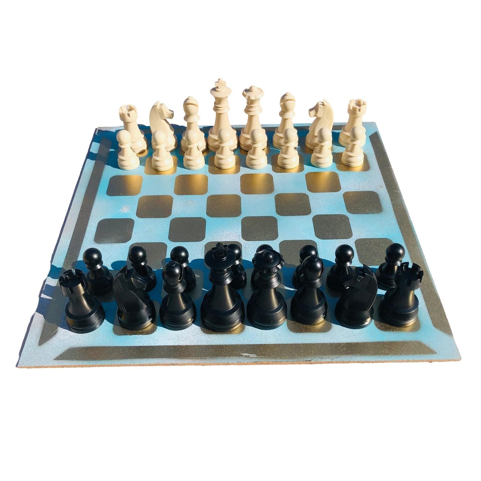 Introducing our exclusive Handcrafted Hardboard Chess Set, meticulously designed with precision and care. Measuring 16 inches by 16 inches, this chess set features a beautifully painted hardwood board that doubles as a work of art. Each set is a unique, one-of-a-kind creation, crafted by hand to ensure that no two sets are alike. Elevate your gaming experience with this exceptional chess set that combines vibrant design with the touch of artisan craftsmanship.