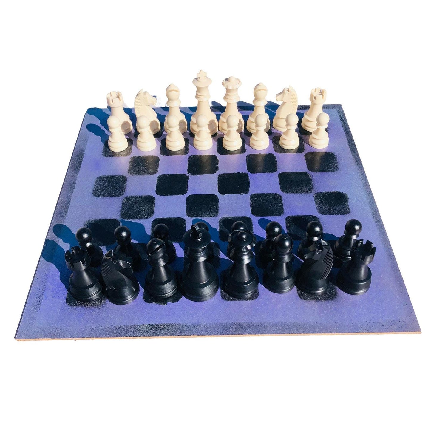 Introducing our exclusive Handcrafted Hardboard Chess Set, meticulously designed with precision and care. Measuring 16 inches by 16 inches, this chess set features a beautifully painted hardwood board that doubles as a work of art. Each set is a unique, one-of-a-kind creation, crafted by hand to ensure that no two sets are alike. Elevate your gaming experience with this exceptional chess set that combines vibrant design with the touch of artisan craftsmanship.