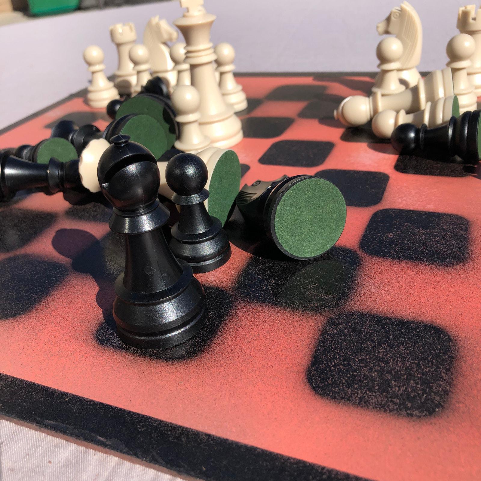 Introducing our exclusive Handcrafted Hardboard Chess Set, meticulously designed with precision and care. Measuring 16 inches by 16 inches, this chess set features a beautifully painted hardwood board that doubles as a work of art. Each set is a unique, one-of-a-kind creation, crafted by hand to ensure that no two sets are alike. Elevate your gaming experience with this exceptional chess set that combines vibrant design with the touch of artisan craftsmanship.