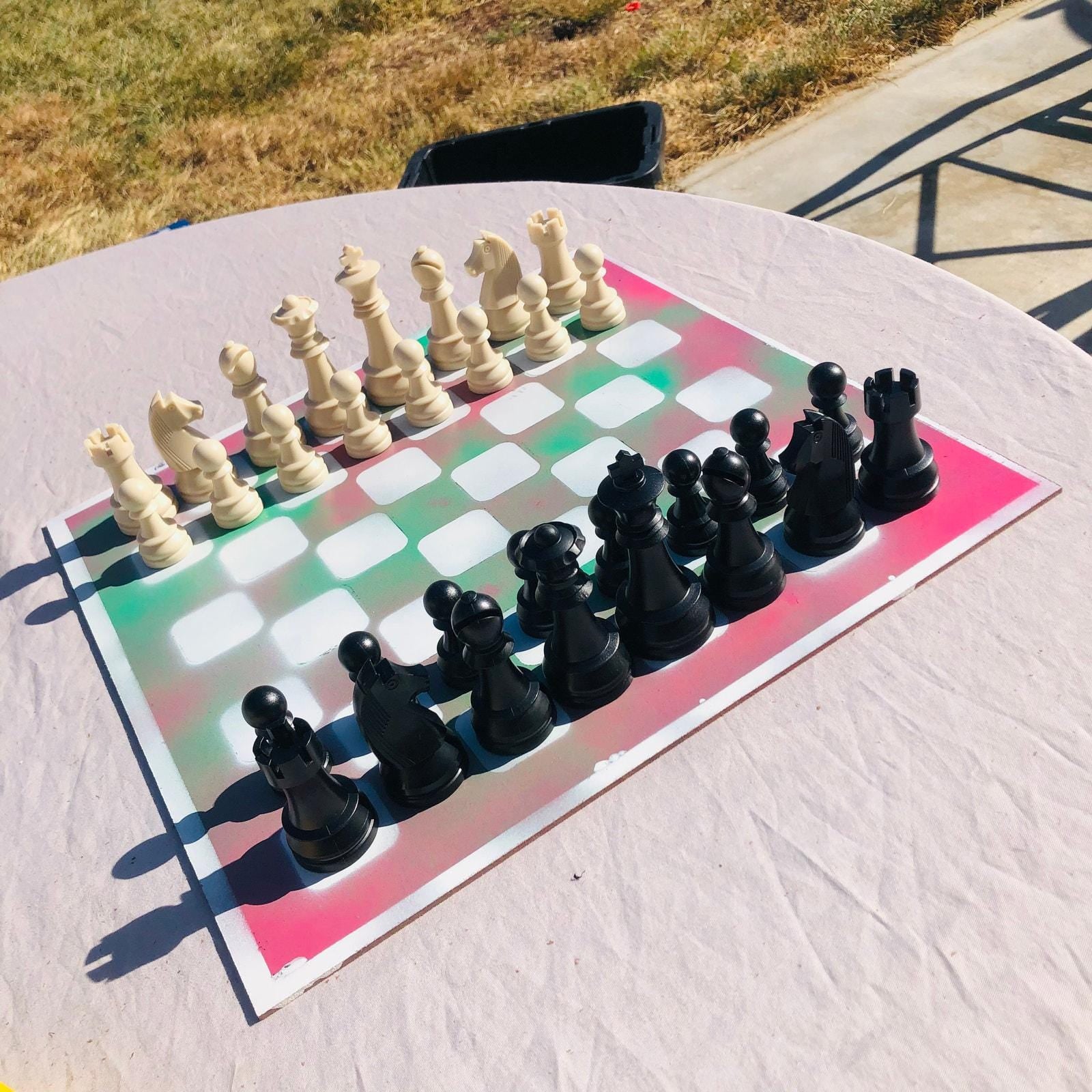 Introducing our exclusive Handcrafted Hardboard Chess Set, meticulously designed with precision and care. Measuring 16 inches by 16 inches, this chess set features a beautifully painted hardwood board that doubles as a work of art. Each set is a unique, one-of-a-kind creation, crafted by hand to ensure that no two sets are alike. Elevate your gaming experience with this exceptional chess set that combines vibrant design with the touch of artisan craftsmanship.