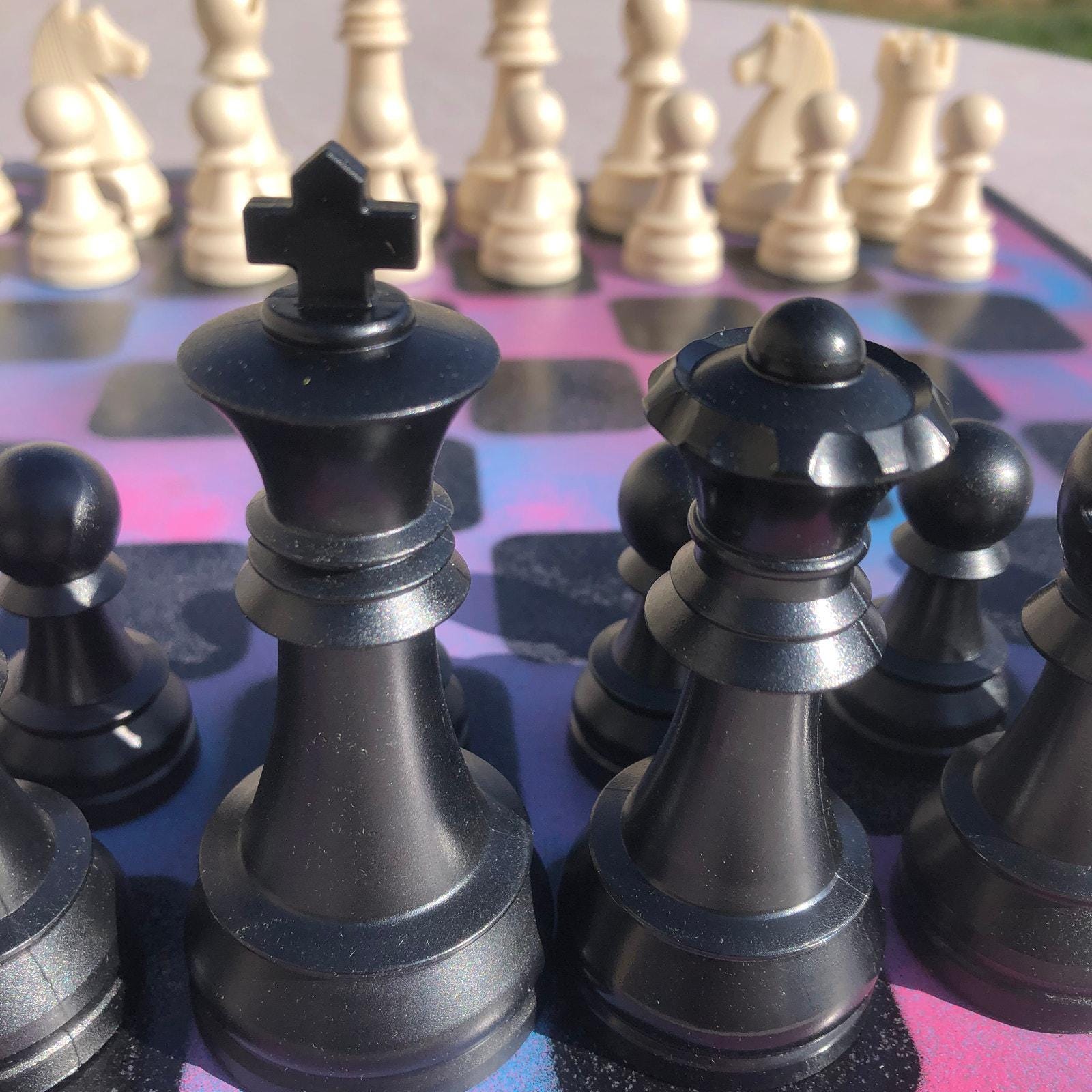 Introducing our exclusive Handcrafted Hardboard Chess Set, meticulously designed with precision and care. Measuring 16 inches by 16 inches, this chess set features a beautifully painted hardwood board that doubles as a work of art. Each set is a unique, one-of-a-kind creation, crafted by hand to ensure that no two sets are alike. Elevate your gaming experience with this exceptional chess set that combines vibrant design with the touch of artisan craftsmanship.