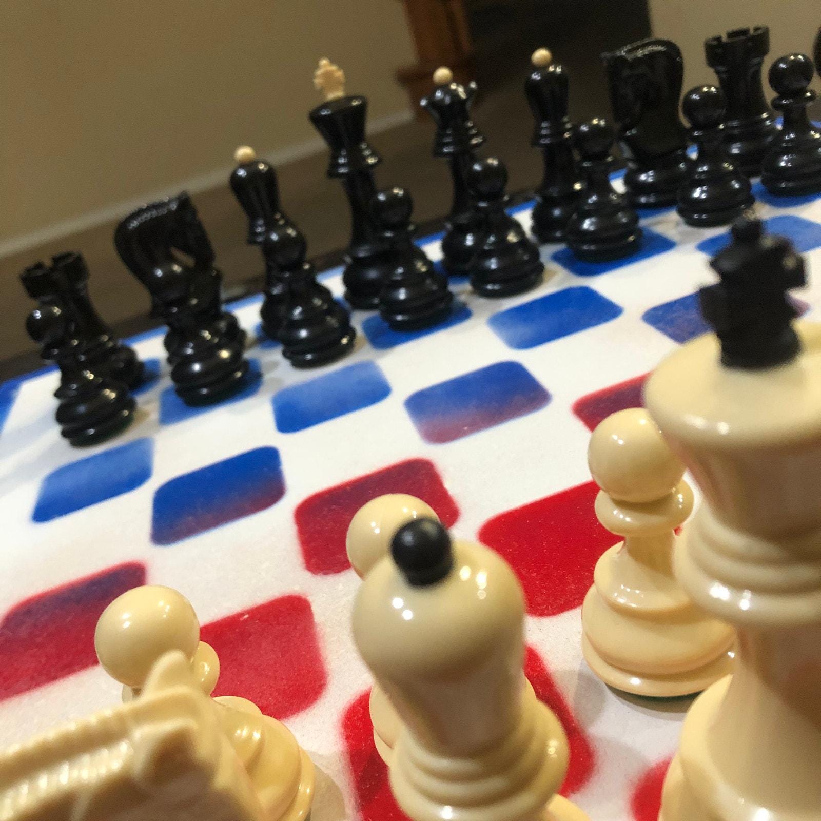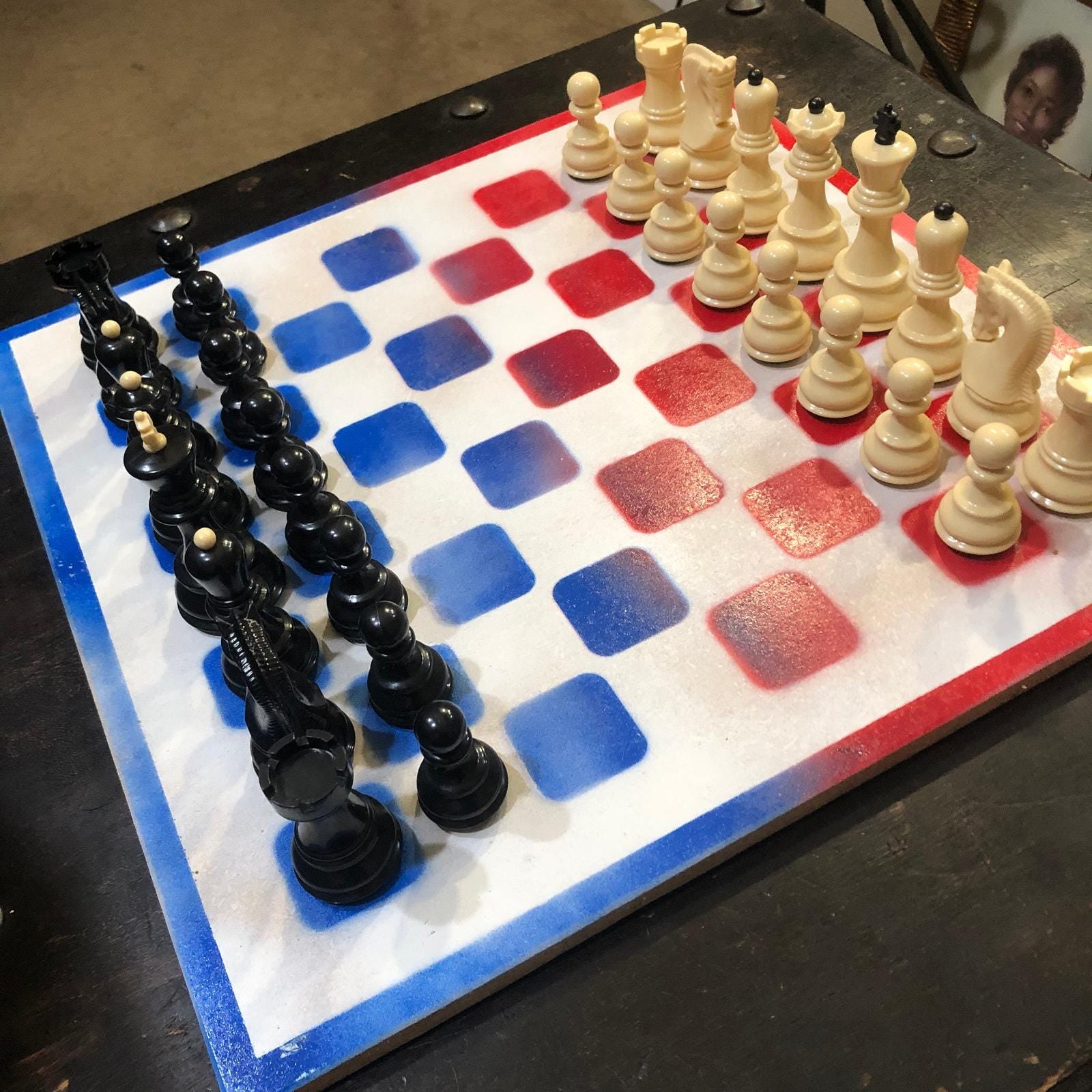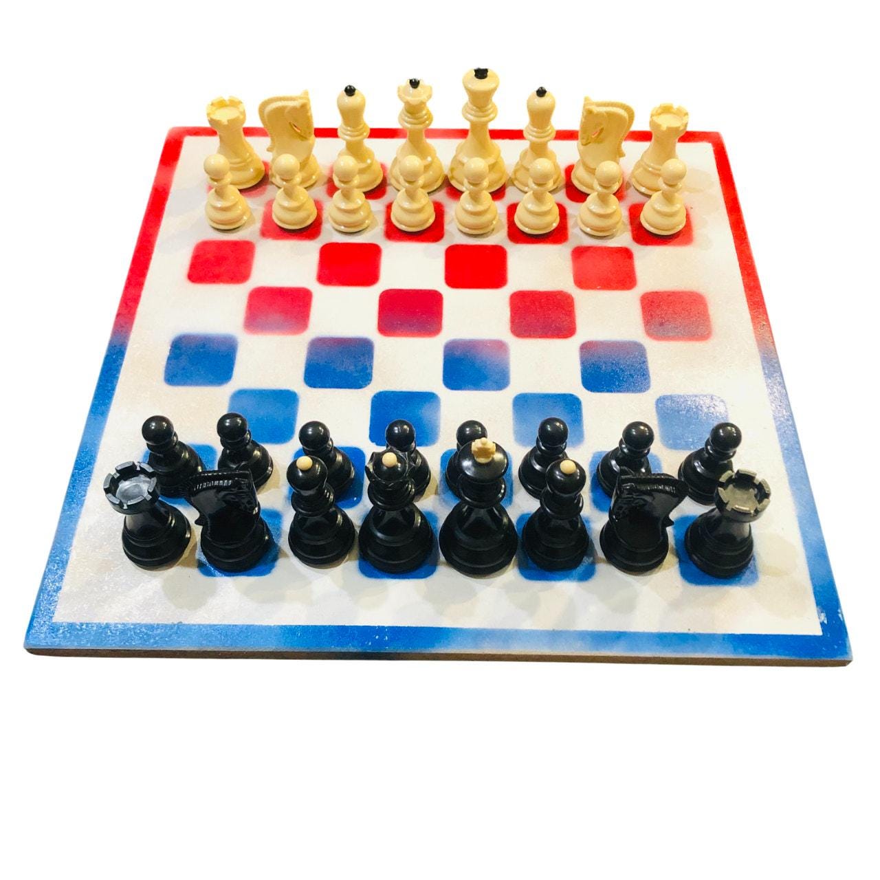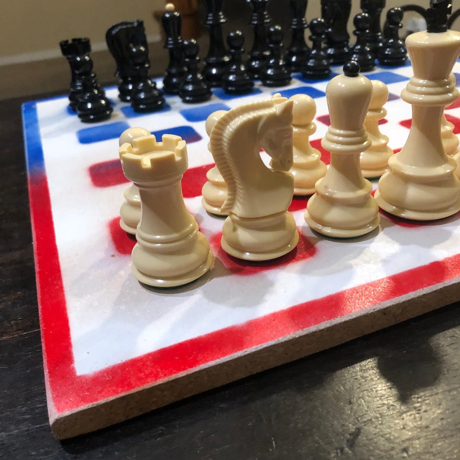 Introducing our exclusive Handcrafted Painted Particle Board Chess Set, meticulously designed with precision and care. Measuring 16 inches by 16 inches, this chess set features a beautifully painted piece of particle board that doubles as a work of art. Each set is a unique, one-of-a-kind creation, crafted by hand to ensure that no two sets are alike. Elevate your gaming experience with this exceptional chess set that combines vibrant design with the touch of artisan craftsmanship.