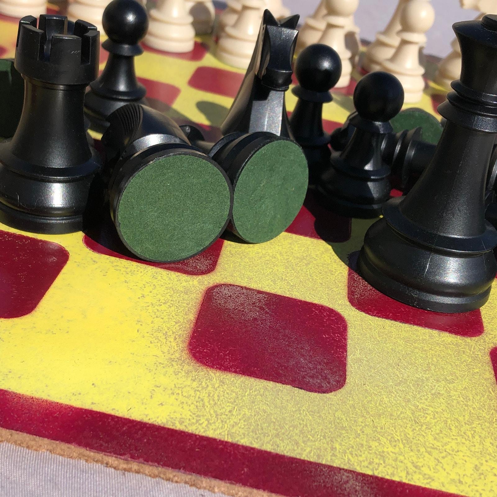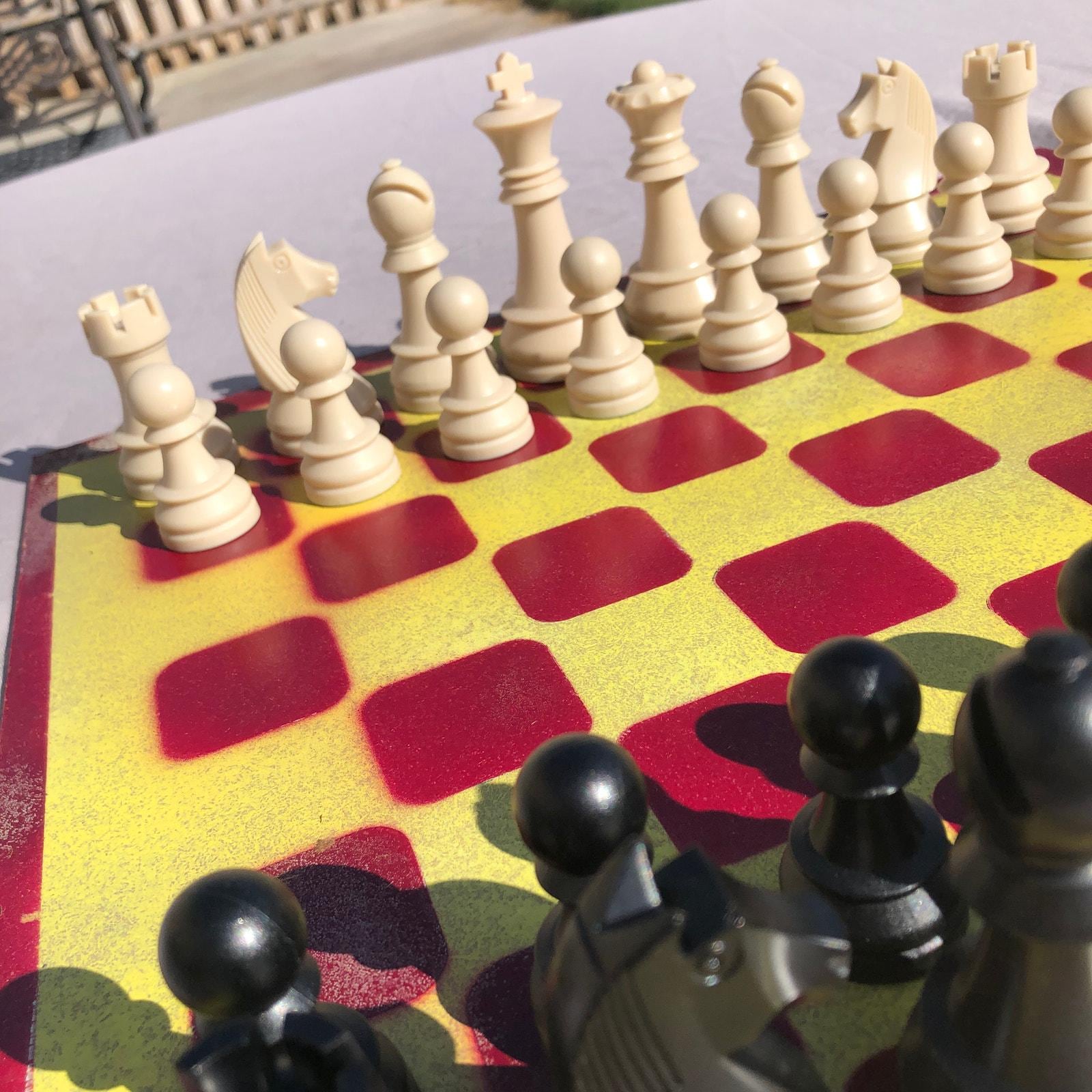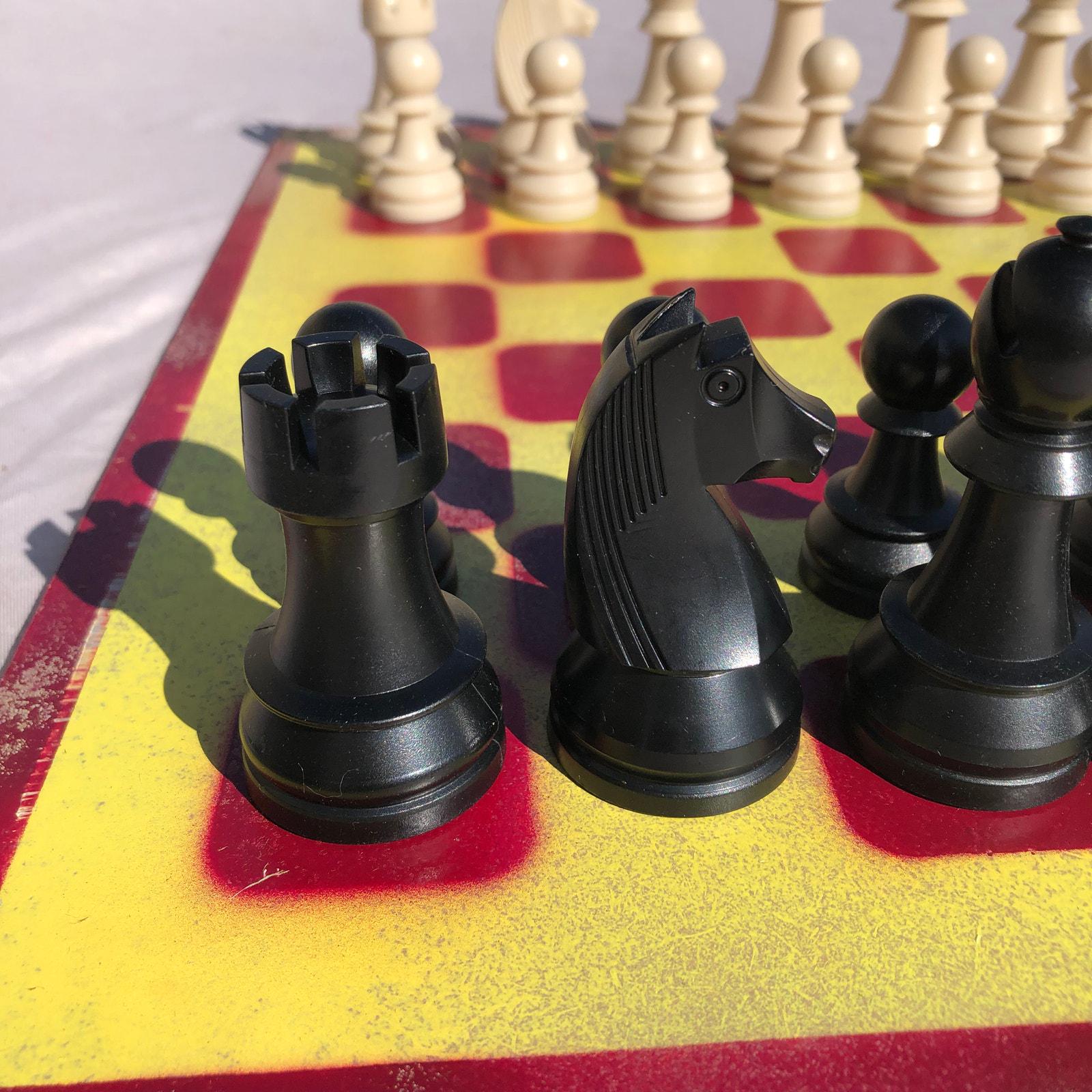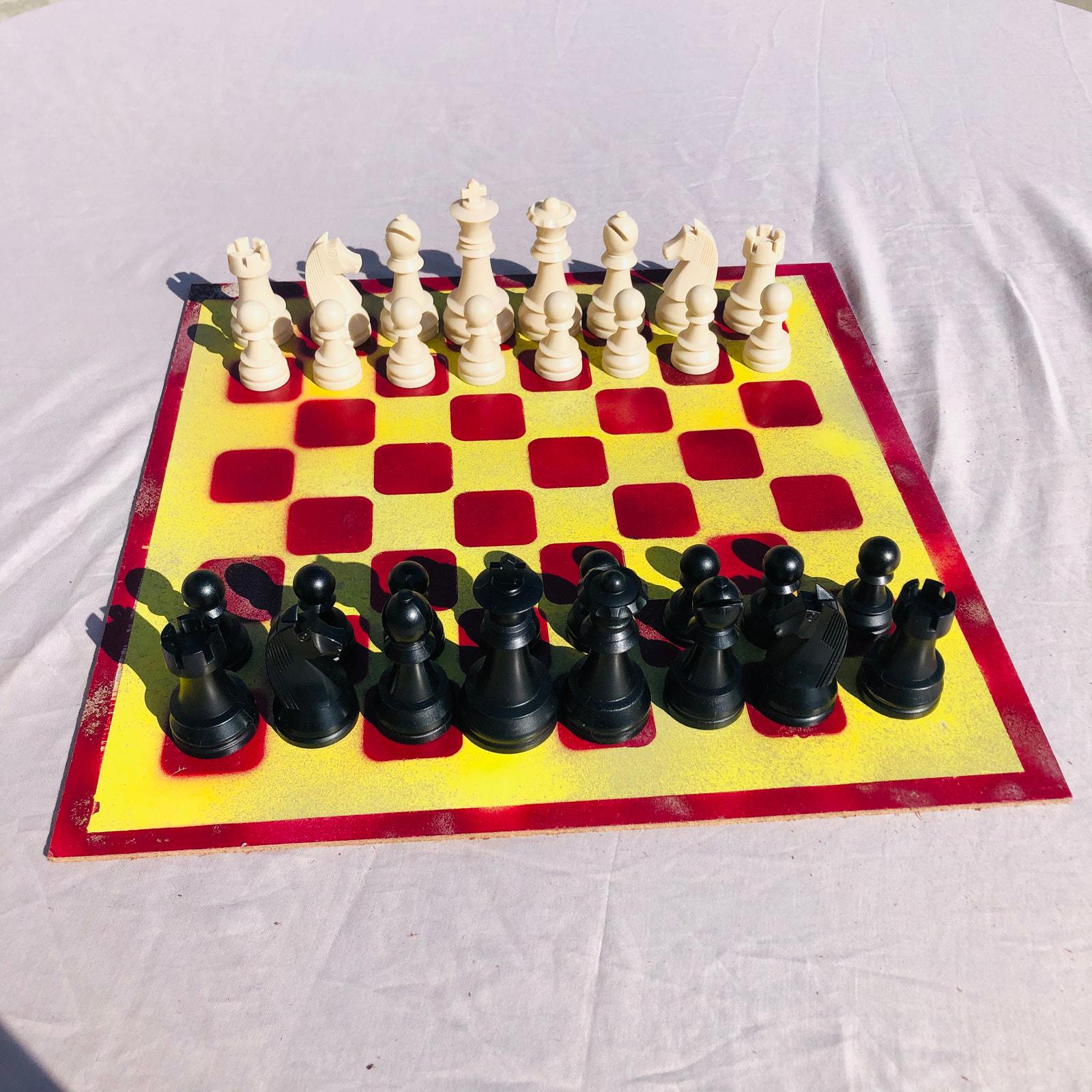 Introducing our exclusive Handcrafted Hardboard Chess Set, meticulously designed with precision and care. Measuring 16 inches by 16 inches, this chess set features a beautifully painted hardwood board that doubles as a work of art. Each set is a unique, one-of-a-kind creation, crafted by hand to ensure that no two sets are alike. Elevate your gaming experience with this exceptional chess set that combines vibrant design with the touch of artisan craftsmanship.